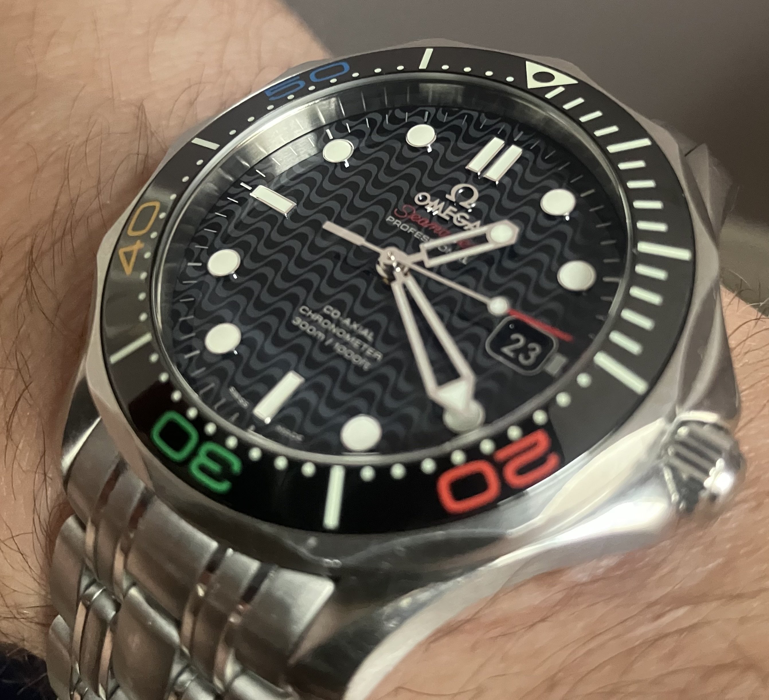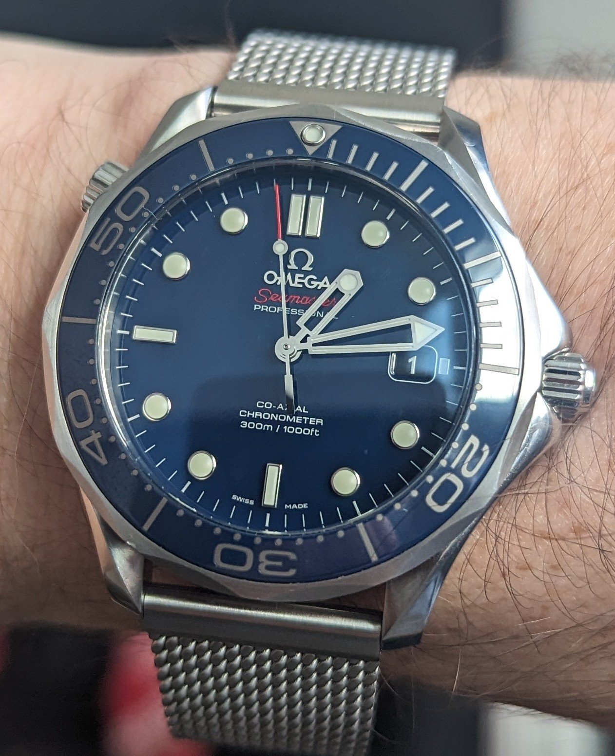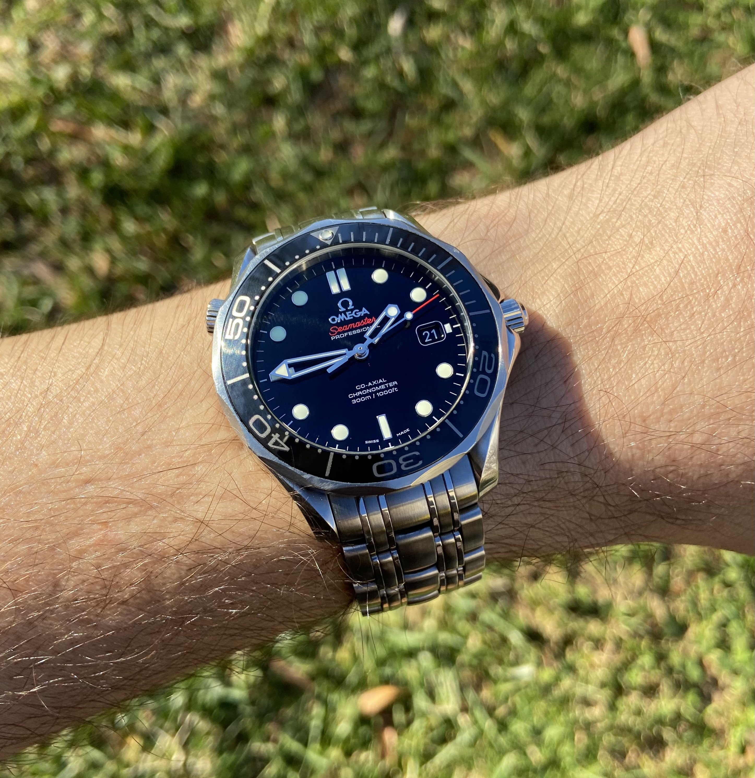 I thought I’d pop this on today for a little wrist time. I’d always wanted one since my brother showed me one of his around 10 years ago. I’m not a massive fan of the lobster case version, but the cushion case is rather nice… only pipped by the unobtainable radial dialled NASA prototype versions, which I still lust over.