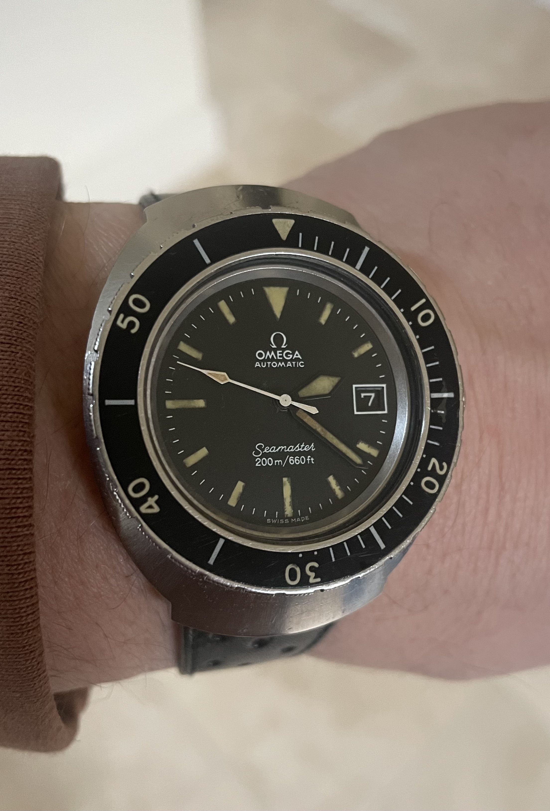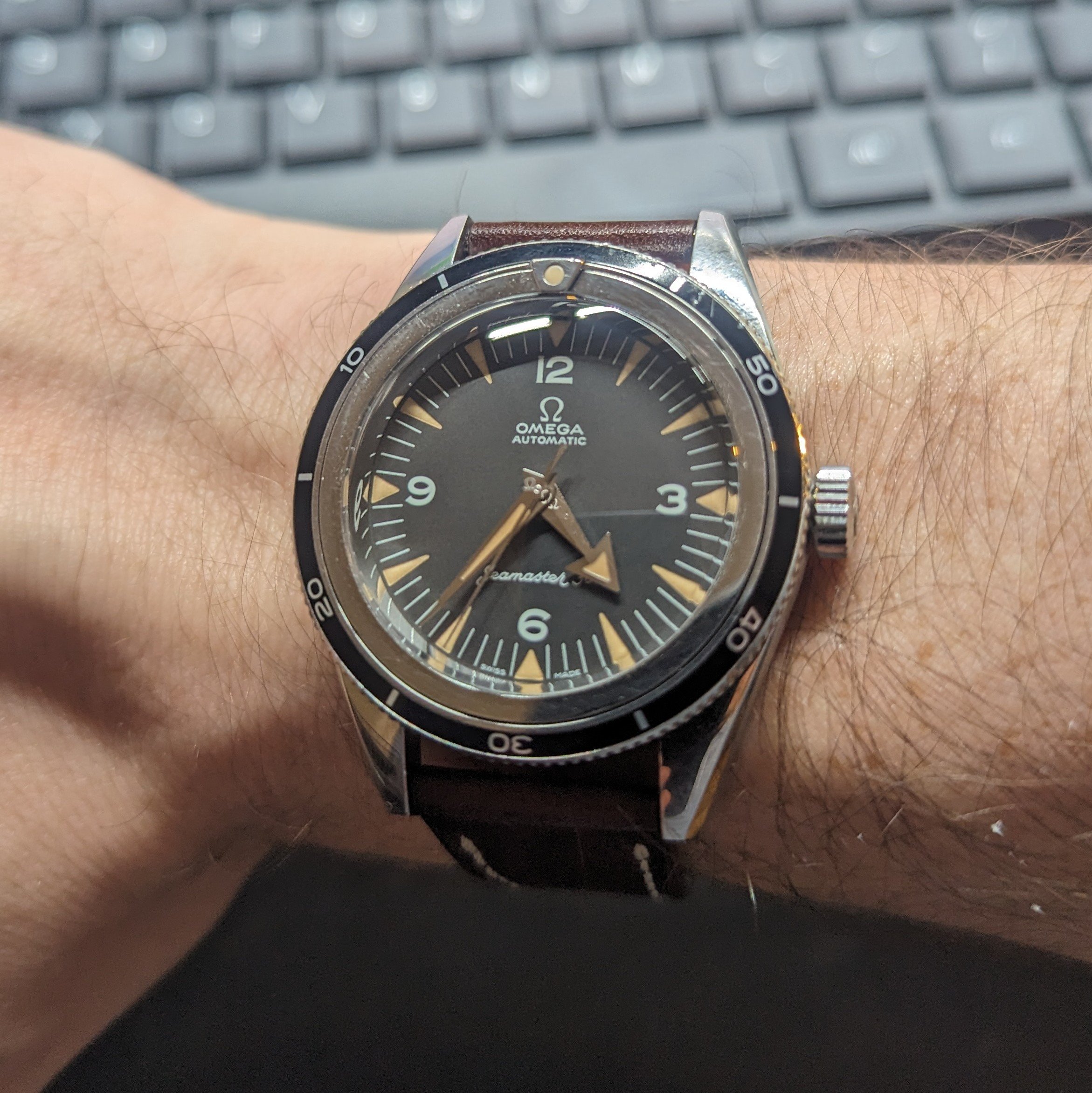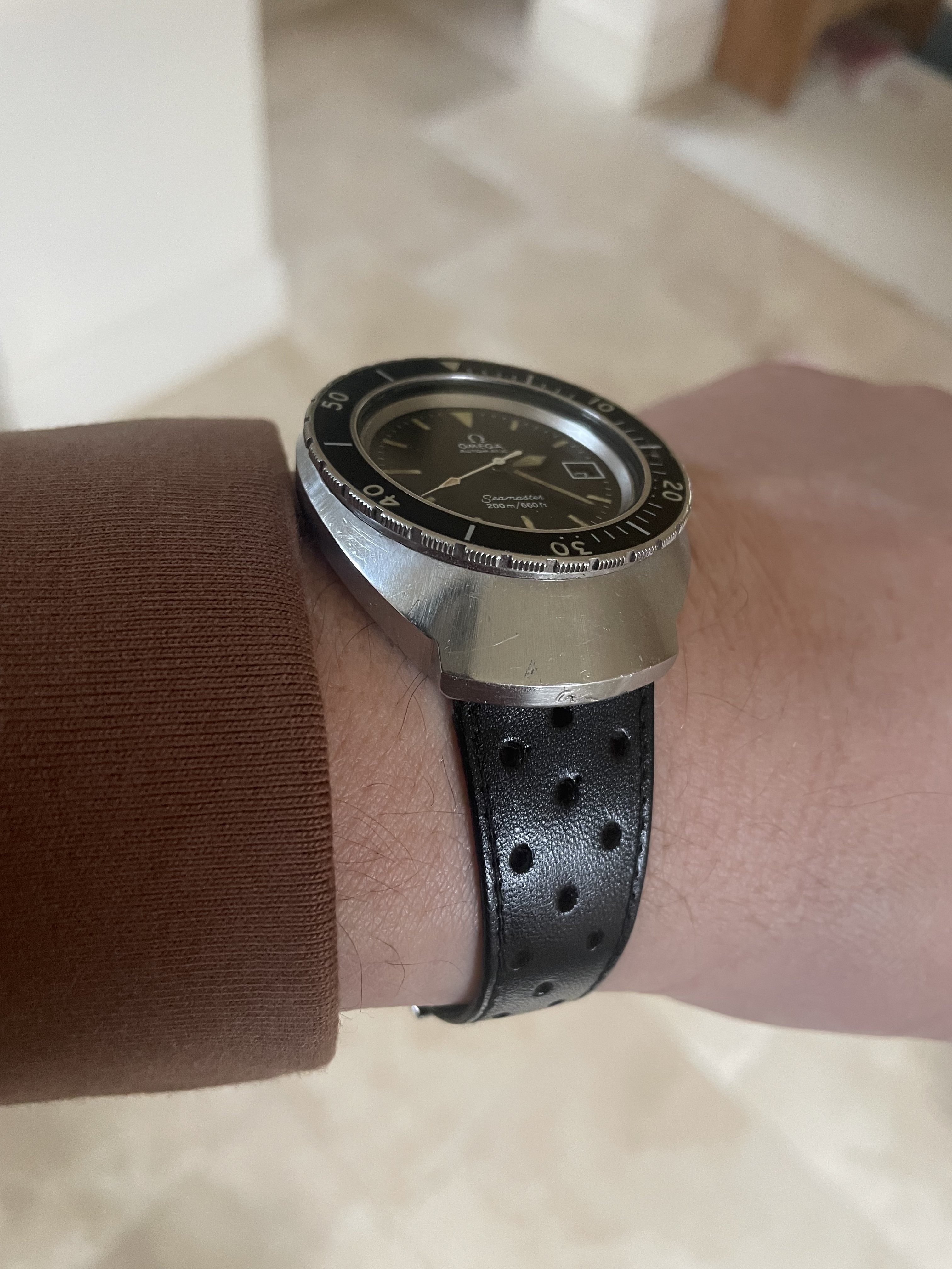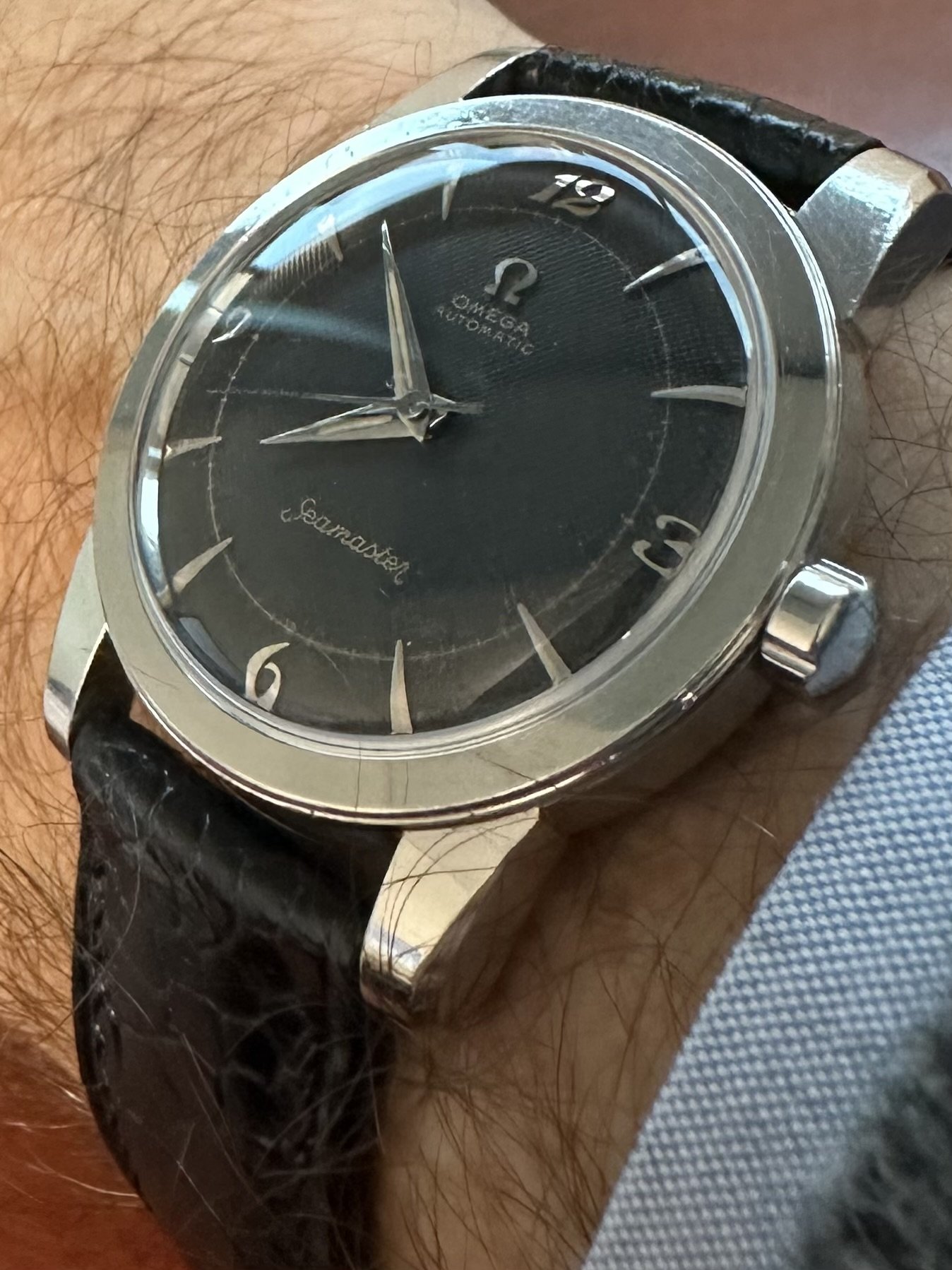 Wow your watch is already showing some battle-scars on the lugs! Looks great and well worn in. On this note - there doesn't seem to be any articles/materials as to why, back in 1957, Omega released these tool watches with polished lugs on the surface... especially back then people won't use these watches for more formal events. This has always puzzled me from a design perspective, even though I LOVE the look.