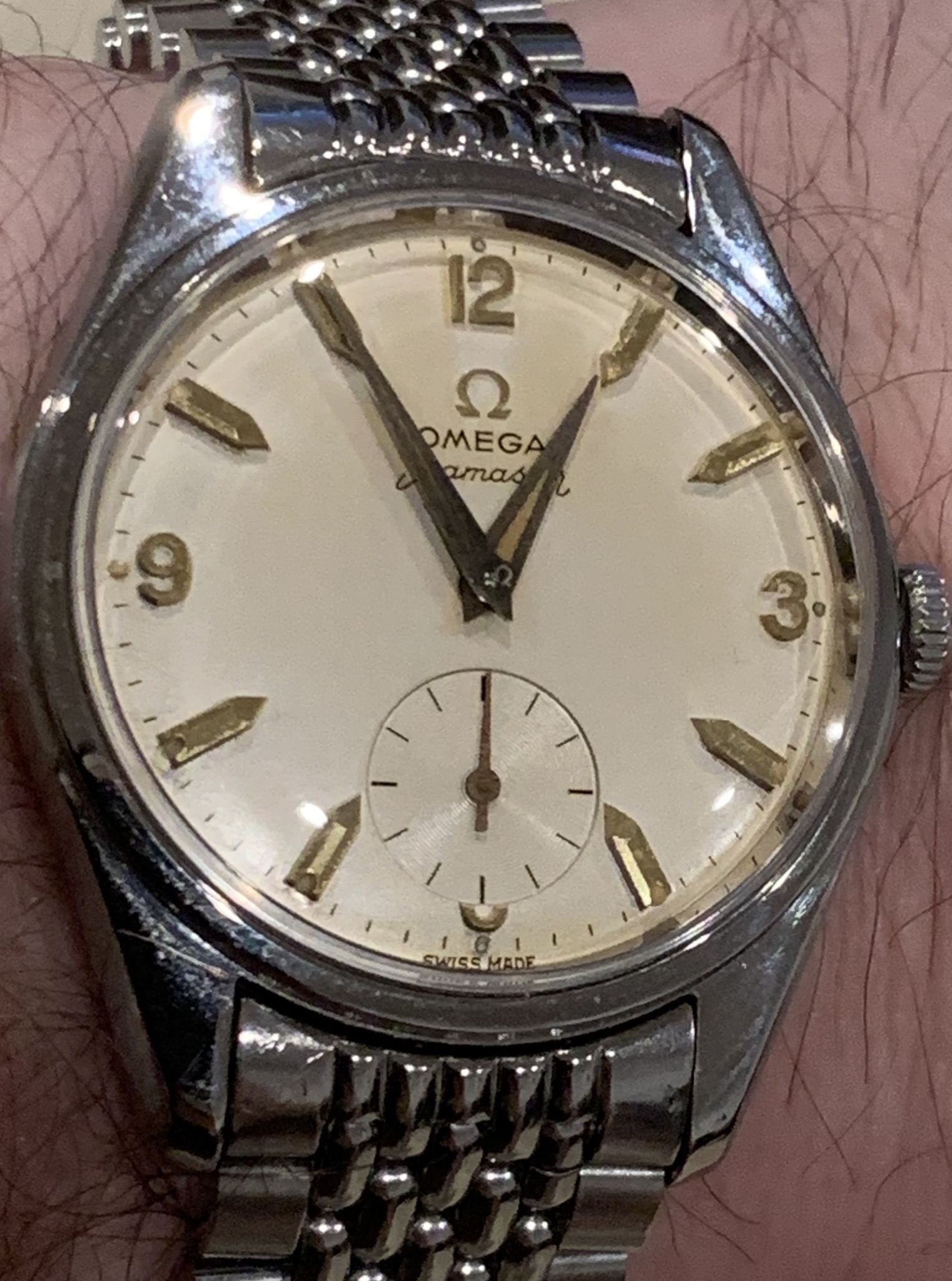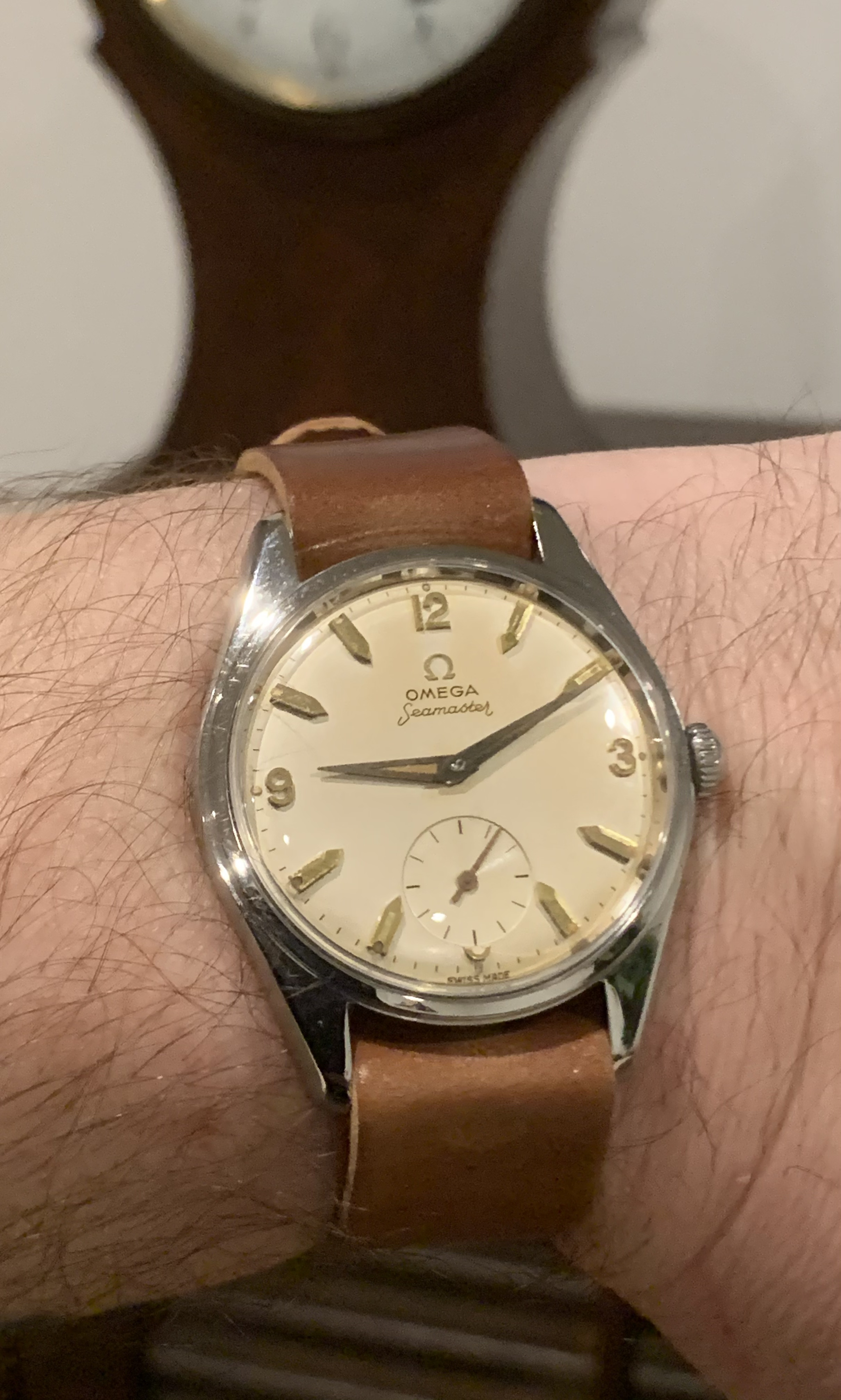 Posts 79 Likes 113 morrisbeef ·Jan 17, 2021 A 1959 Seamaster, 2990-1, cal 267 On a BOR bracelet, then a Horween single pass.