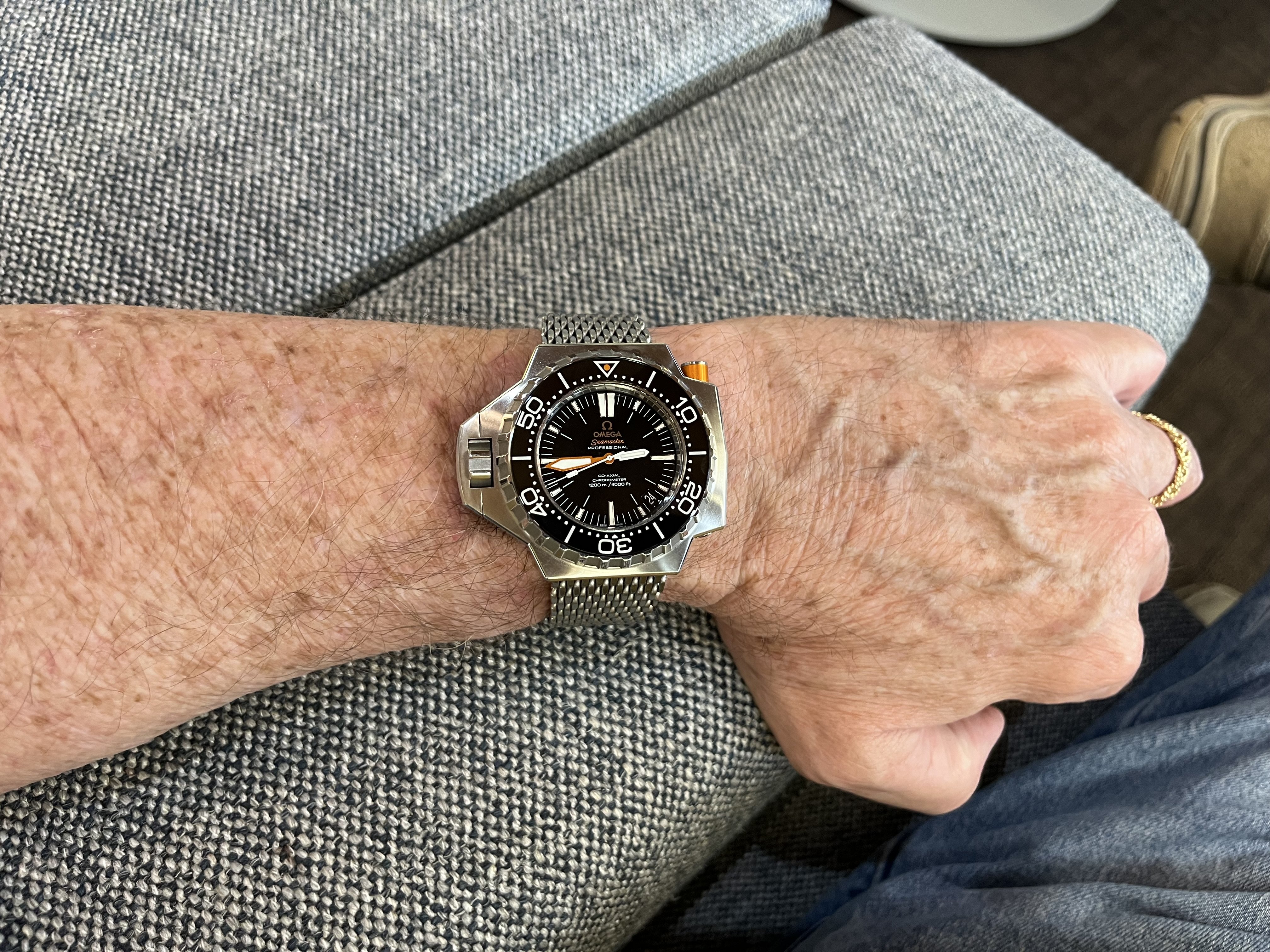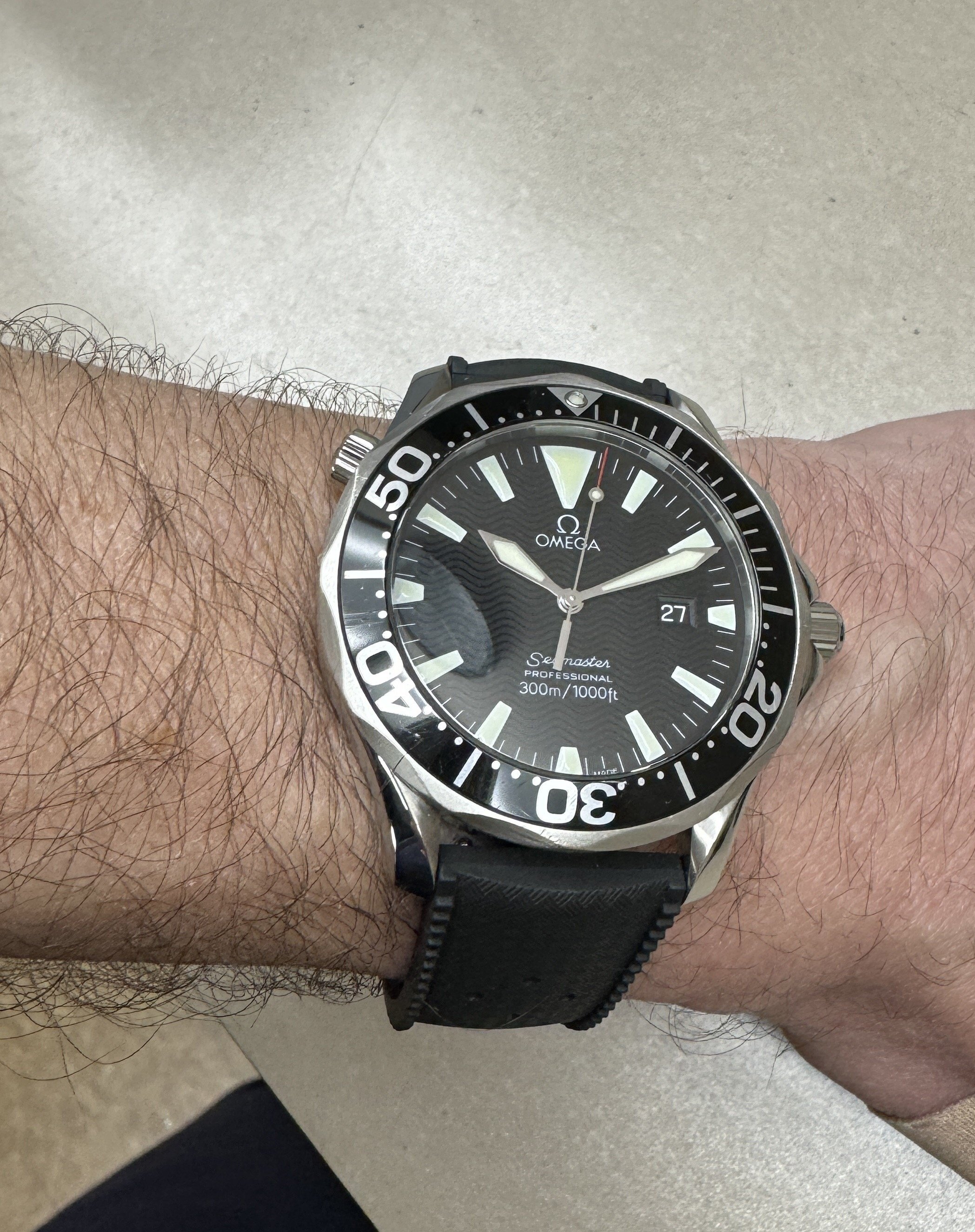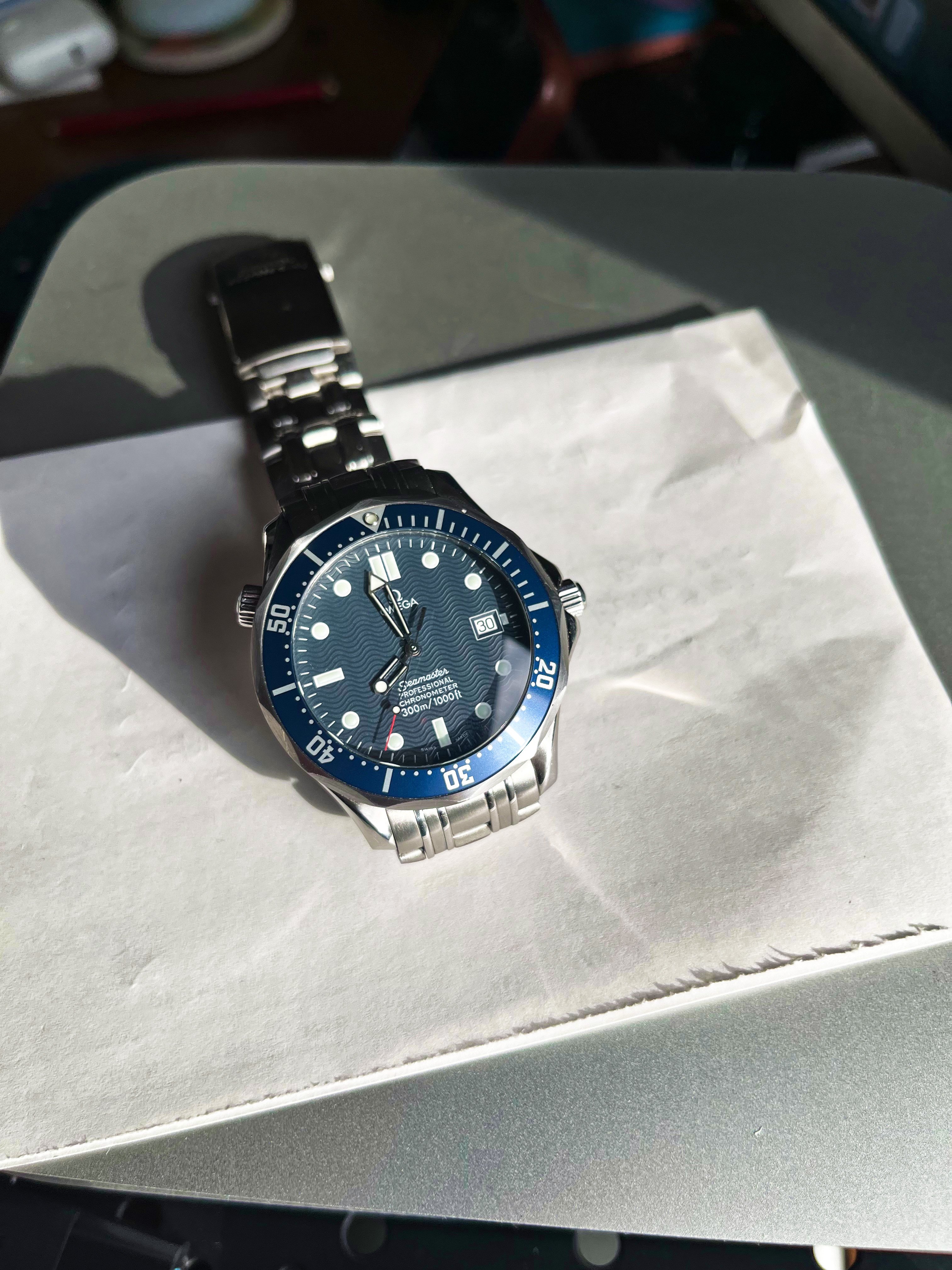 New to me. 05-06 time period SMP 300. Appears to have been worn once and put away for 18 years. Bracelet had no marks at all. I love this older style Bond watch.