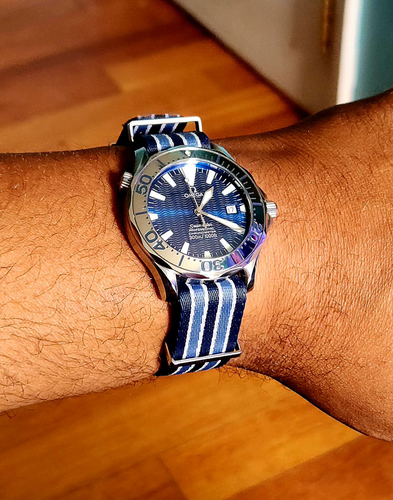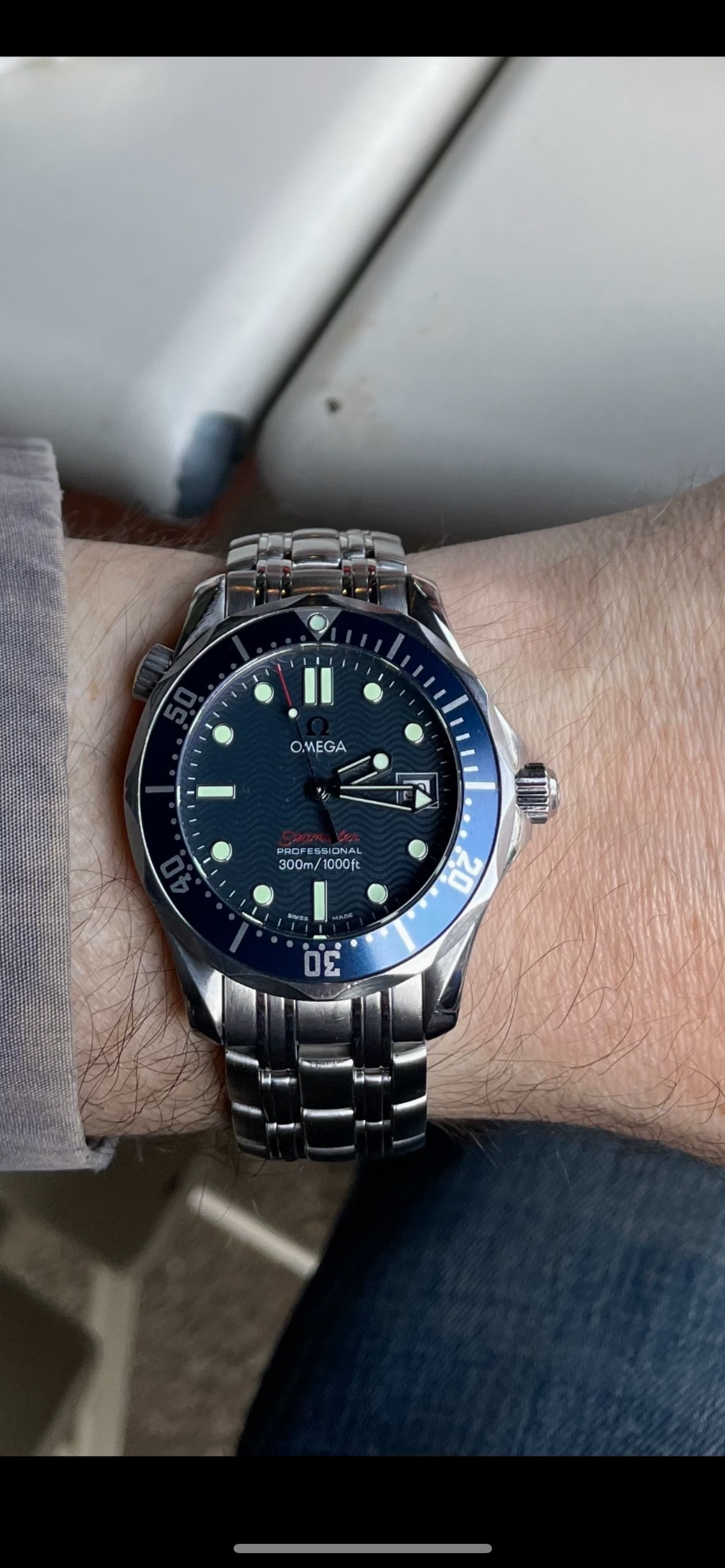 Touche, it was in the subsequent films but not GoldenEye. Went for the mechanical when I bought it. Loved the OEM milanese bracelet, but was in between sizes so recently sold it to another forum member. Ordered a shark mesh bracelet for the similar look but better fit.