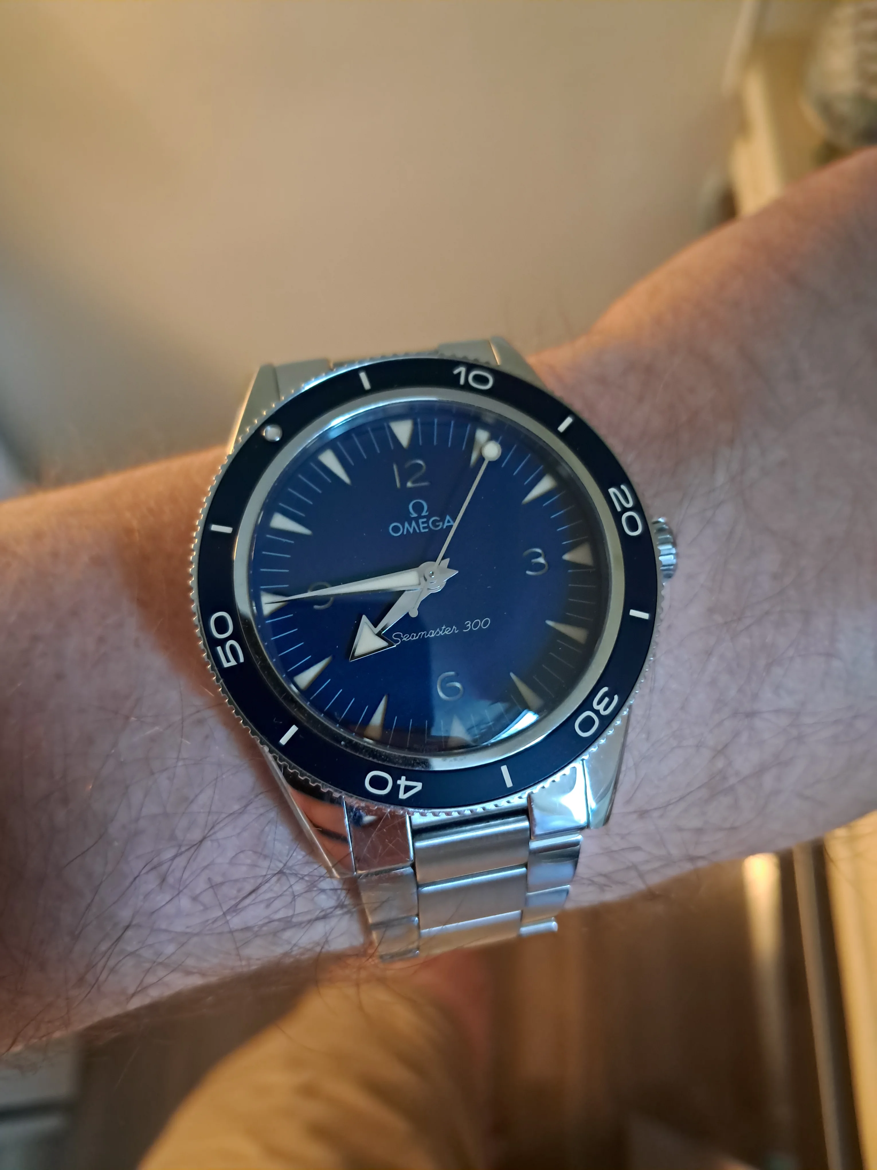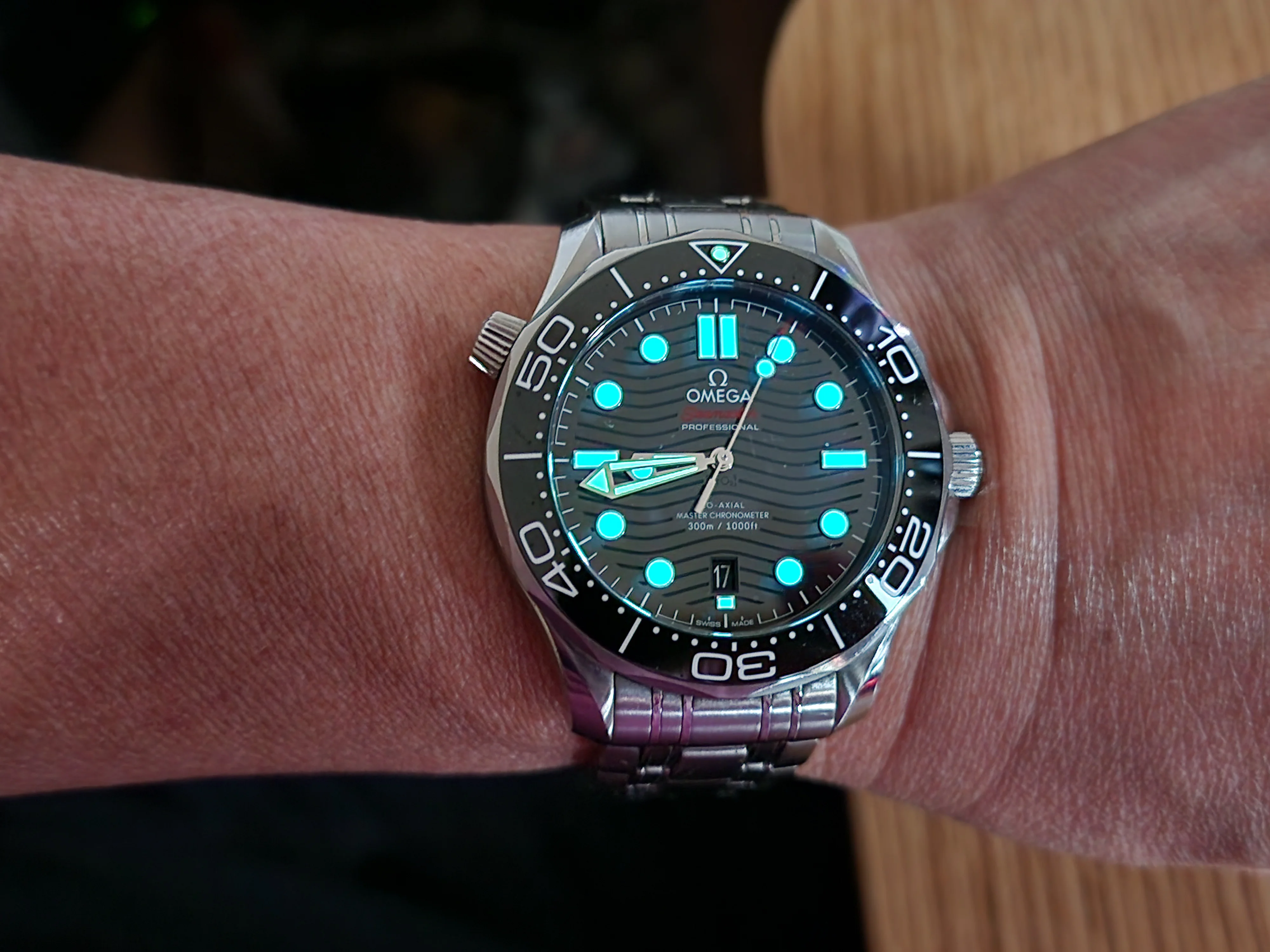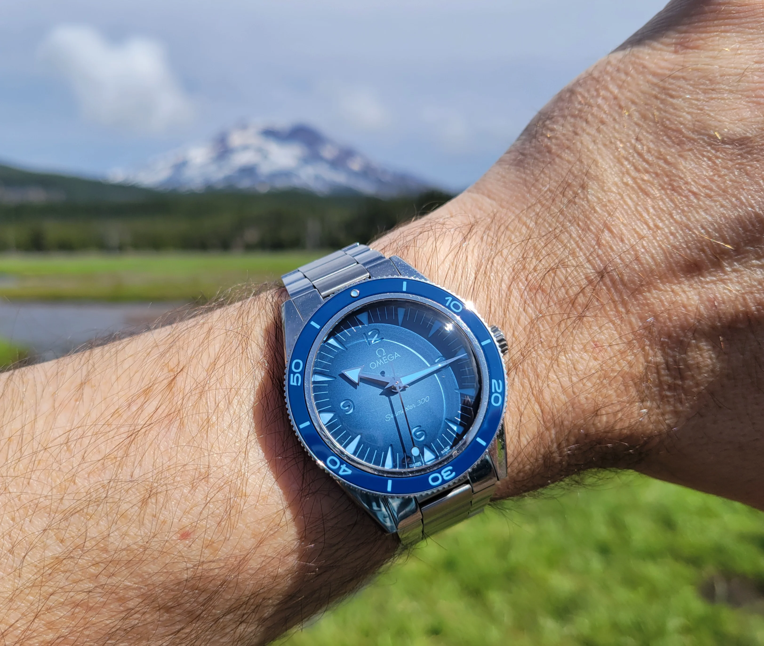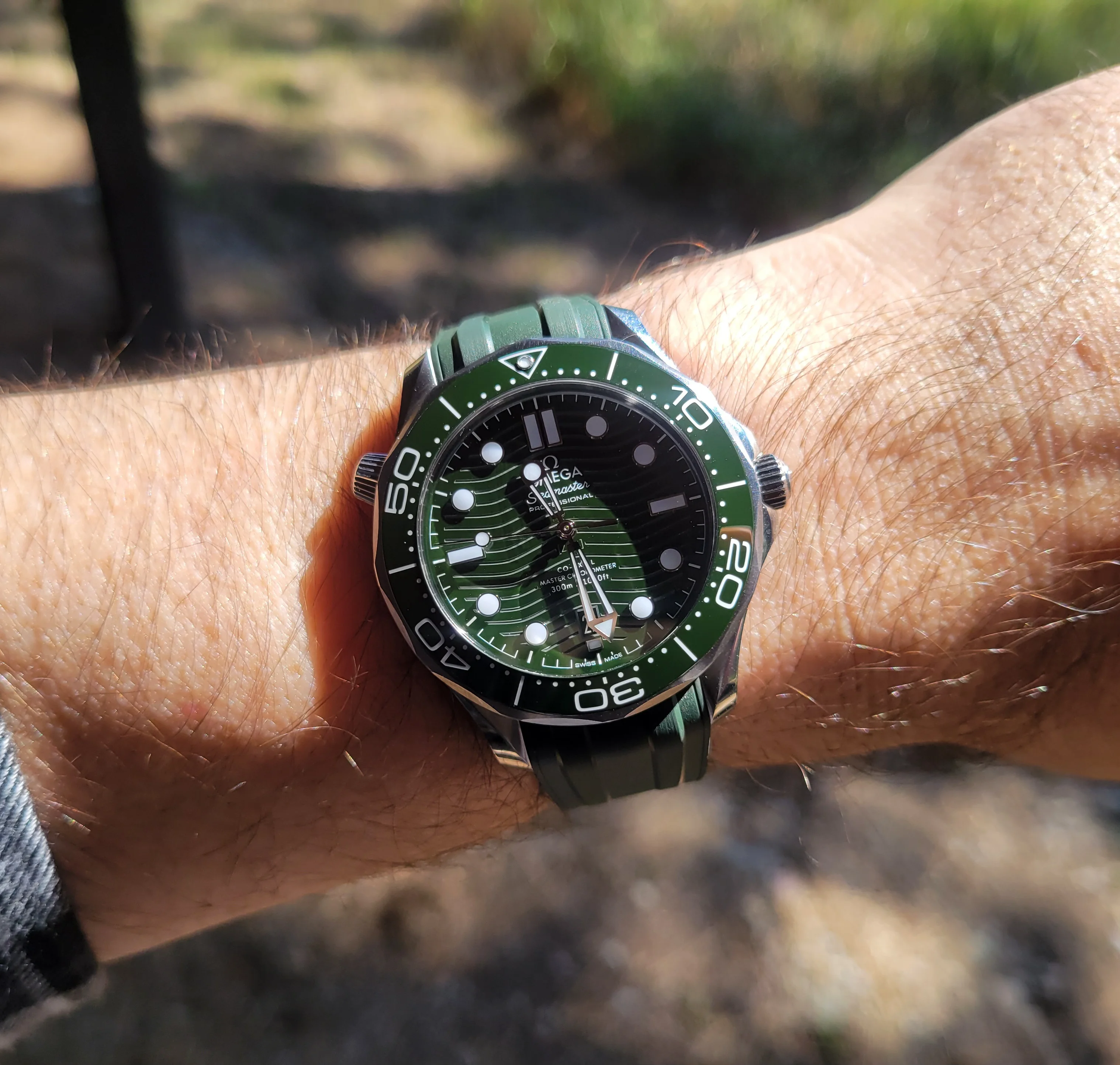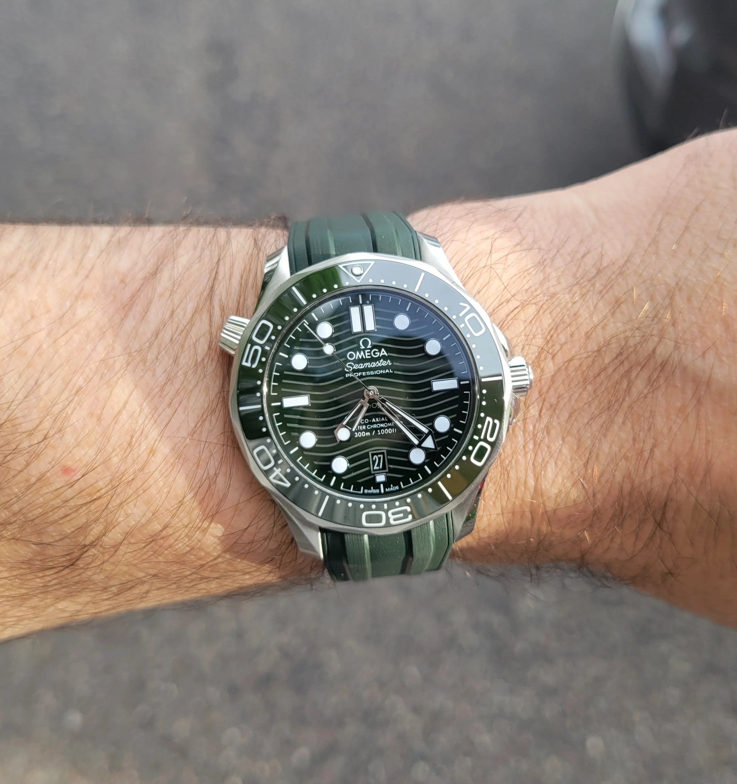 The Seaweed Green Seamaster 300M is a beautiful watch, I like the way the shade of green changes from a seaweed green to almost black depending on how the light reflects off it. I actually considered getting it while shopping for my Summer Blue 300M. I hope that you are enjoying that beauty