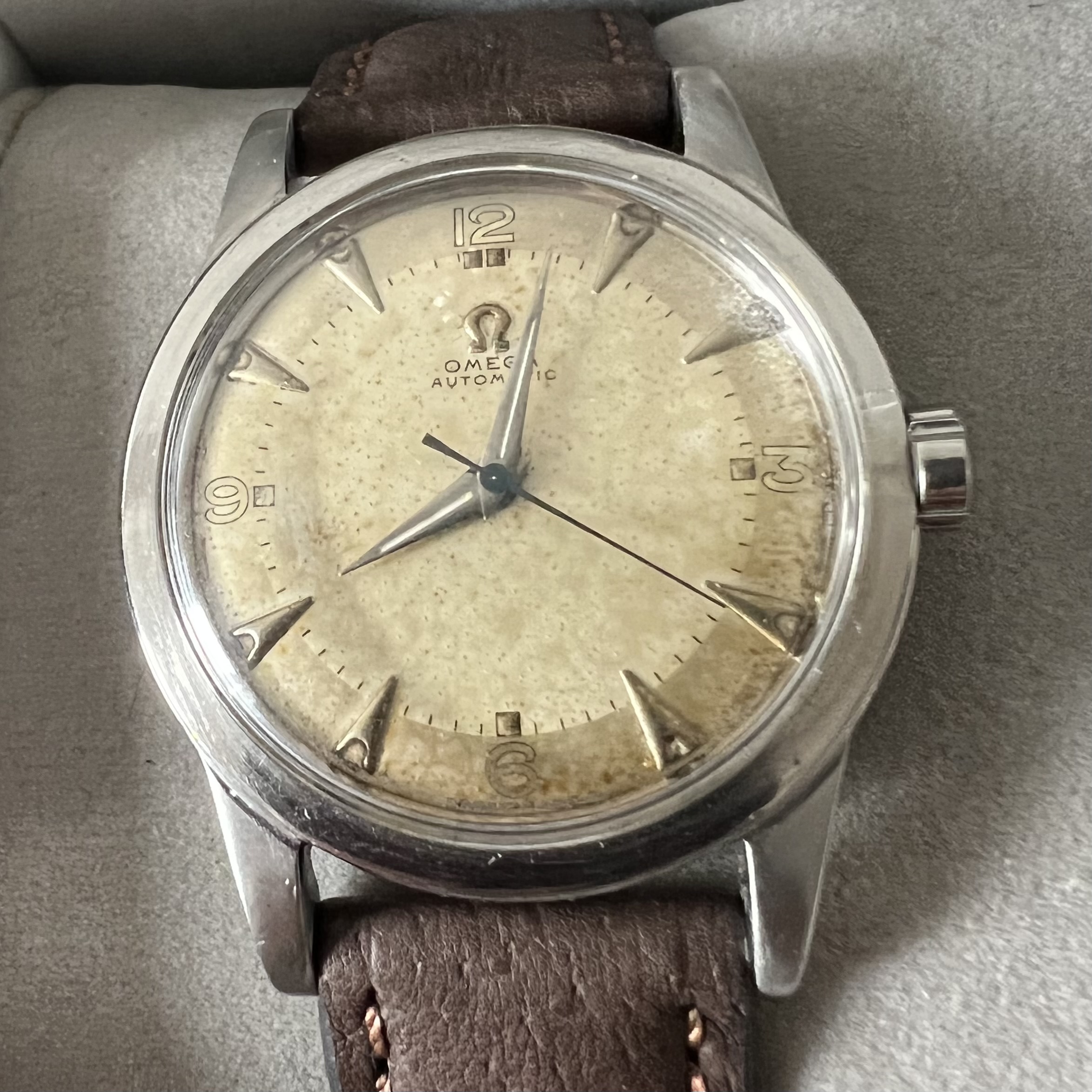 Posts 9,739 Likes 54,482 gbesq ·Dec 10, 2021 The rules of the game: 1. It has to be a genuine Omega watch 2. The dial text is limited to “OMEGA” and “Swiss Made” 3. No redials I’ll start with my 1962 “no Seamaster” Seamaster reference 14389. Edited: Jan 9, 2022