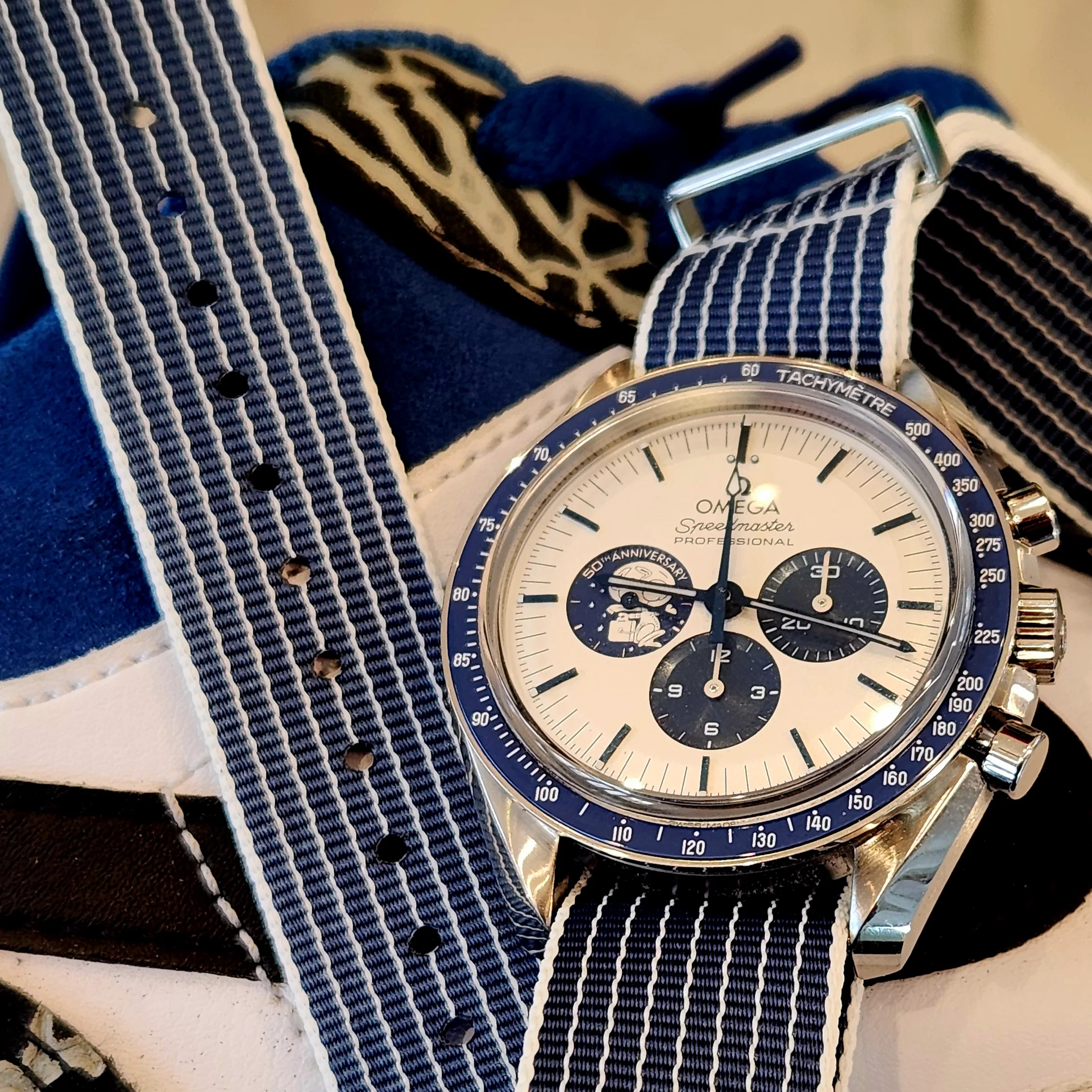 Posts 453 Likes 1,028 JetLinks ·Mar 15, 2025 PandaSPUR A macro shot I took of the back: Great shot!! But it makes me wonder why Omega added 2 variations of blue but no green? (or is it not meant to be Earth? Lol) And why cover this all up with a nato strap?