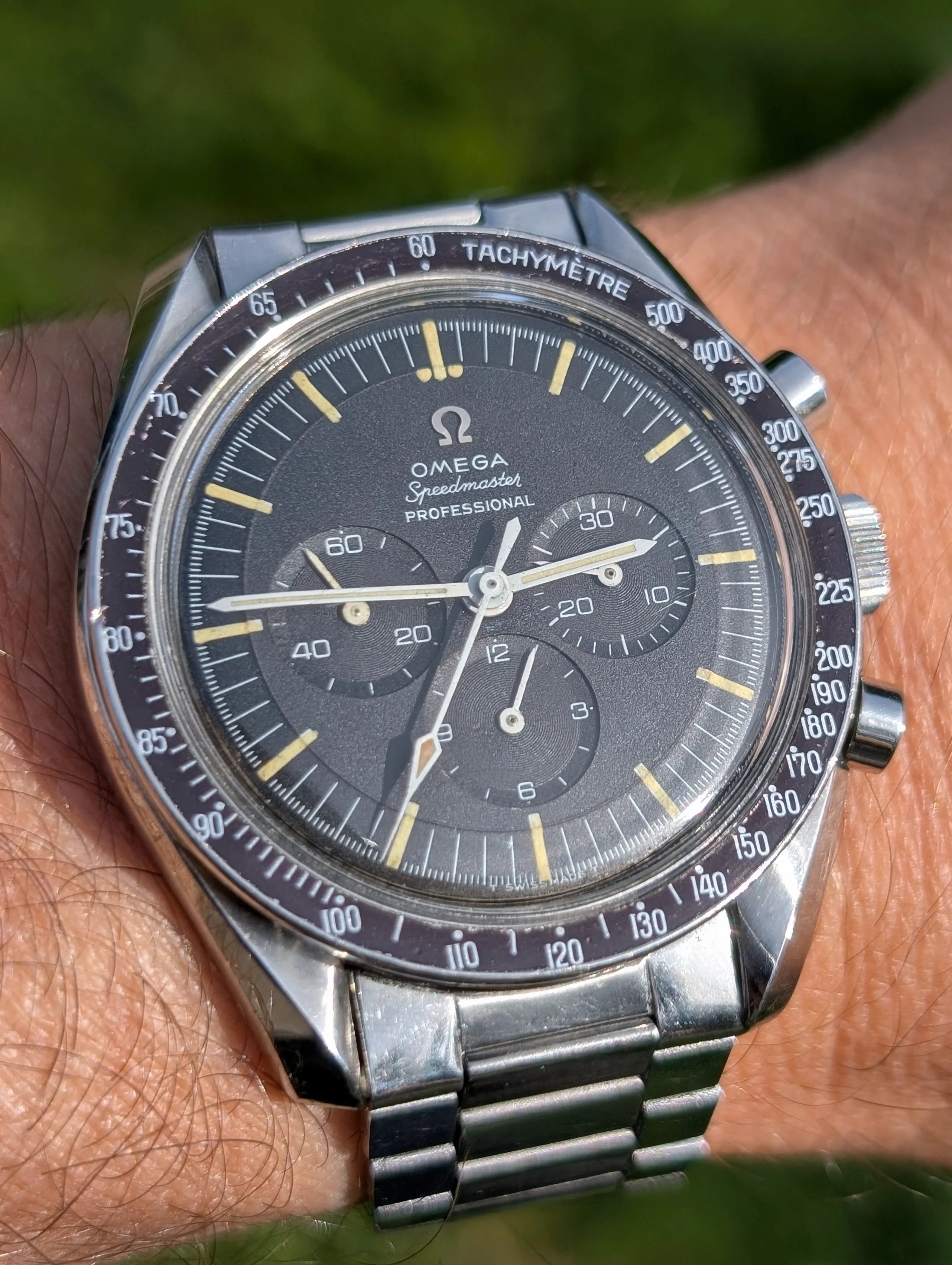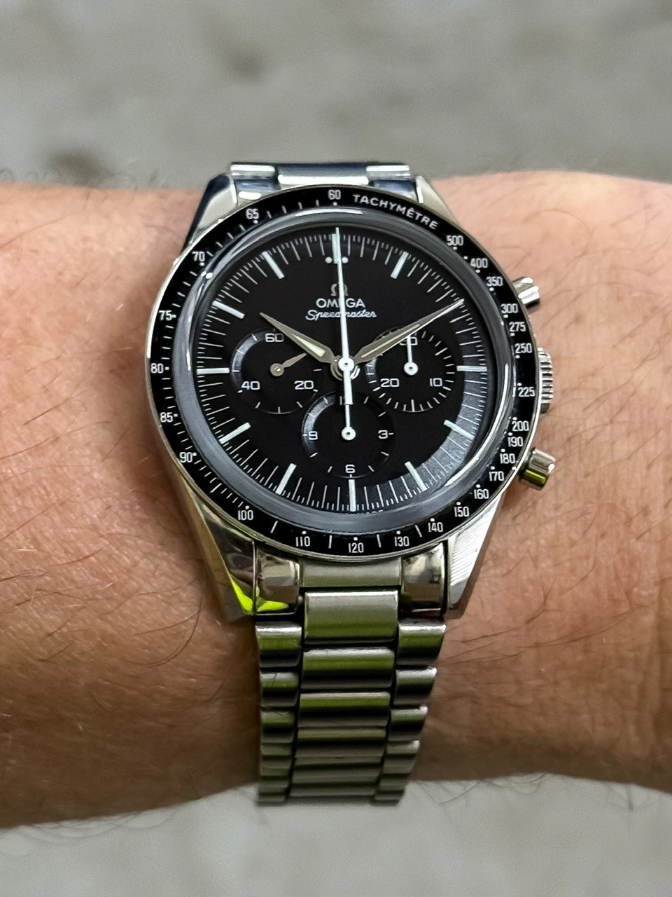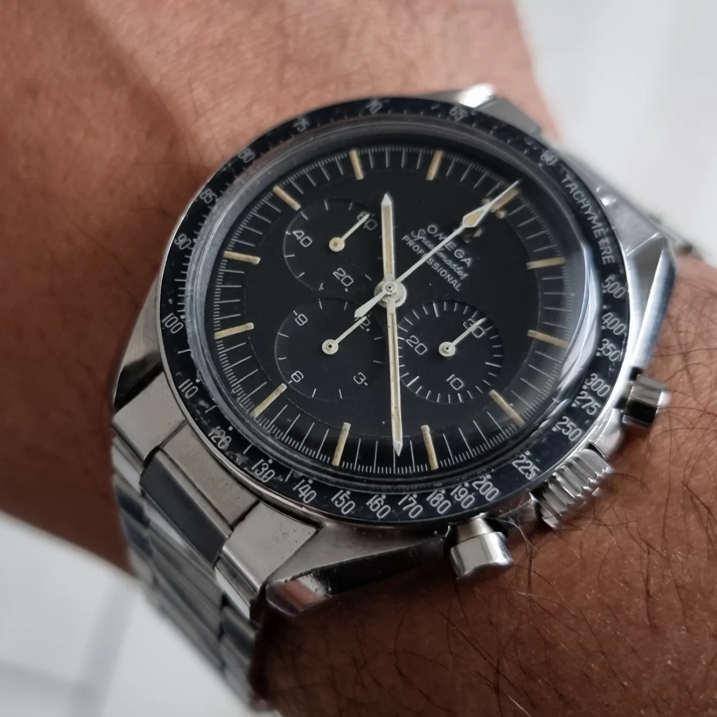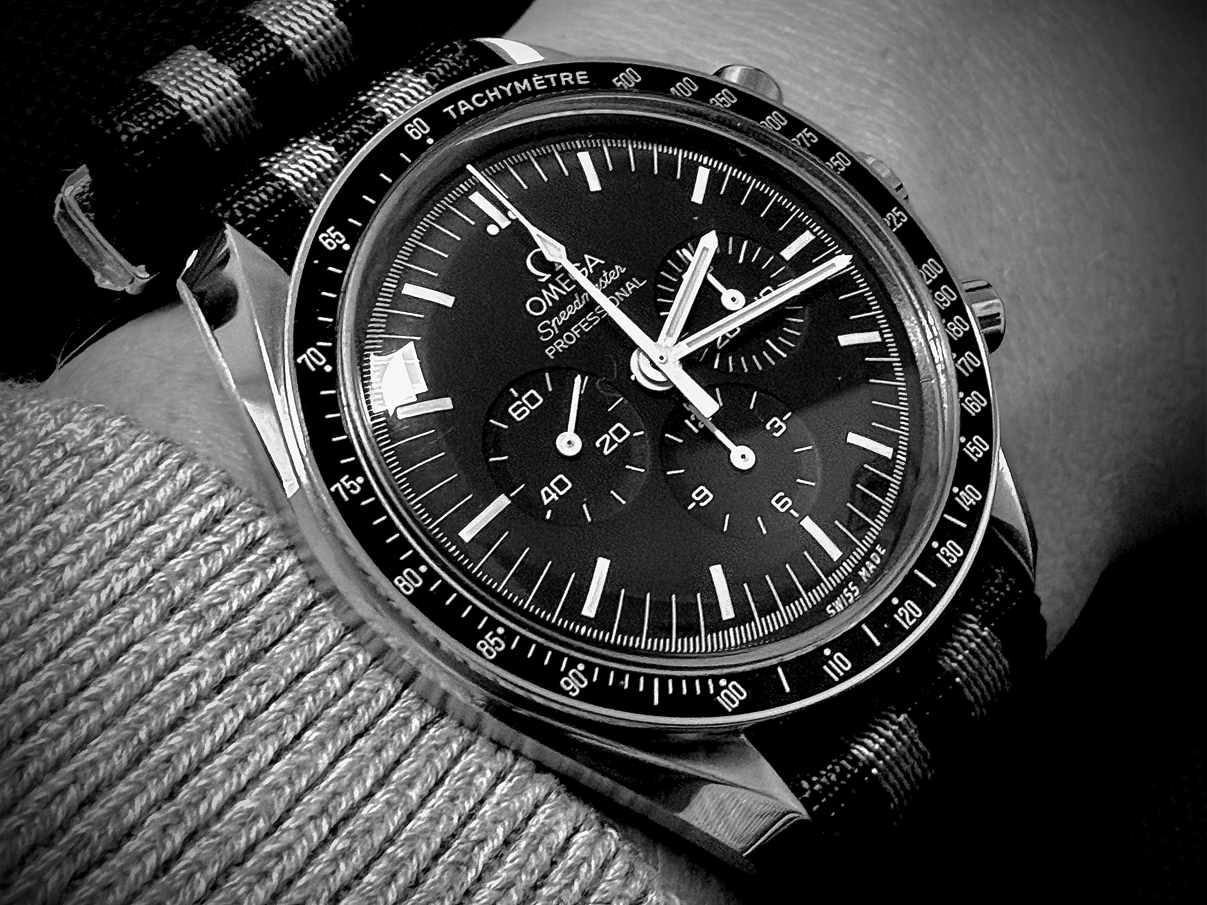 Heard the rumors, saw the first pictures then actually held one. I guess it's age, I've worn a Speedmaster Professional since 1971, one version or another, this one is so stunning I had to do it. Have worn it every day for almost a year, it's still stunning. My first Speedy was a late wedding gift from my wife, now 54 years later, an anniversary present. She prefers Movados, but thinks the White Speedy is dresser than the traditional face, she actually noticed the raised indices. Just glad we got it last year when it was still $8100.