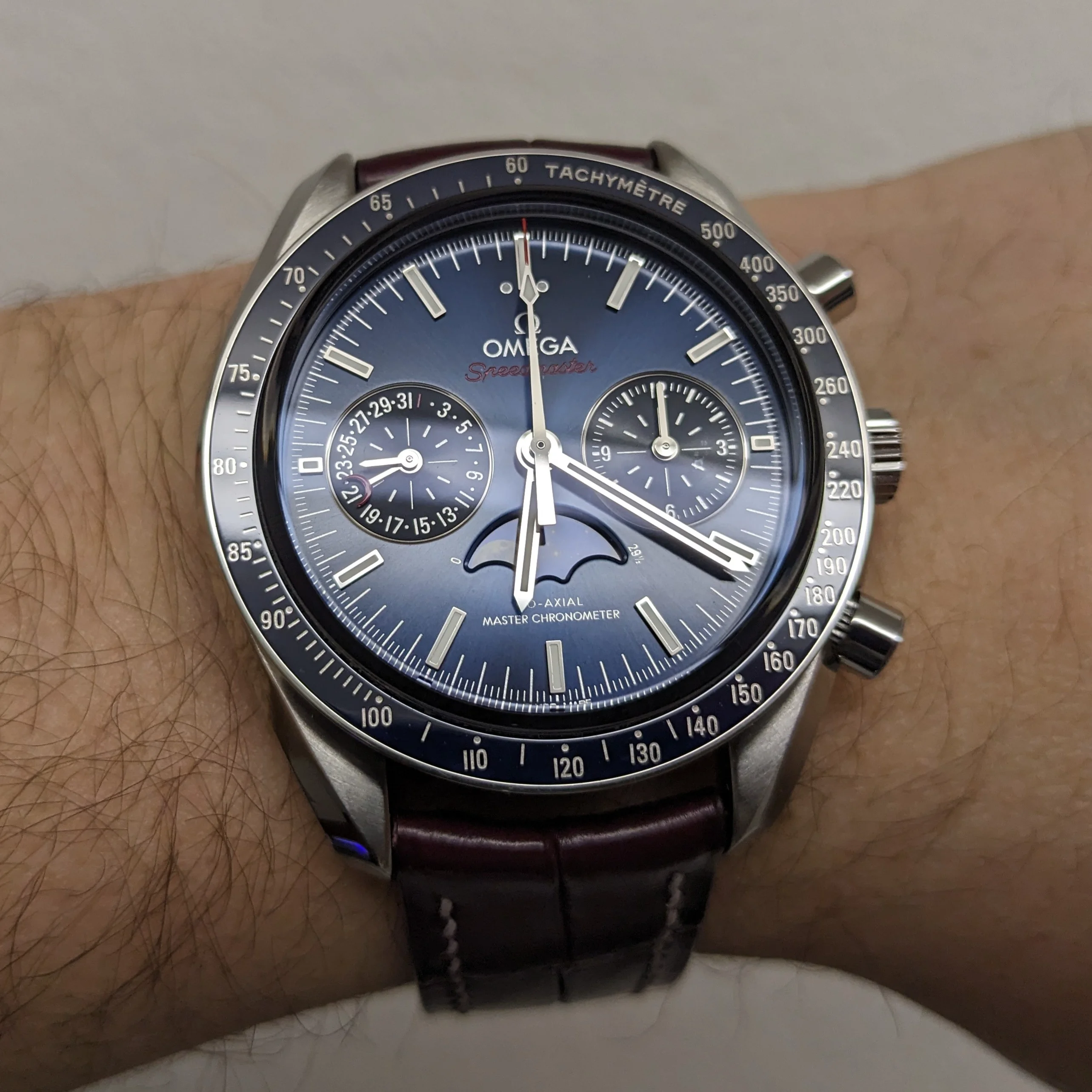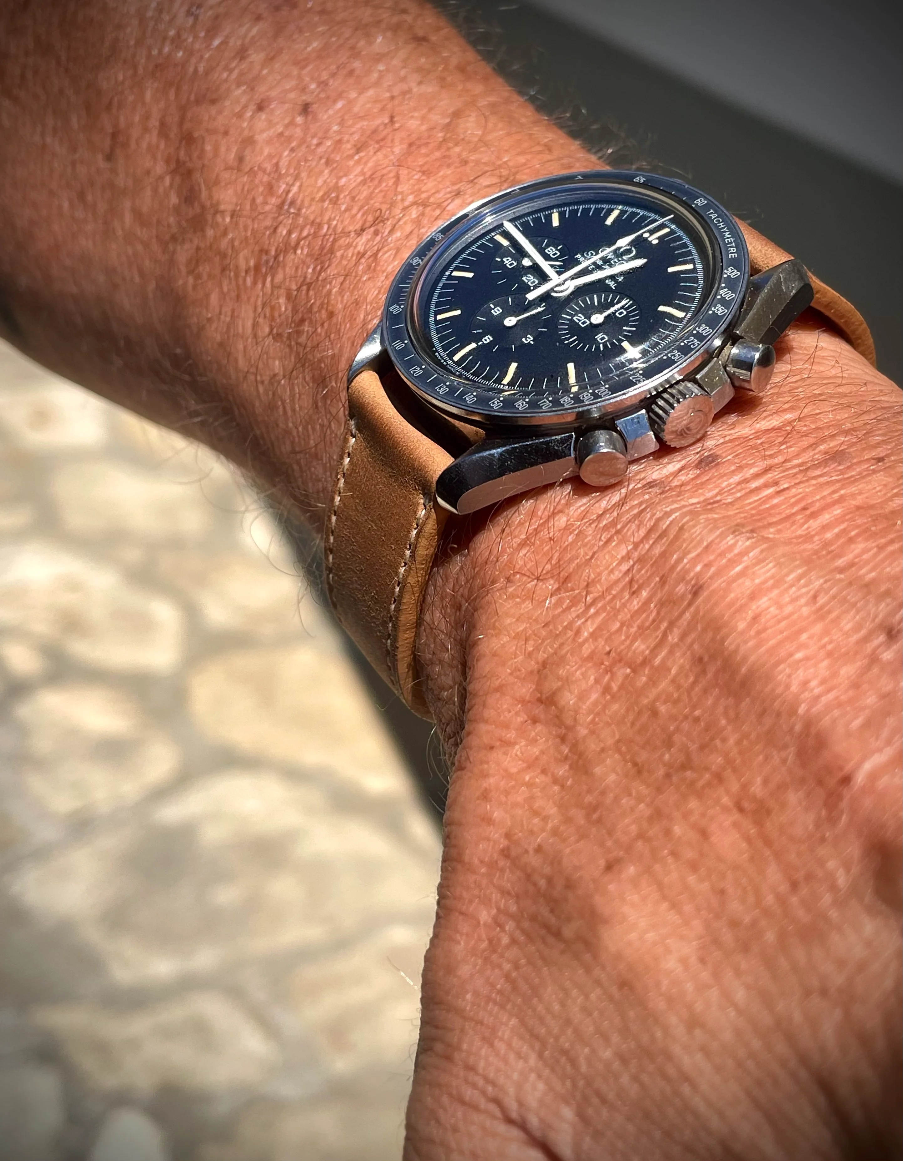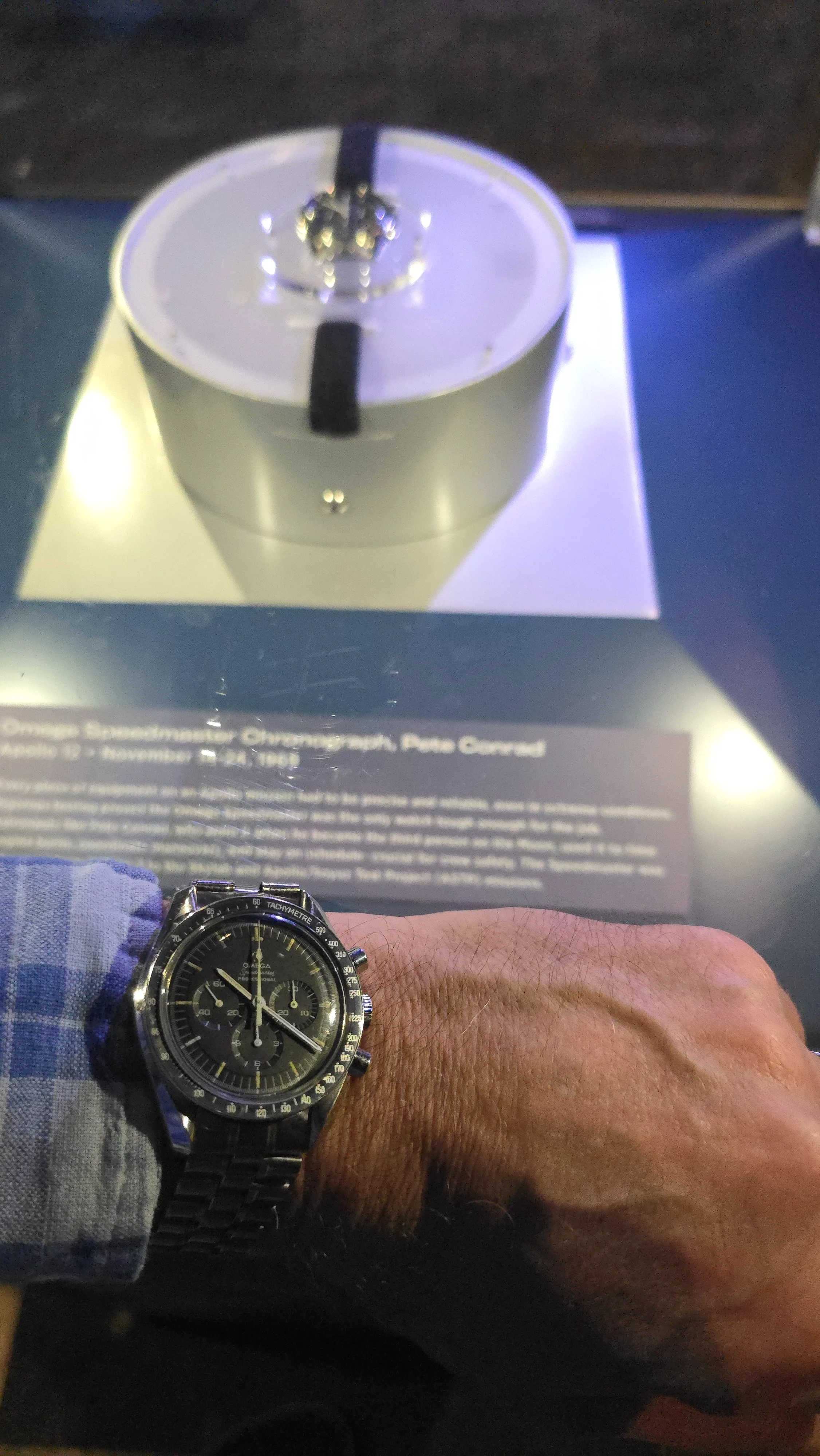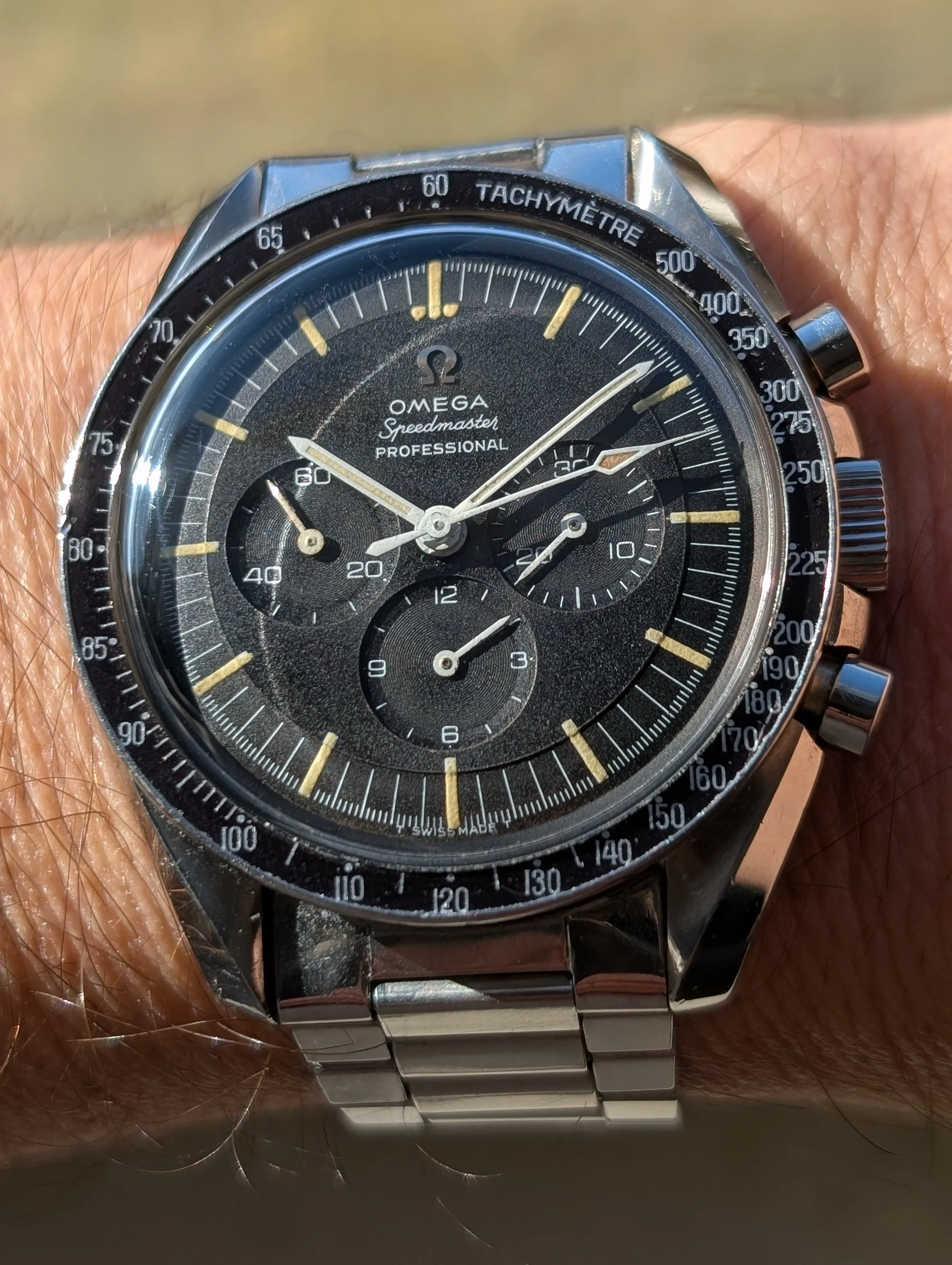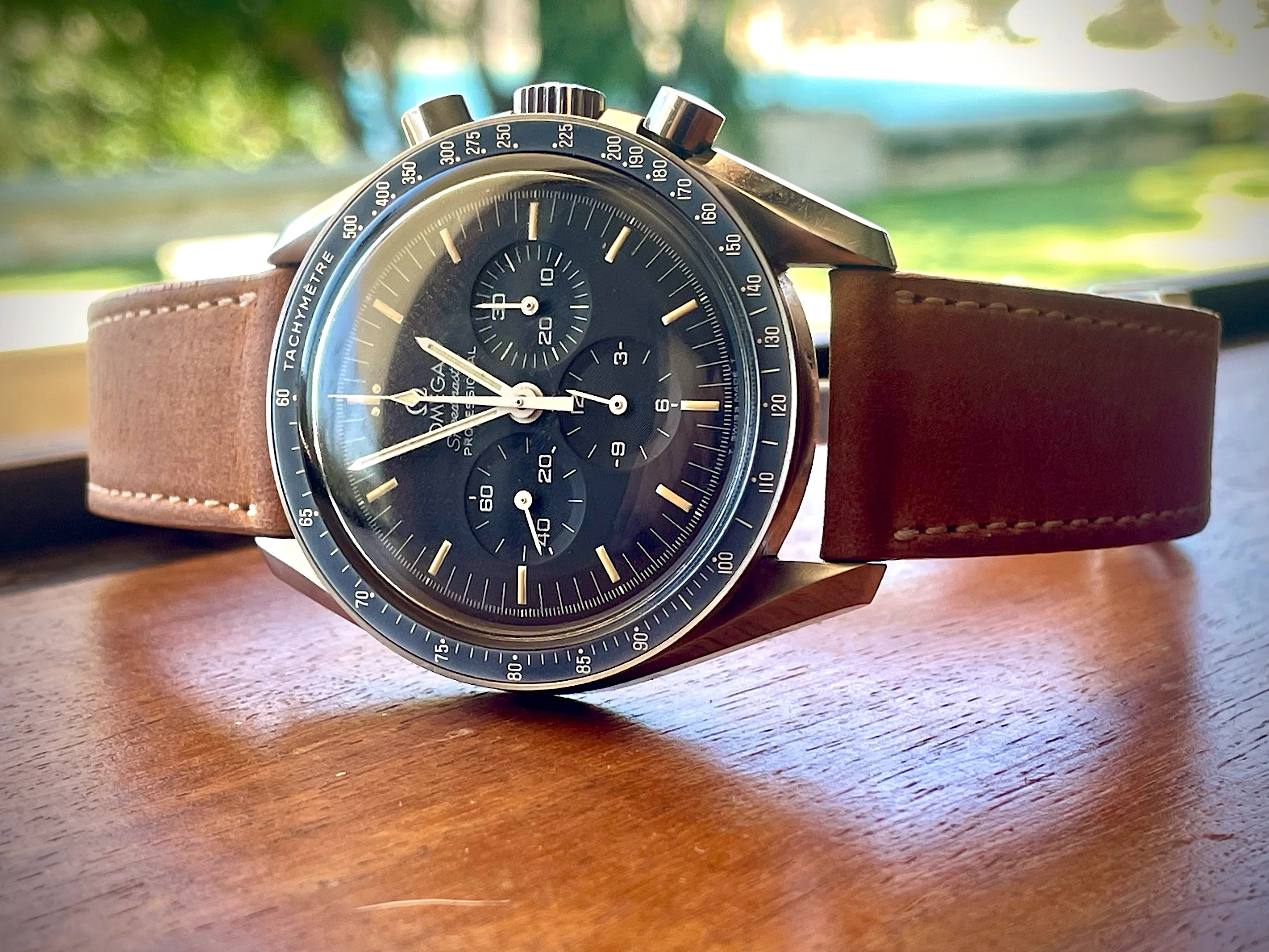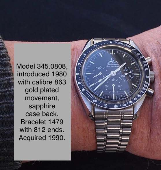 I guess I really don’t understand the meaning of “moon watch”. My Speedmaster 345.0808 (first Speedmaster with a sapphire case back) was introduced in 1980. (Eight years after the last moon landing.) I’ve had mine since 1990. Whether or not it qualifies as a “moon watch” (owing to its vintage), here it is. Movement is gold plated calibre 863.