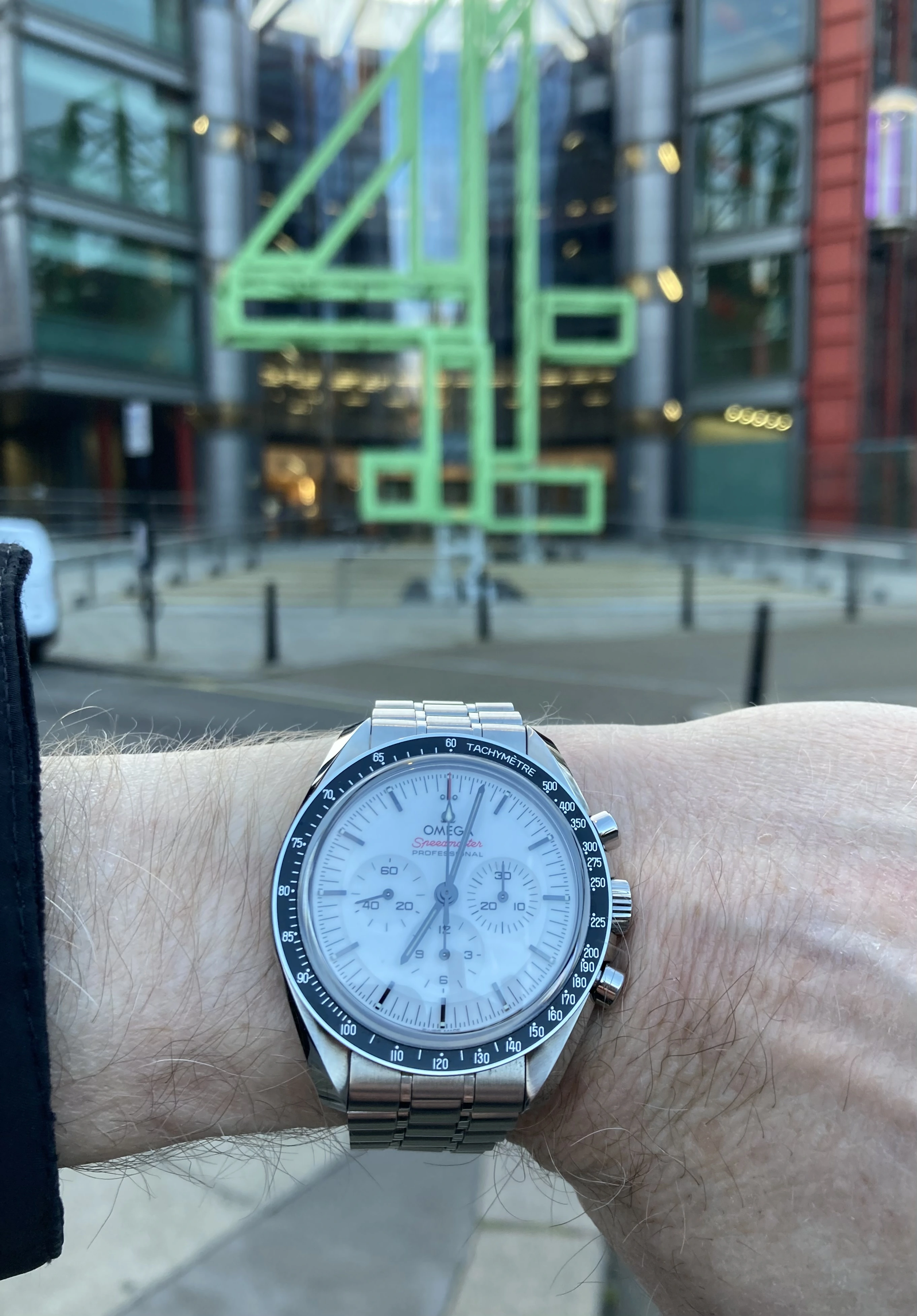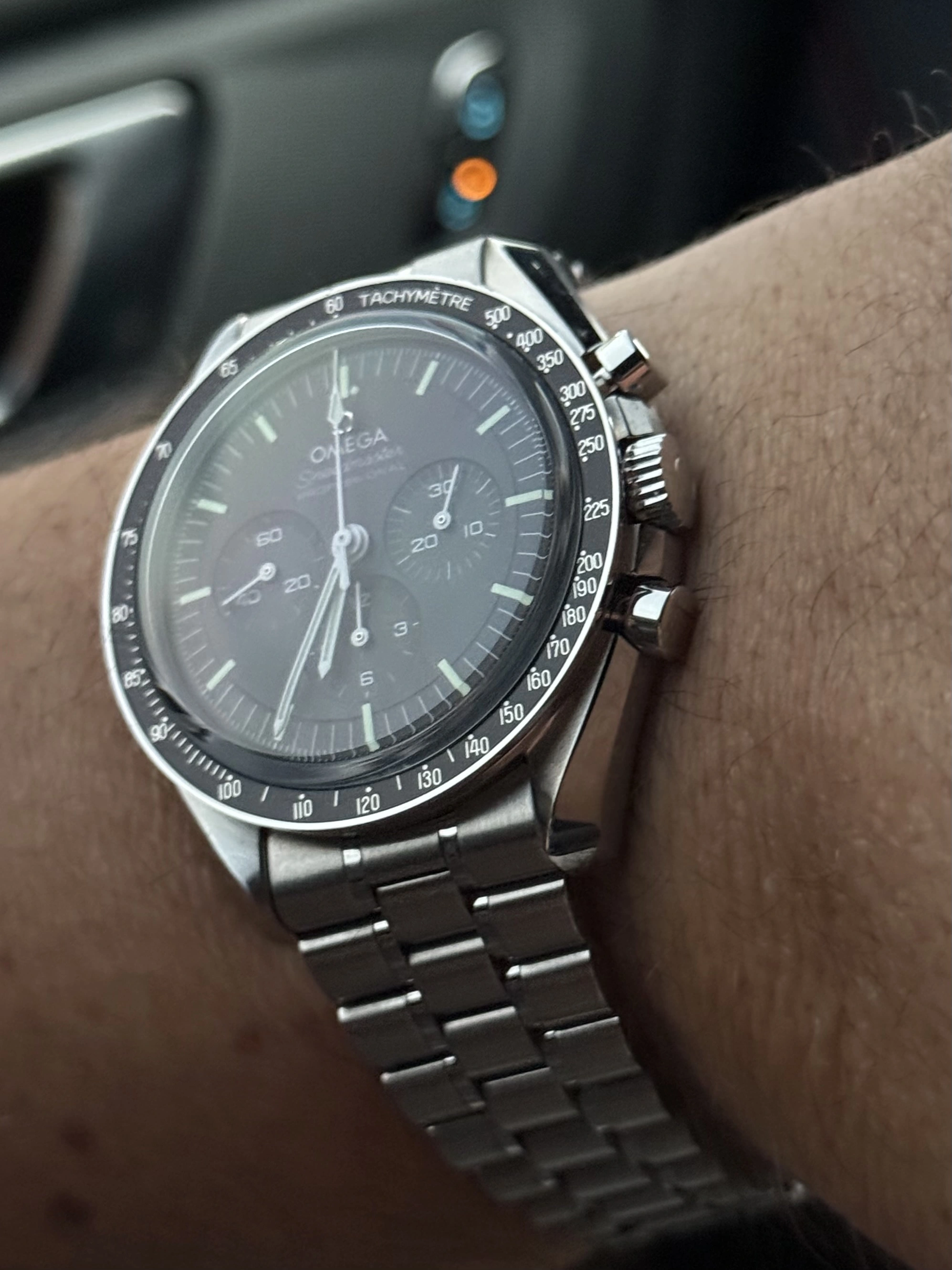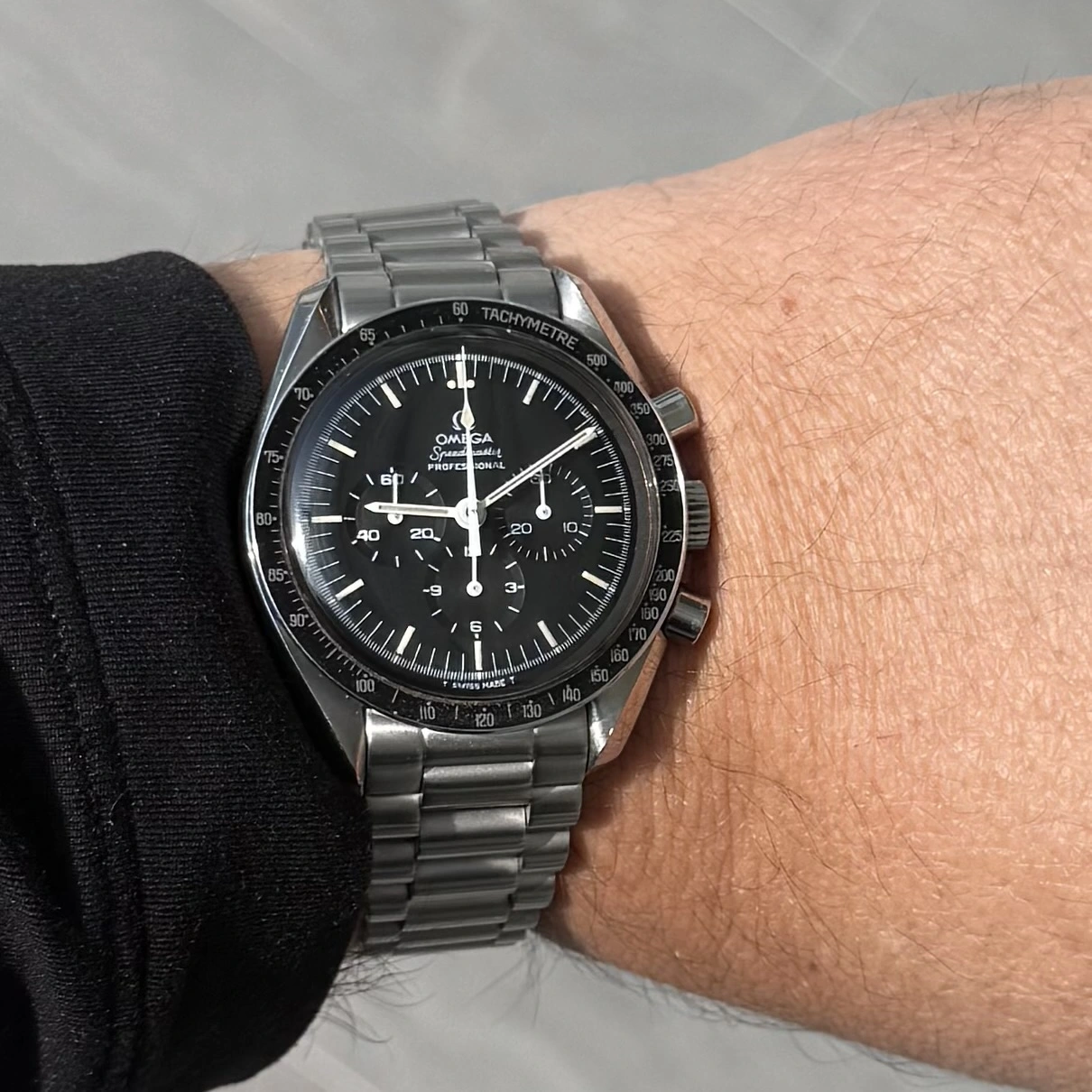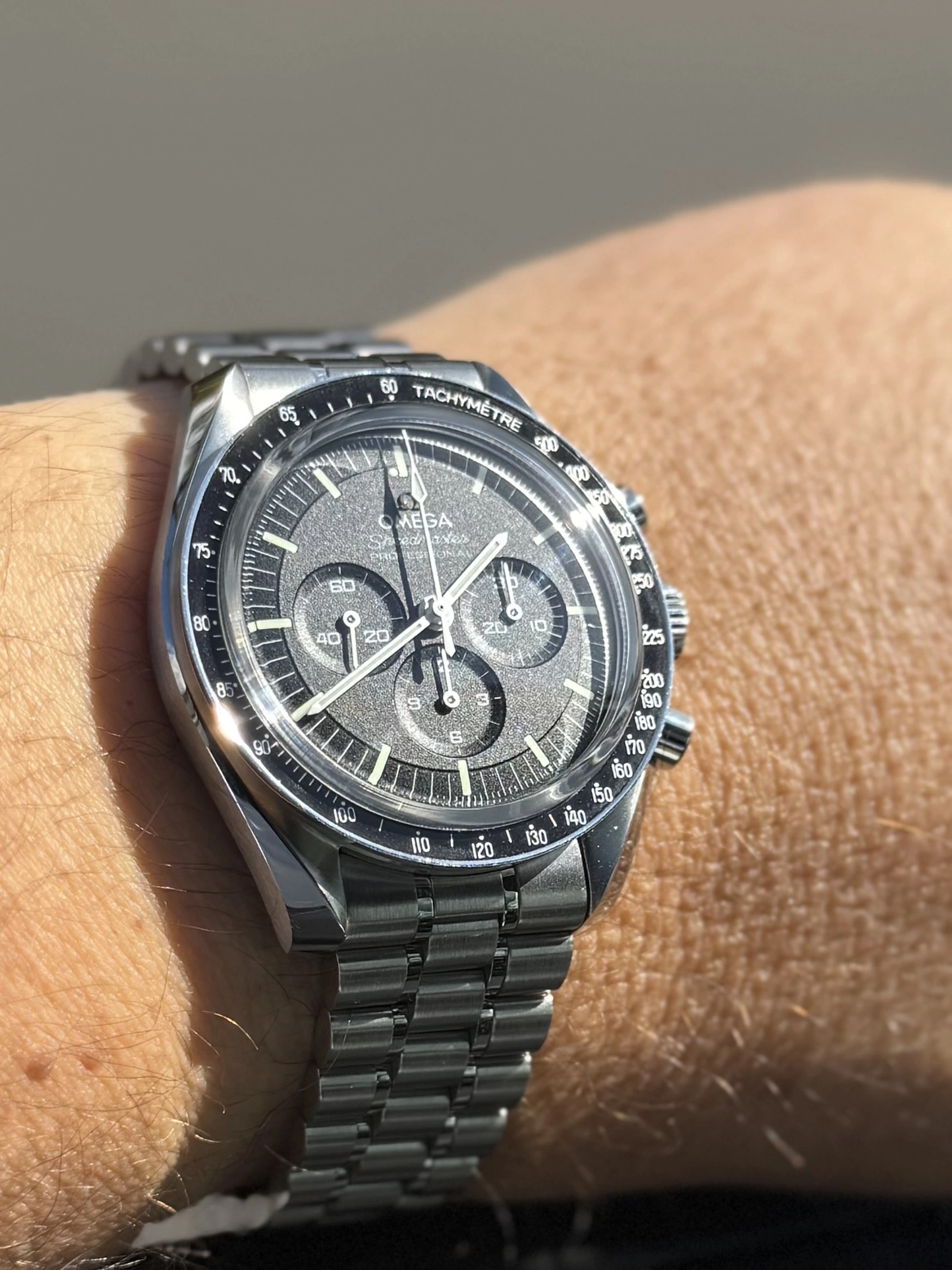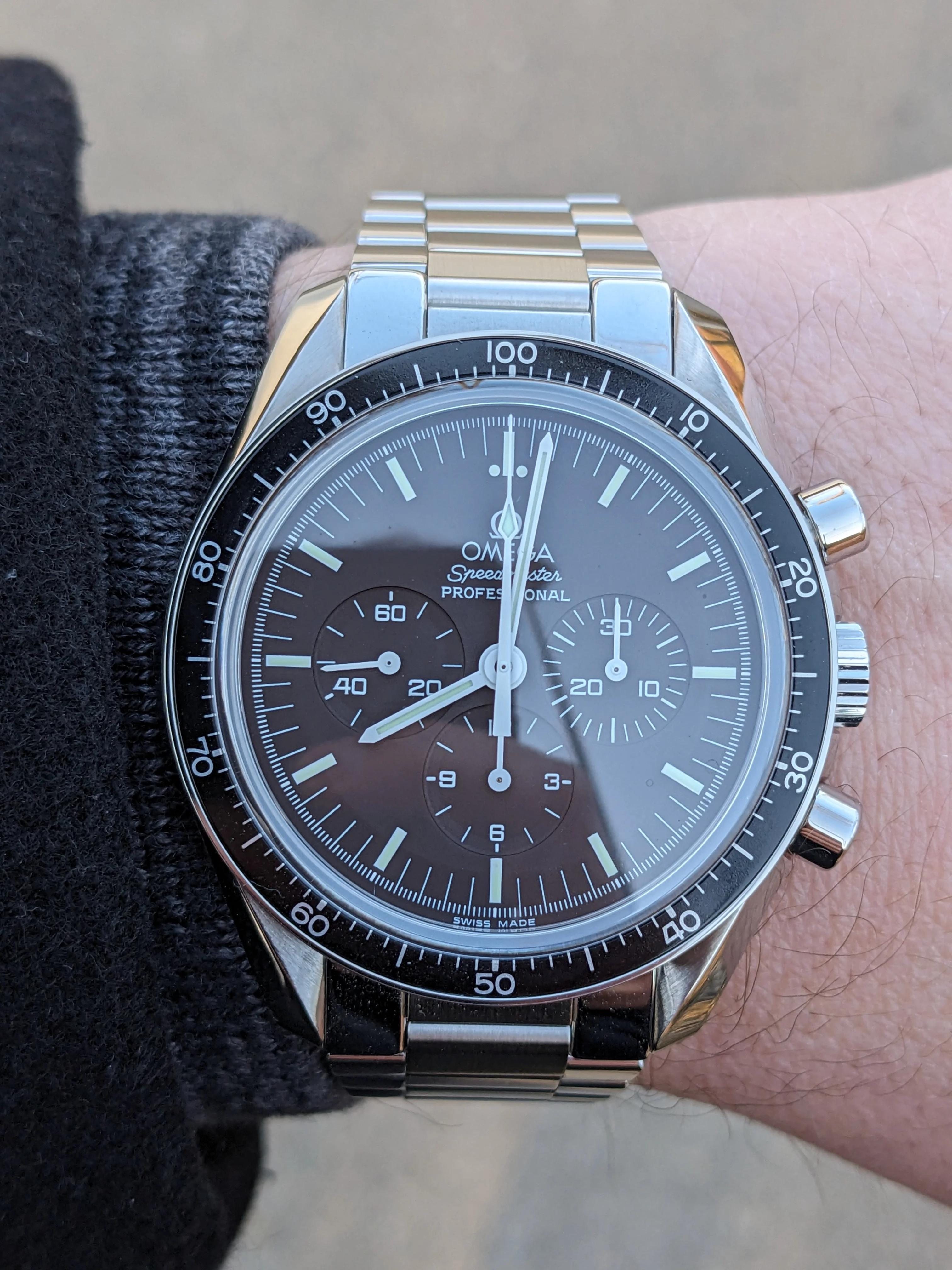 I guess I really don’t understand the meaning of “moon watch”. My Speedmaster 345.0808 (first Speedmaster with a sapphire case back) was introduced in 1980. (Eight years after the last moon landing.) I’ve had mine since 1990. Whether or not it qualifies as a “moon watch” (owing to its vintage), here it is. Movement is gold plated calibre 863.