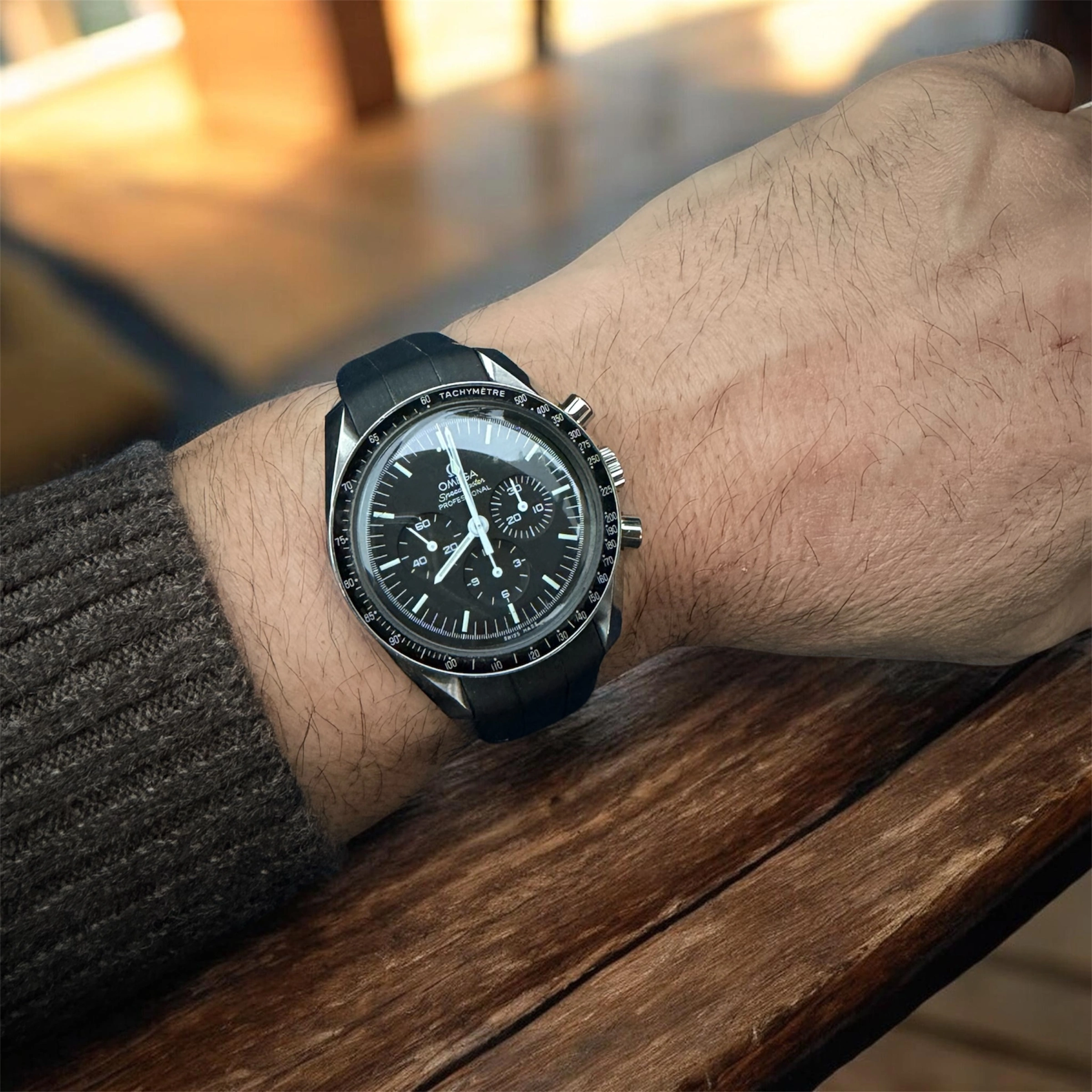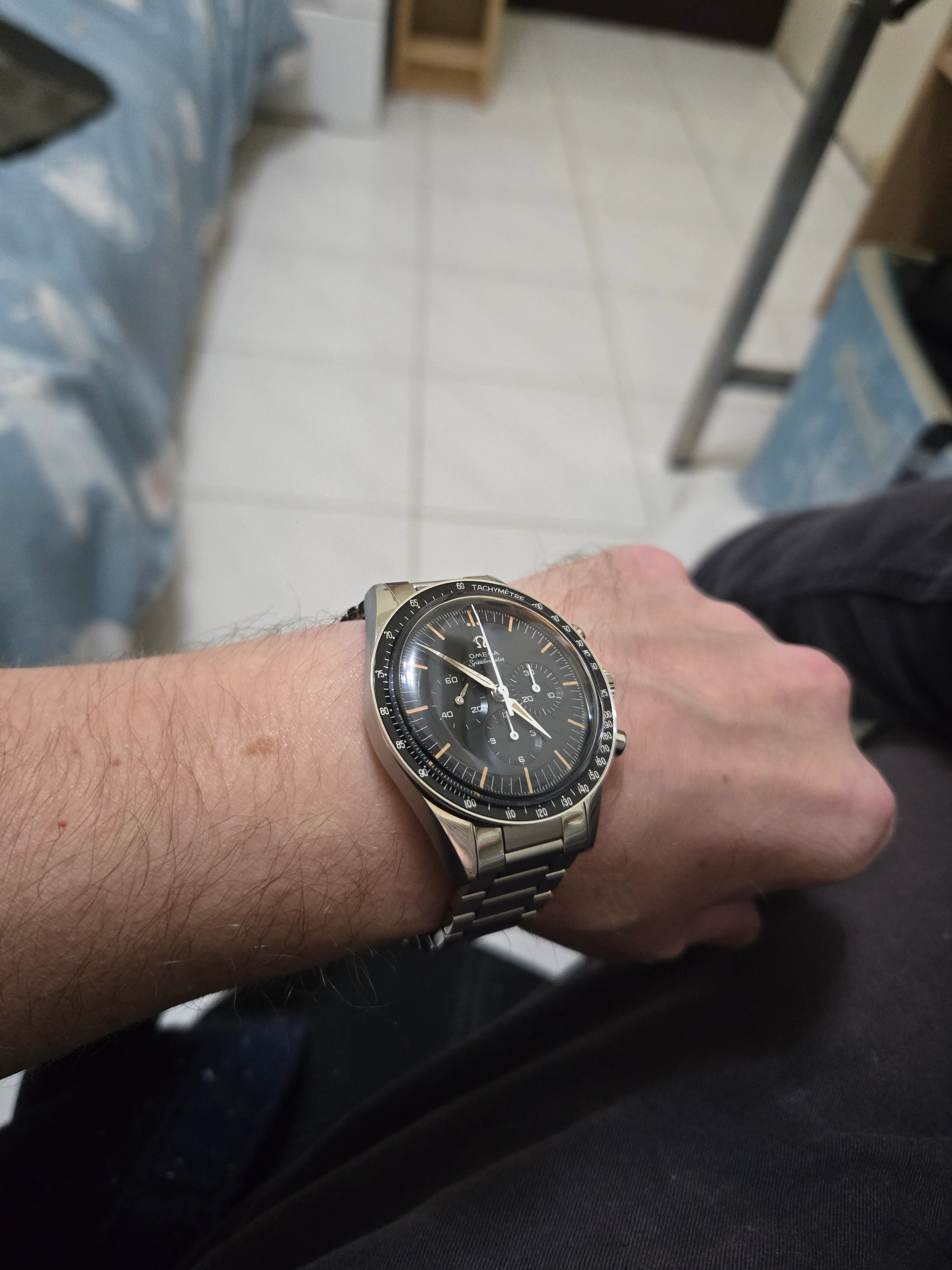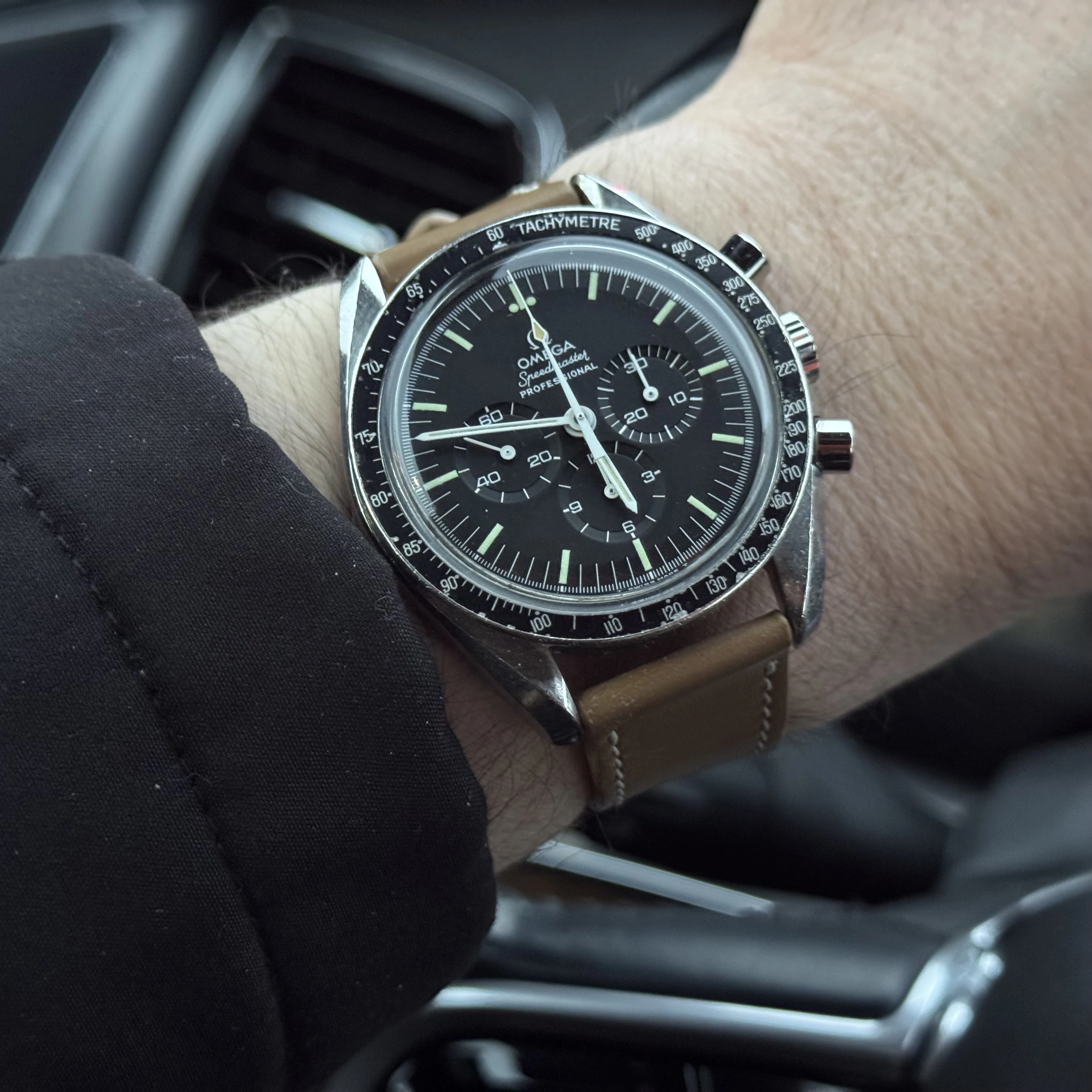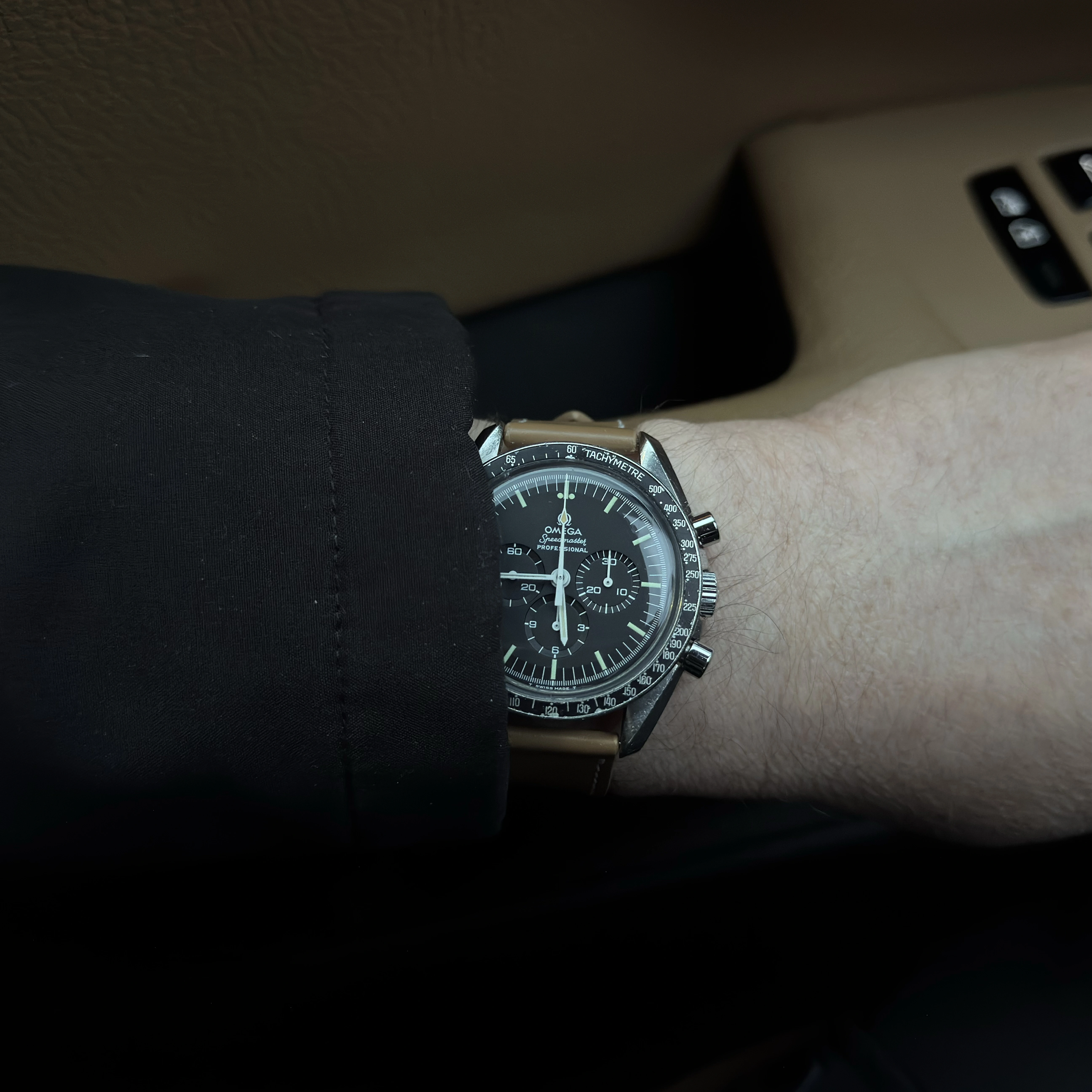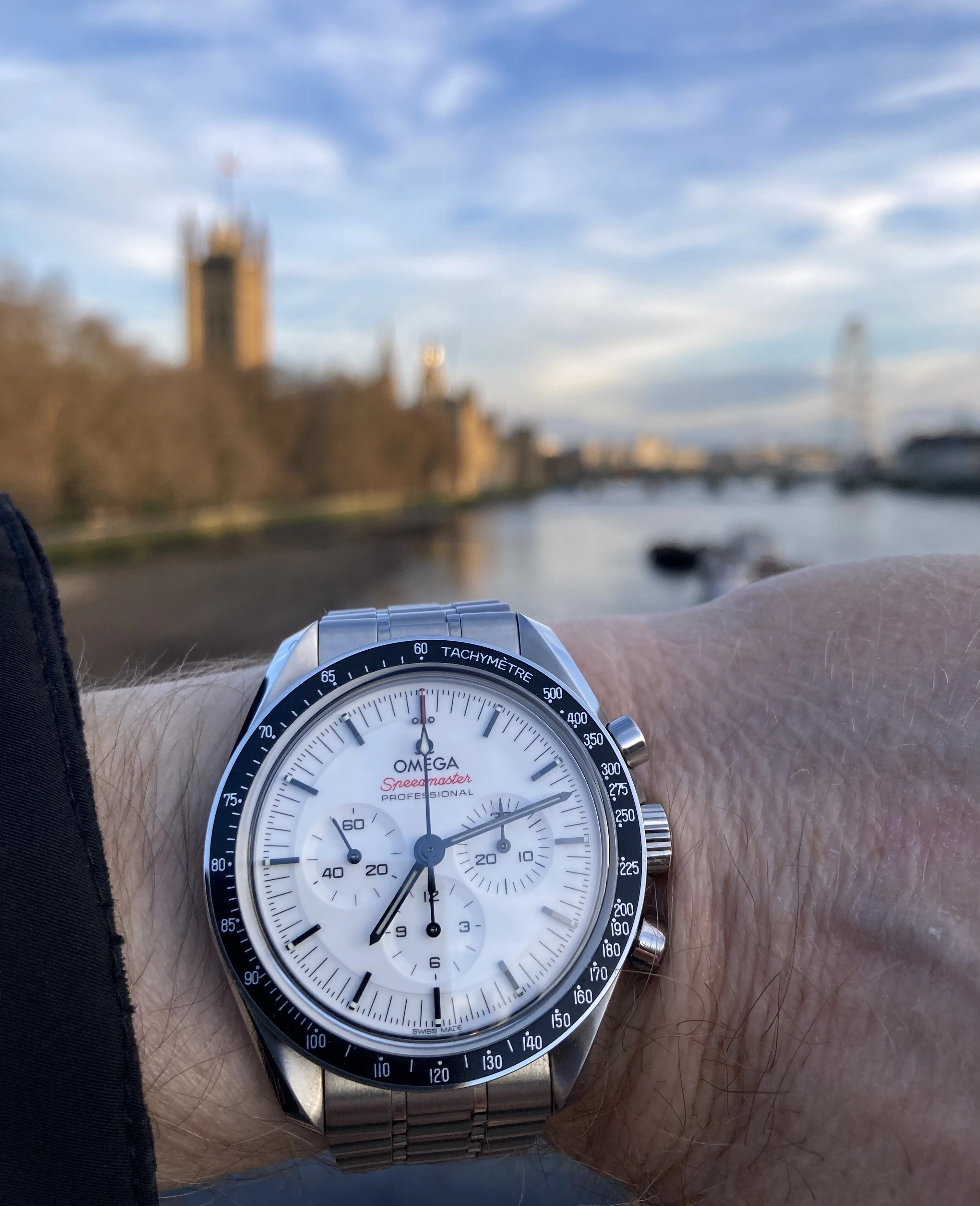 I guess I really don’t understand the meaning of “moon watch”. My Speedmaster 345.0808 (first Speedmaster with a sapphire case back) was introduced in 1980. (Eight years after the last moon landing.) I’ve had mine since 1990. Whether or not it qualifies as a “moon watch” (owing to its vintage), here it is. Movement is gold plated calibre 863.