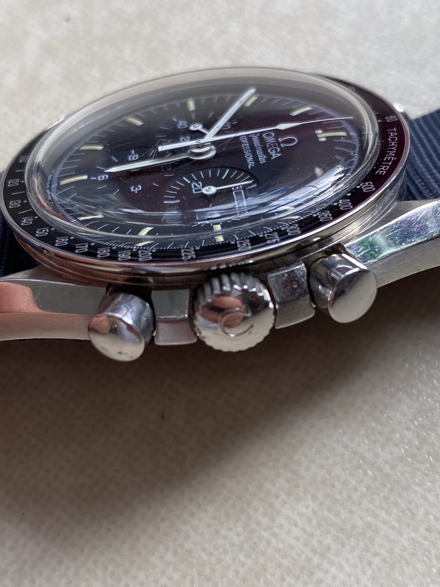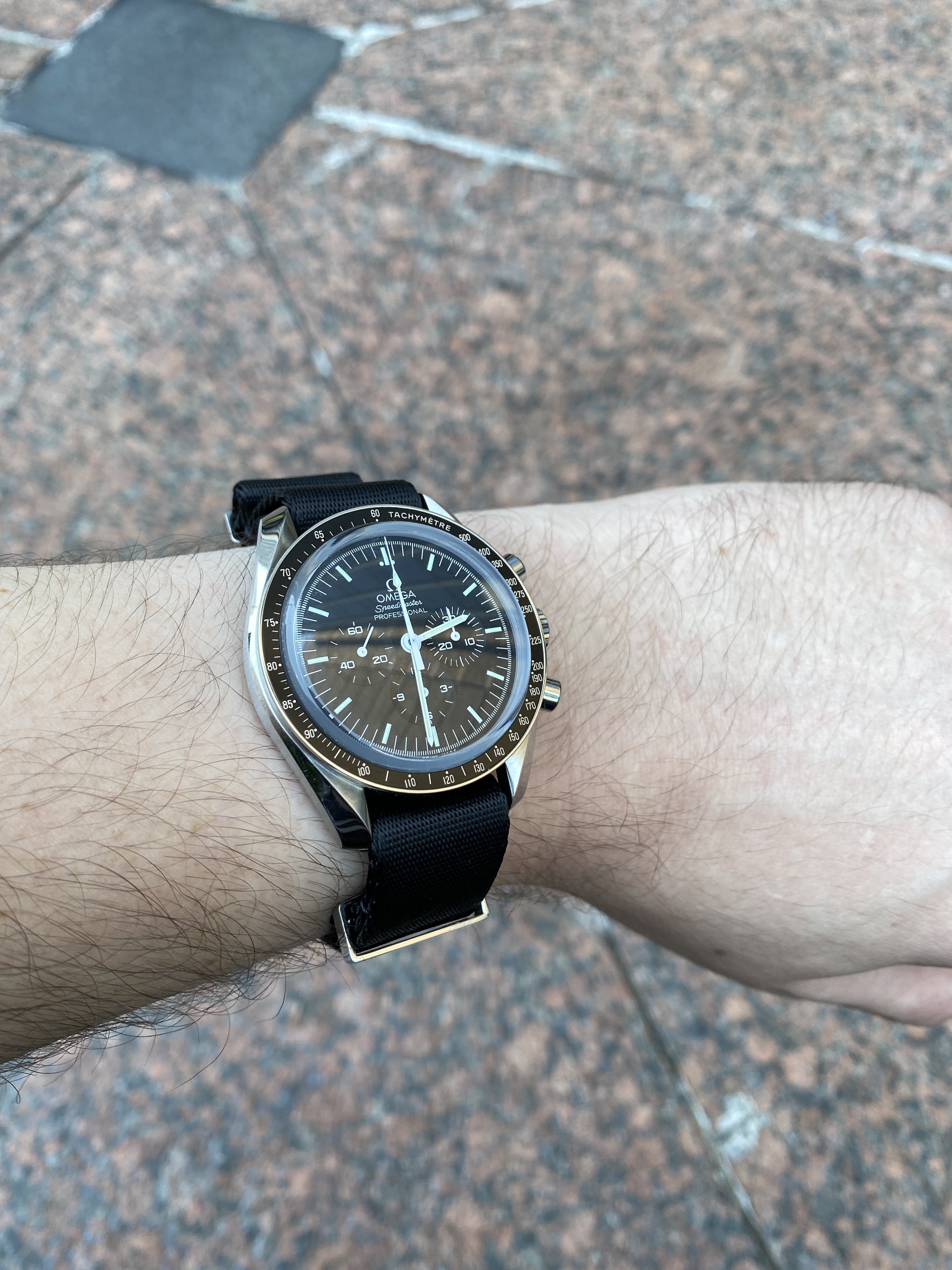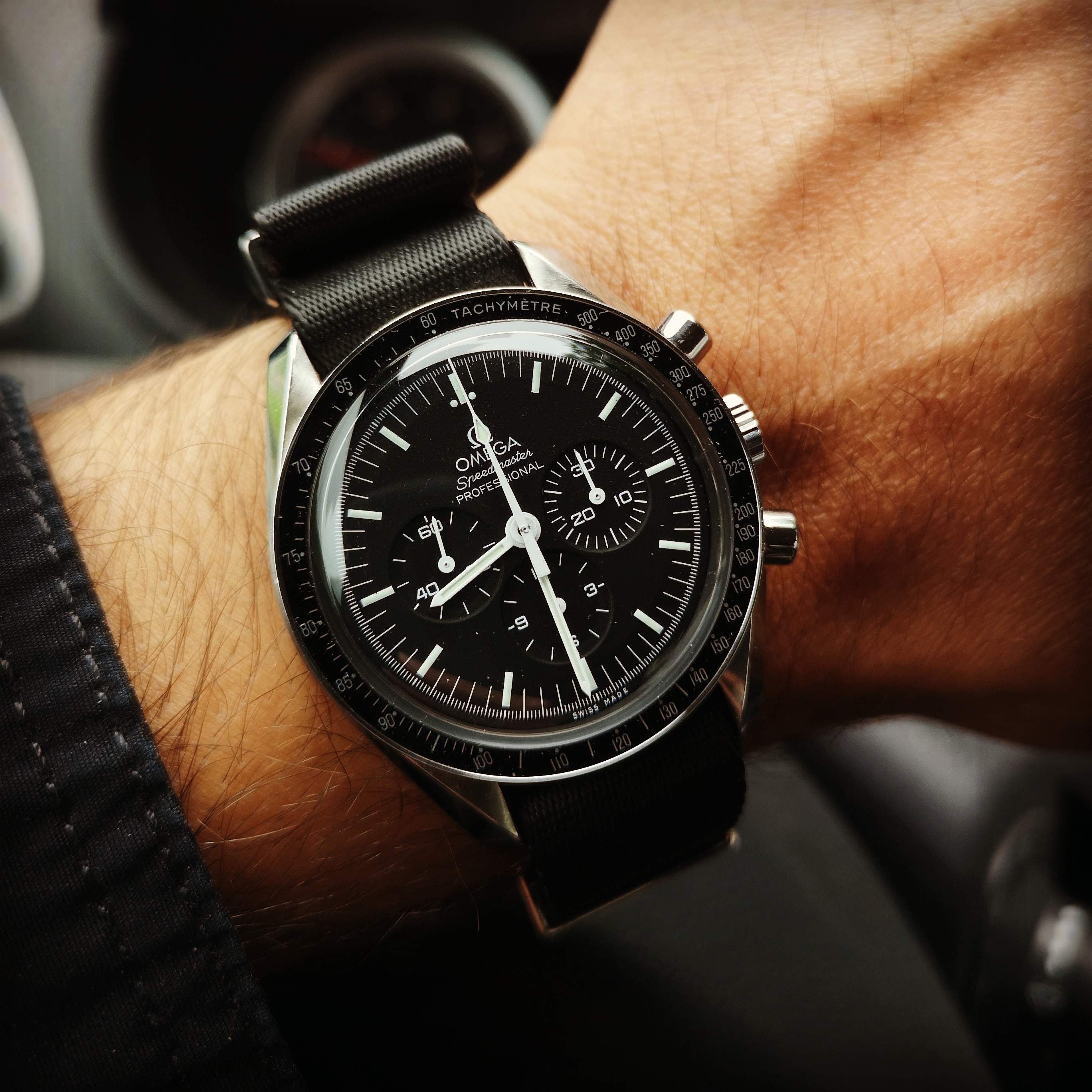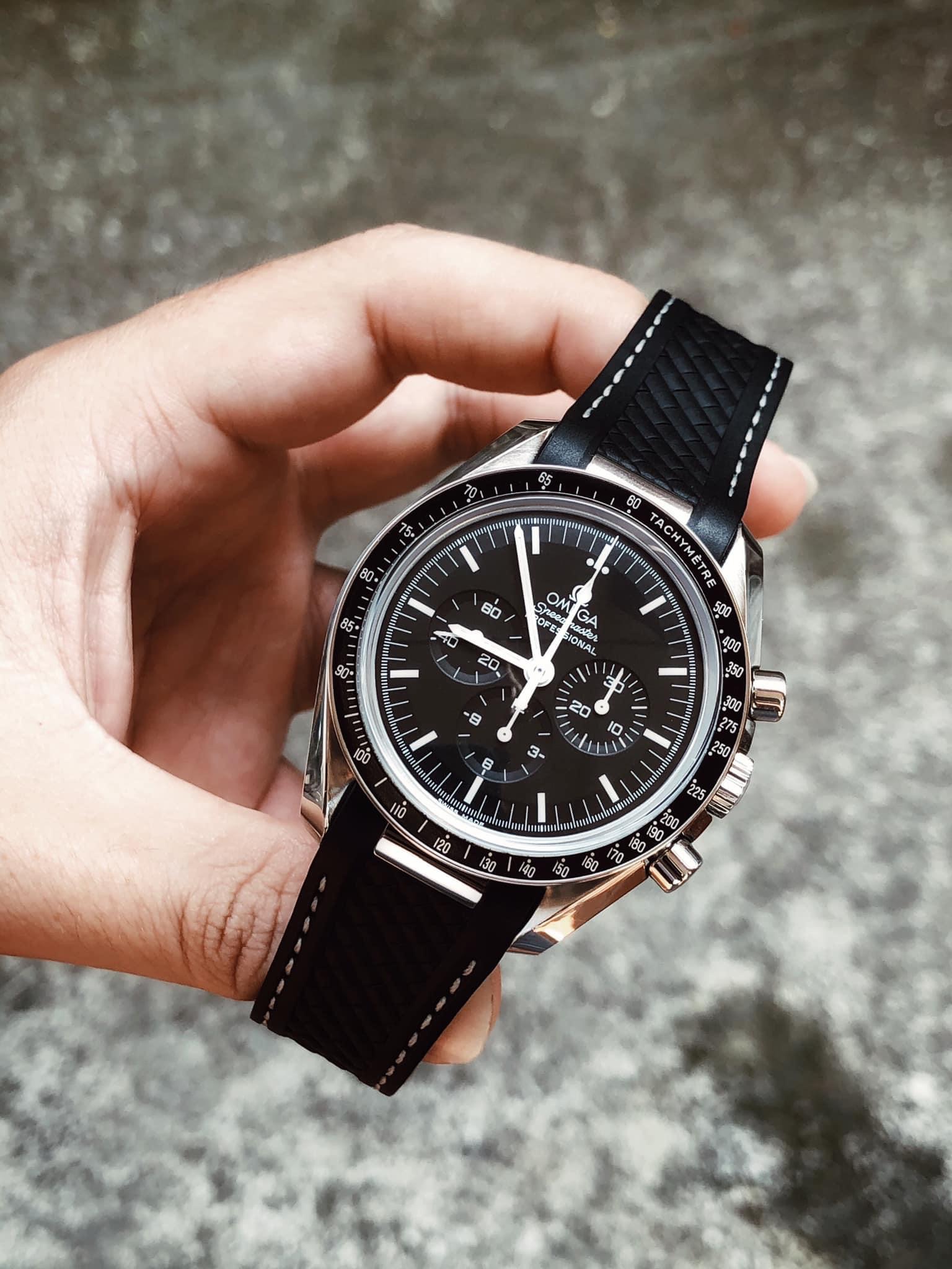 It’s the first time I’ve seen anyone fit the AT rubber strap to a Speedy Pro.