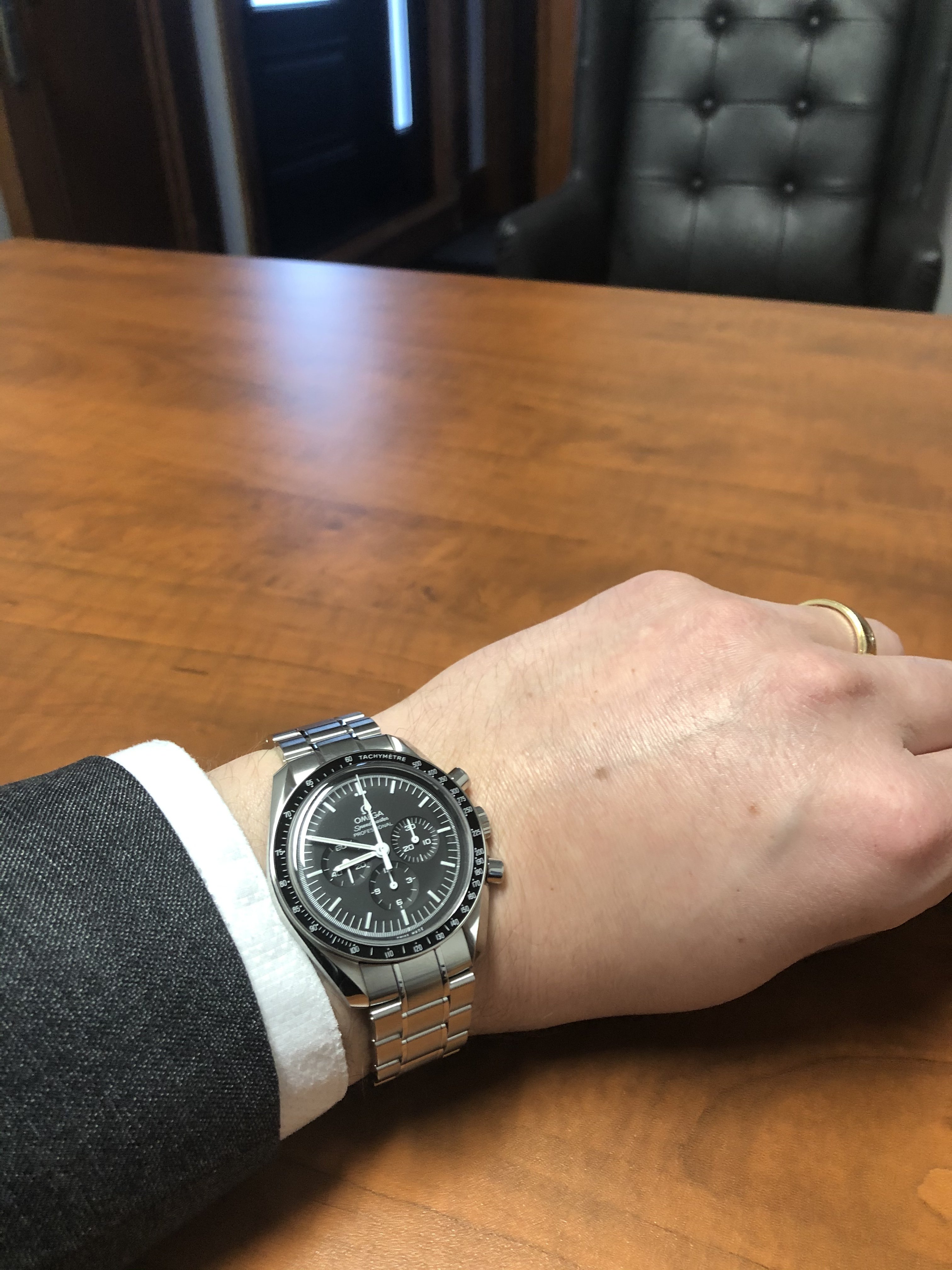 Posts 66 Likes 256 split-time ·Mar 26, 2021 NorthLaw First time getting a full day’s wear out of my moonwatch, which I received yesterday. Couldn’t ask for a better watch to go with my grey suits. Here's to the first of many, many days to come!
