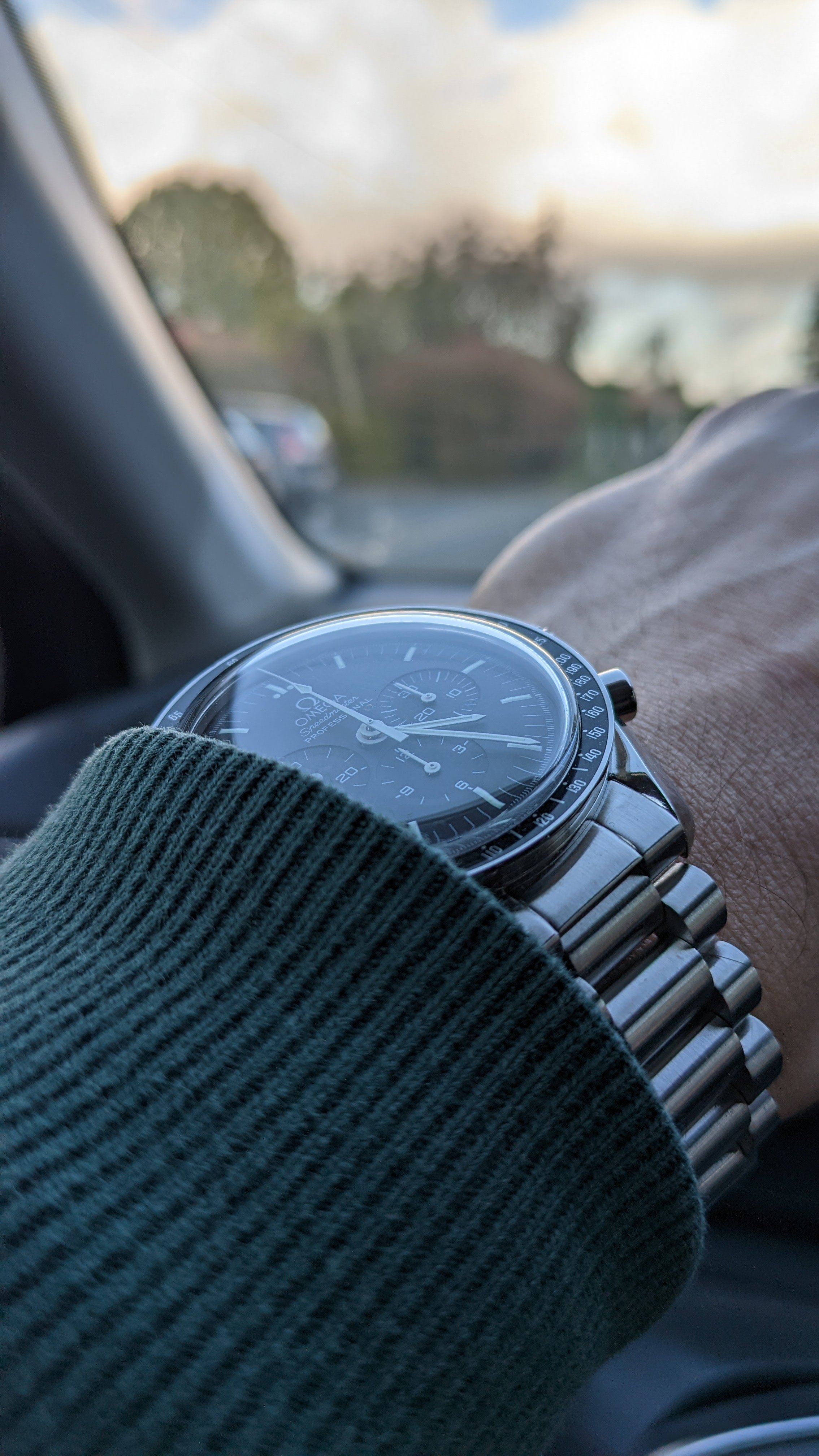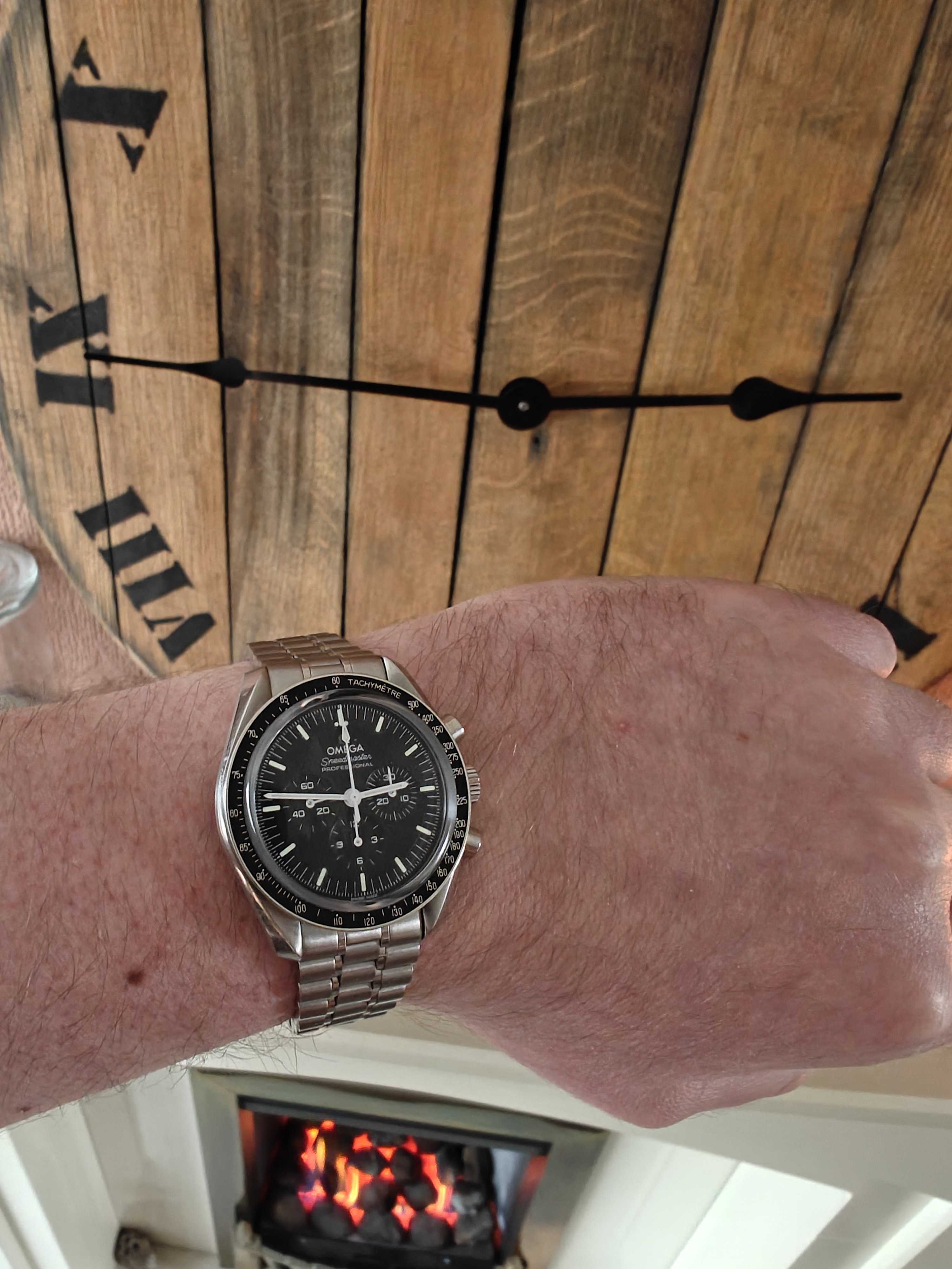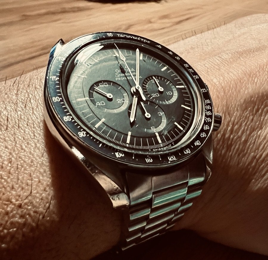 R Posts 1 Likes 3 Rapier84 路Jan 30, 2024 Got my first (hopefully not last) Speedy Pro (1861, Haselite) Was worried about the fit on my wrist but the Moonswatch helped 馃榾