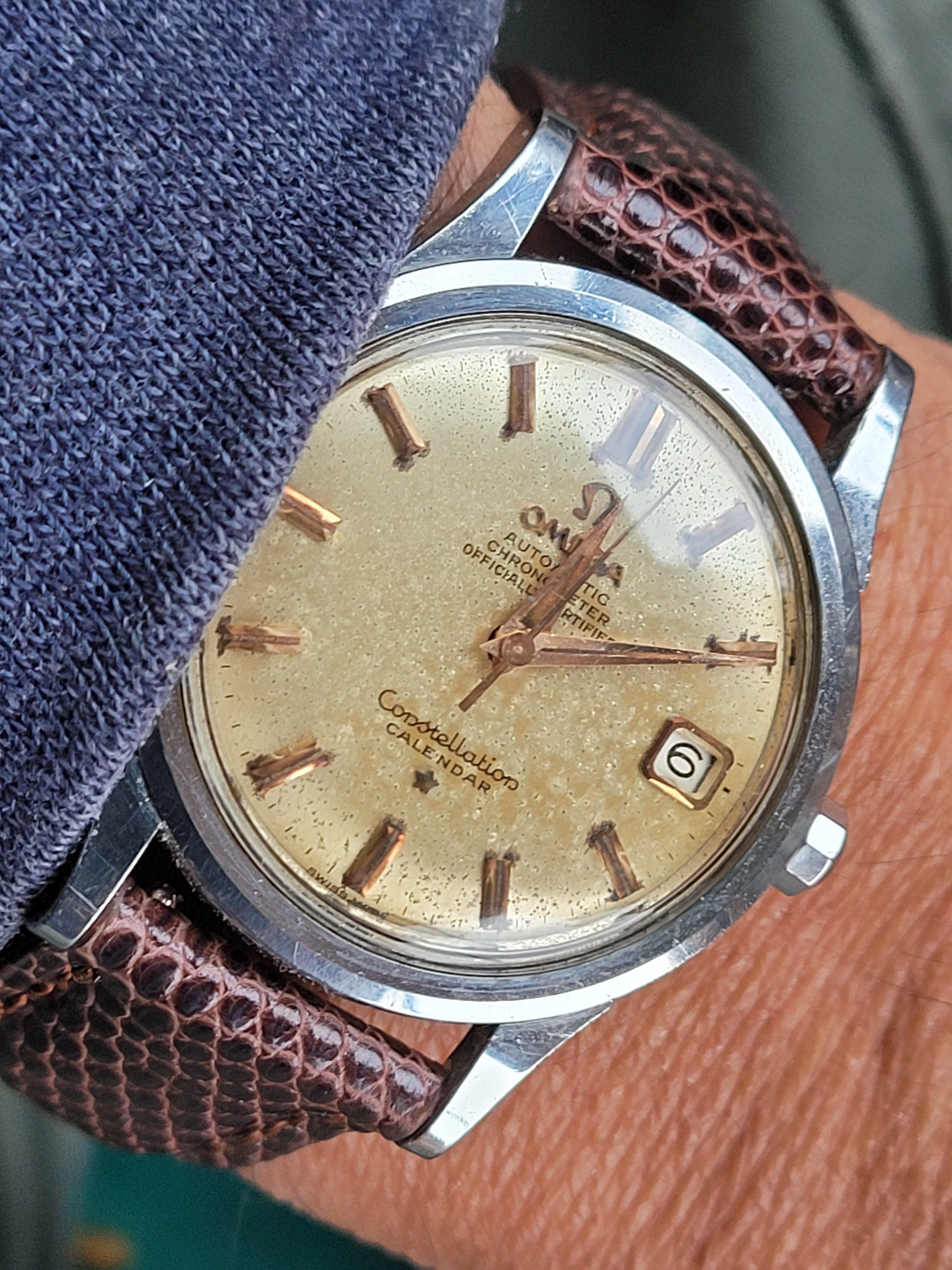 Posts 57 Likes 373 Realtime ·Oct 29, 2021 New to me, 1959 Constellation with original crosshair dial and stunning gold indexes, hands and Arabic numbers.