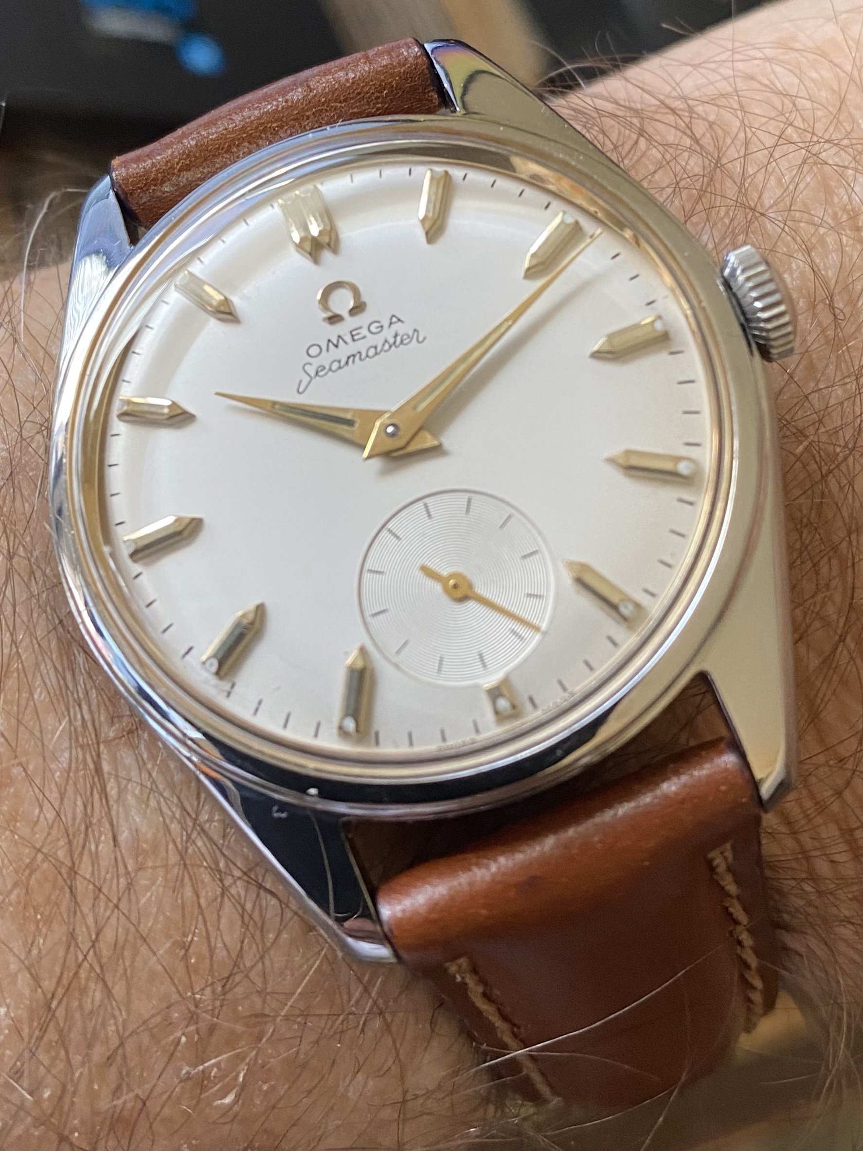 So this may sound obscure, but I think the watches in my collection that have stainless-steel cases and gold-toned markers are my favorite. I think the gold color just pops more on a steel background than matching steel hardware…