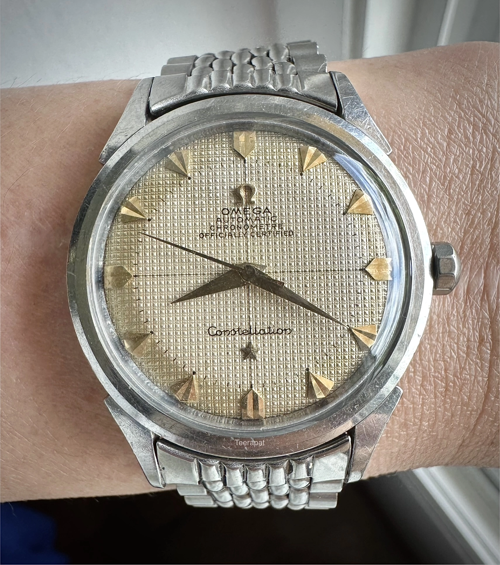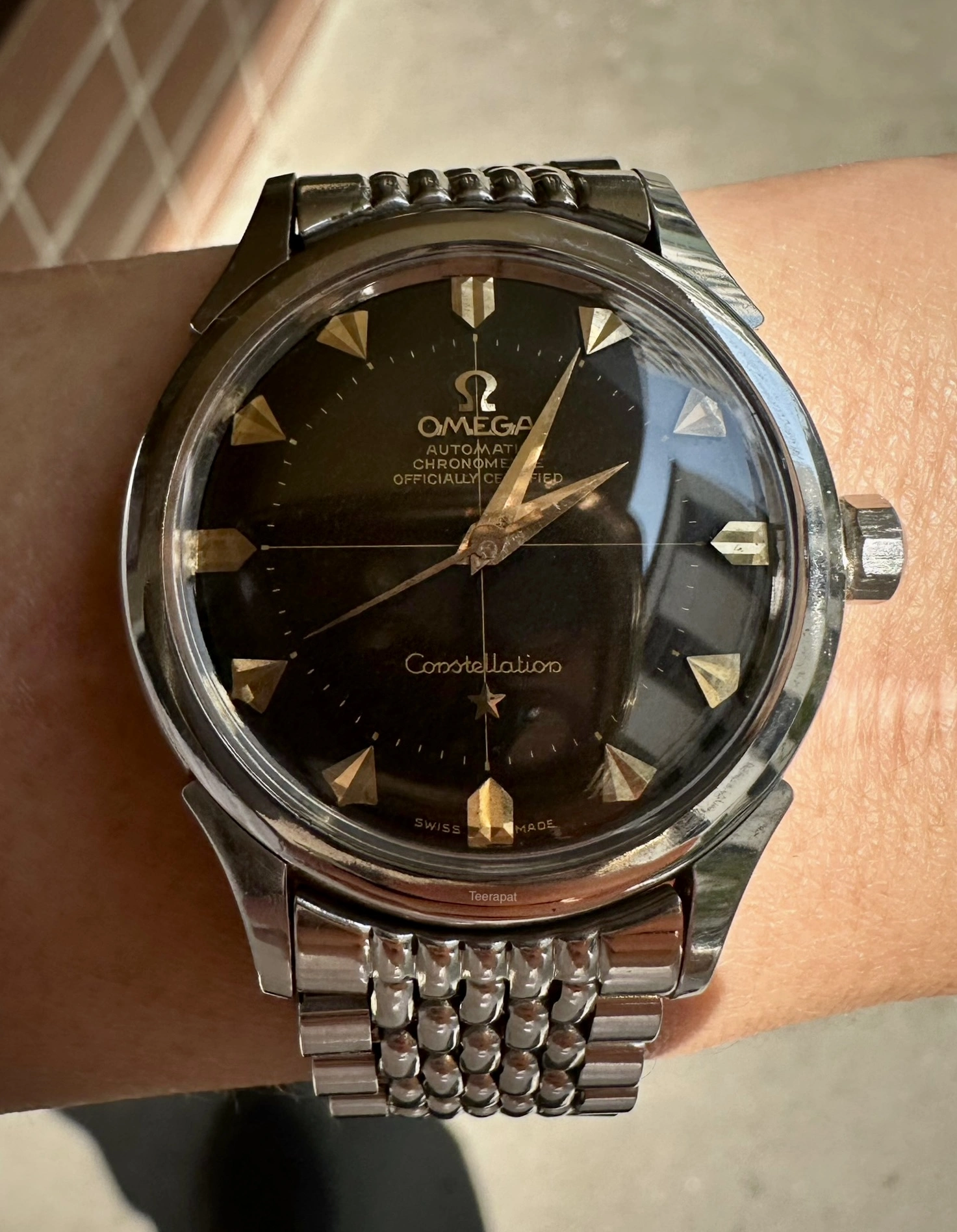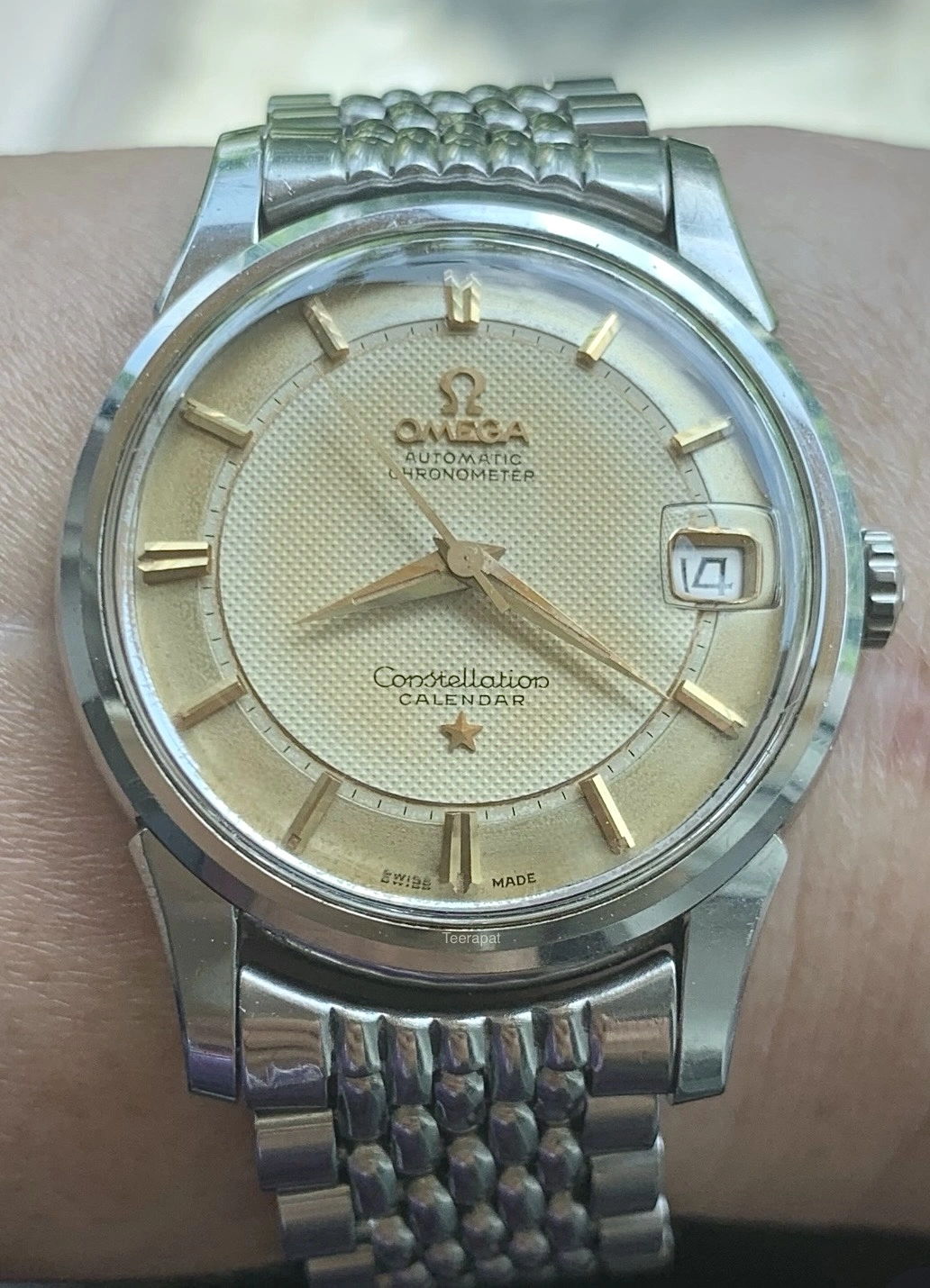 Posts 3,018 Likes 6,435 SOG53 ·Mar 20, 2025 14381 Constellation SS case ✅ 2 tone crosshair champagne dial ✅ Gold furniture ✅ Thin scalloped crown ✅ Cal 551 1959 ✅