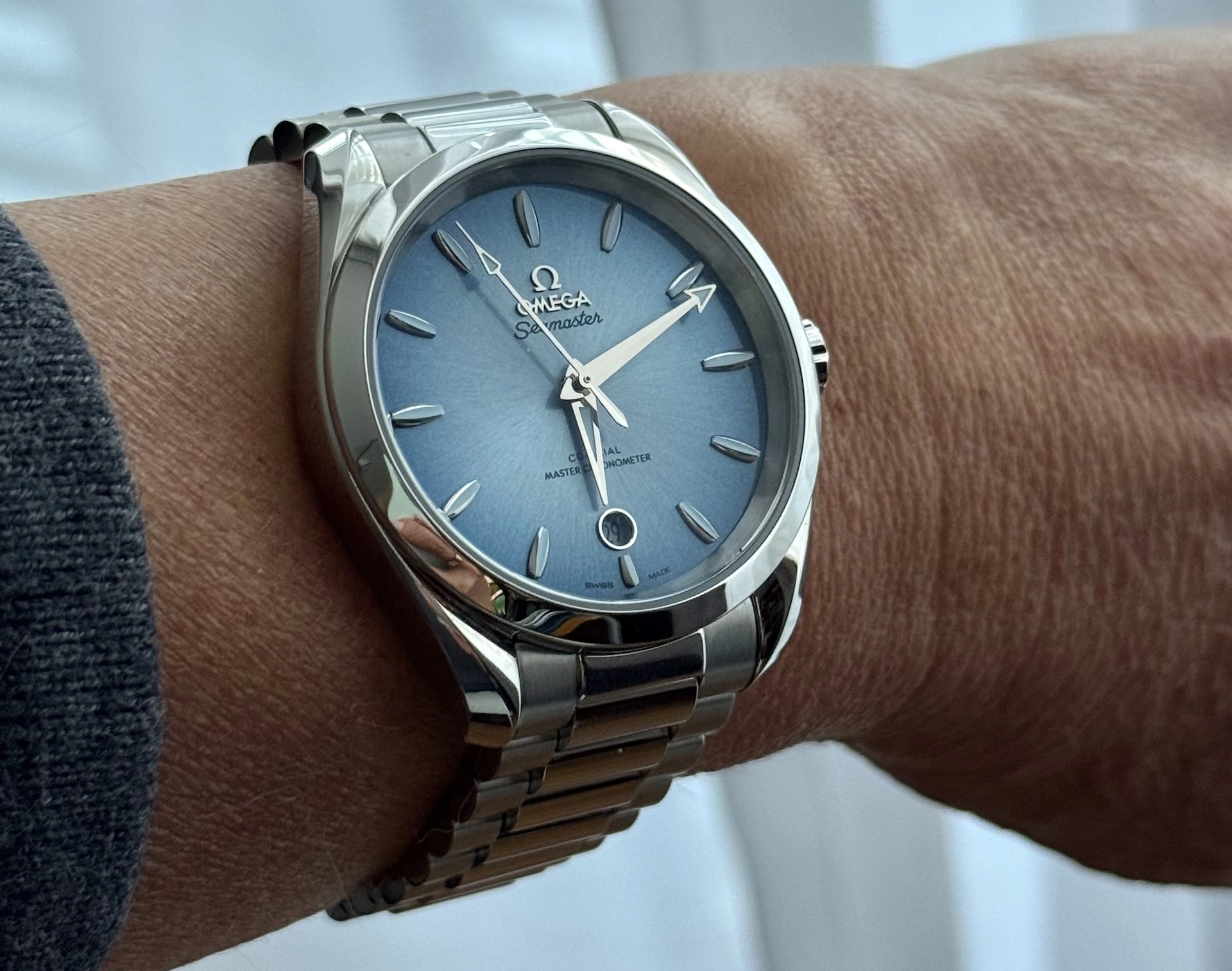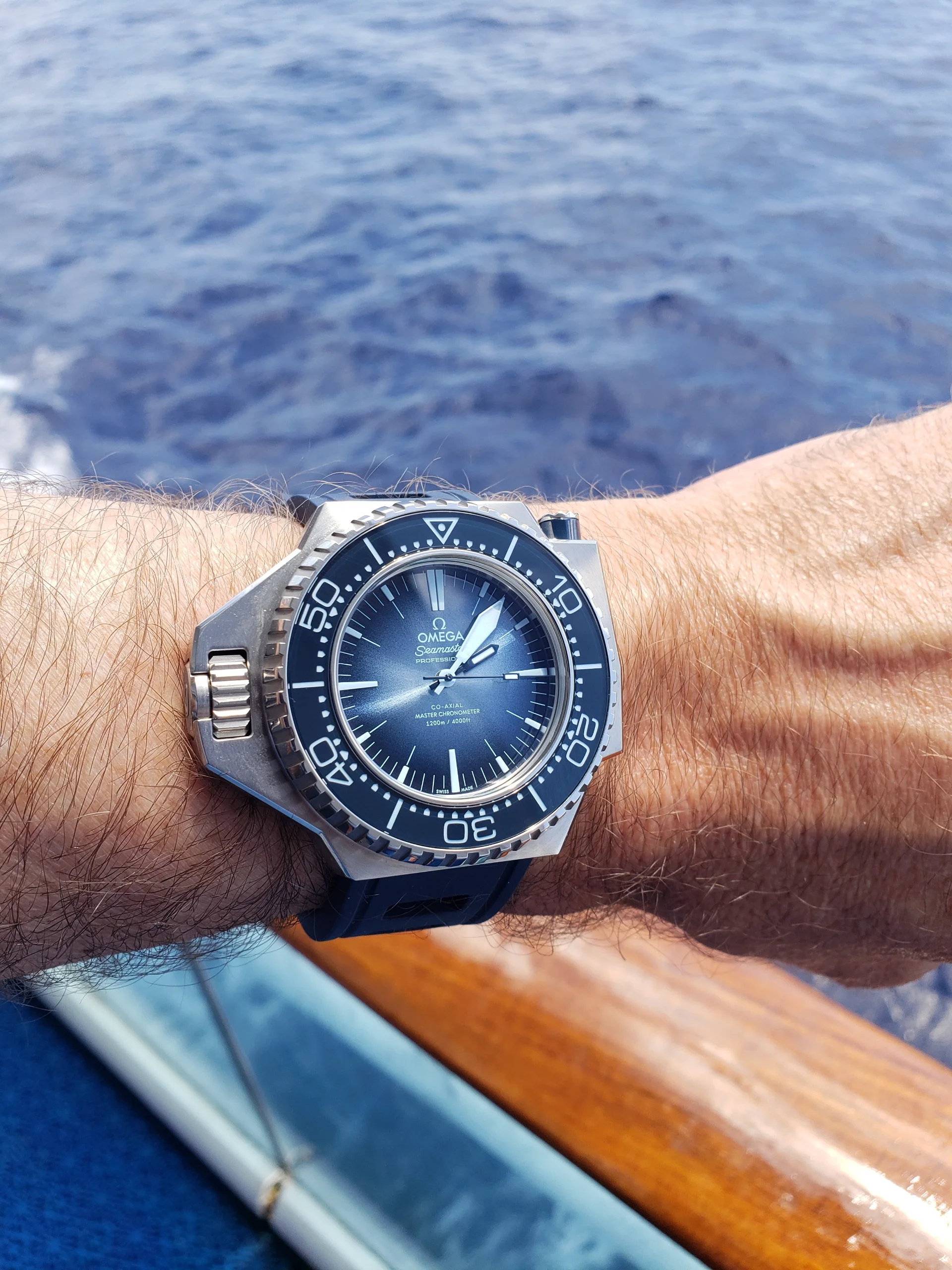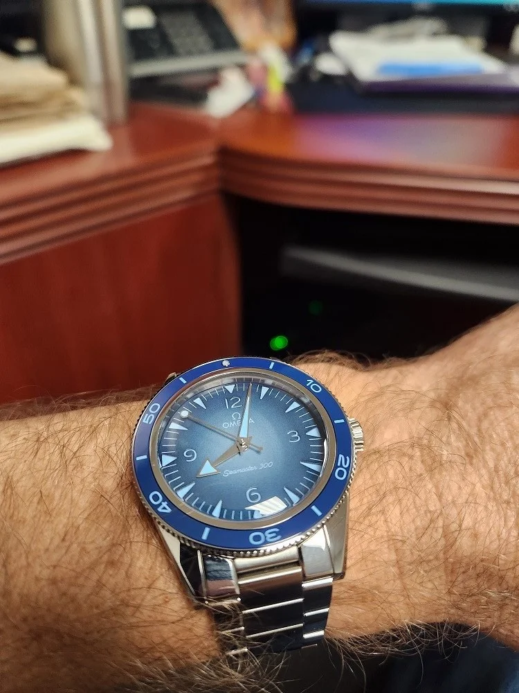 Needless to say... I'm smitten. I've always been partial to Omega (my mother used to have one). This year, I had planned at some point to get a Seamaster. My partner just nailed it with the AT SB. The dial color is simply amazing, the way it changes depending on the light and the angle. I could take 1000 pictures, and every time the blue would look different.