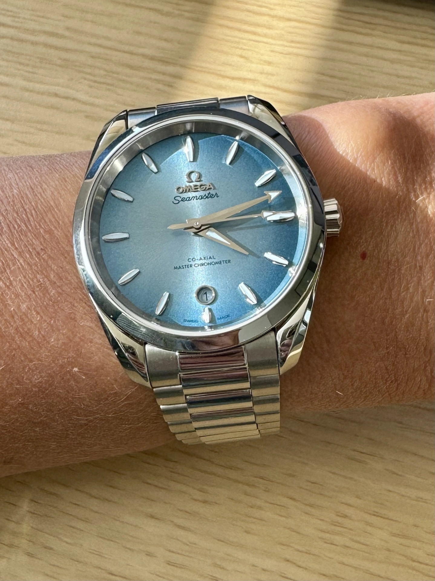 Hello everyone. This is my first post on this forum. I'm a very, very happy new Omega owner, and this is my brand-new Aqua Terra 38mm in Summer Blue, a wonderful gift from my partner for my 60th birthday a few days ago.