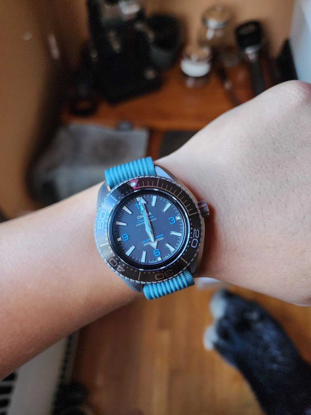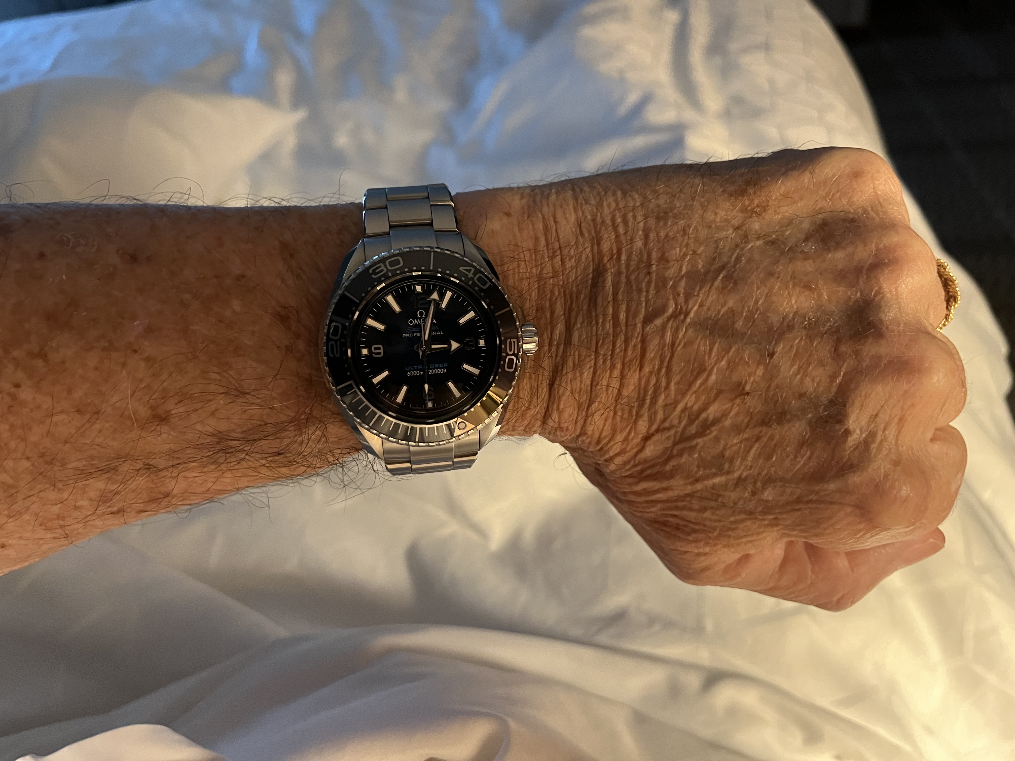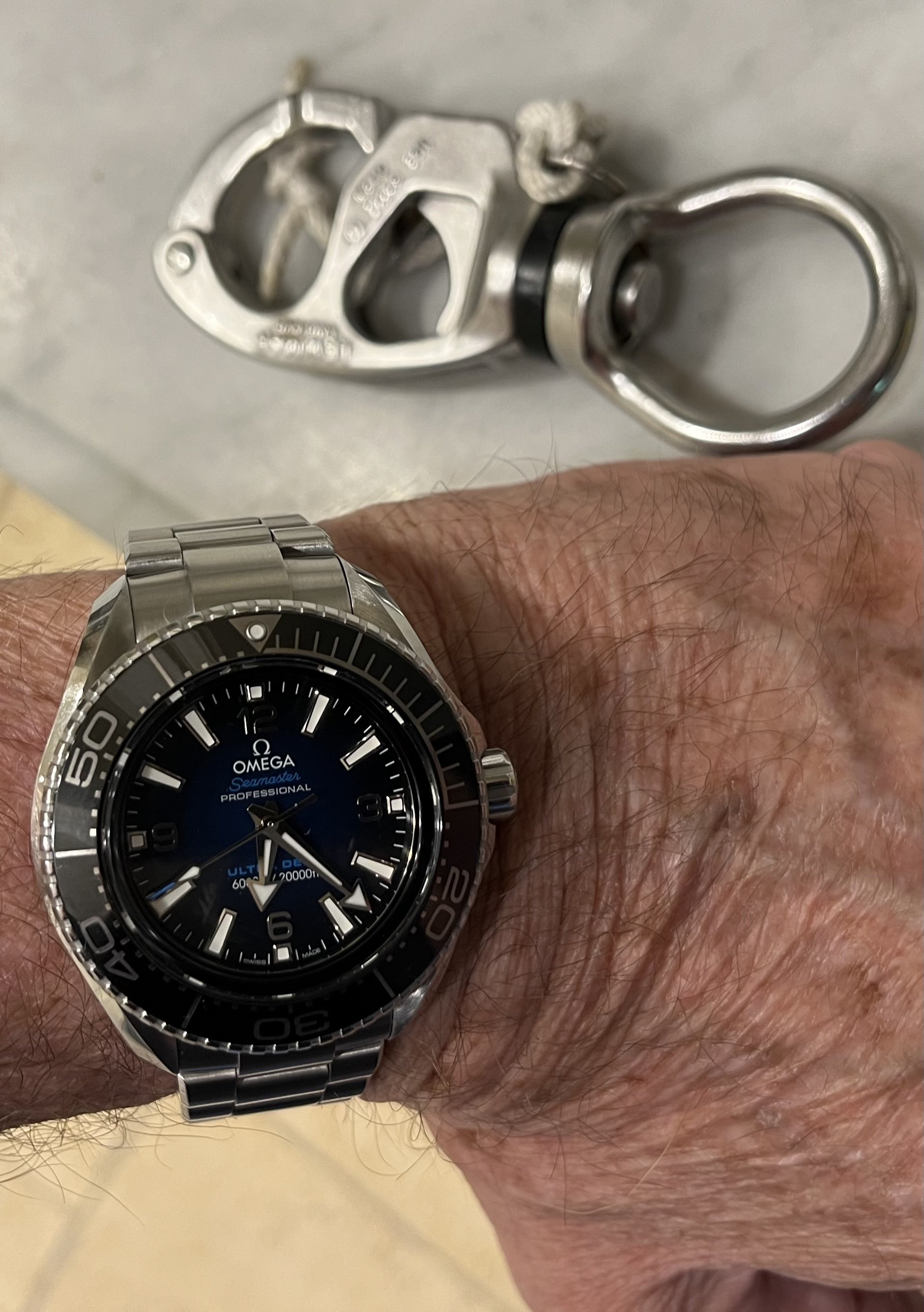 The size and feel is lighter and smaller than the PloProf. The Planet Ocean wears a little smaller and lighter but has a a larger and easier to read dial. All three have the advantage of adjustable by the user bracelet. This for me is a great advantage while traveling in different climates. I do love them all and always have a hard time deciding what to wear and when. The Ultra Deep is just a nice solid feeling watch to wear on a daily basis.