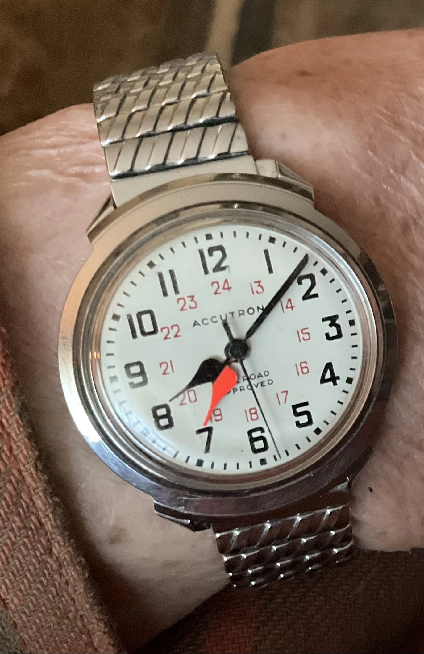 Railroad Monday on the Vintage Accutron thread? I’m for it! Considering the tuning fork Accutron hasn’t been made for close to 50 years, is there such a thing as an Accutron that isn’t vintage? You’ve likely seen this one before. My Accutron 214 model from 1967 (58 years old) with a Canadian 24-hour dial, and double hour hand. I have often wondered if the dual hour hand had ever created confusion, with the wearer reading the wrong hand!