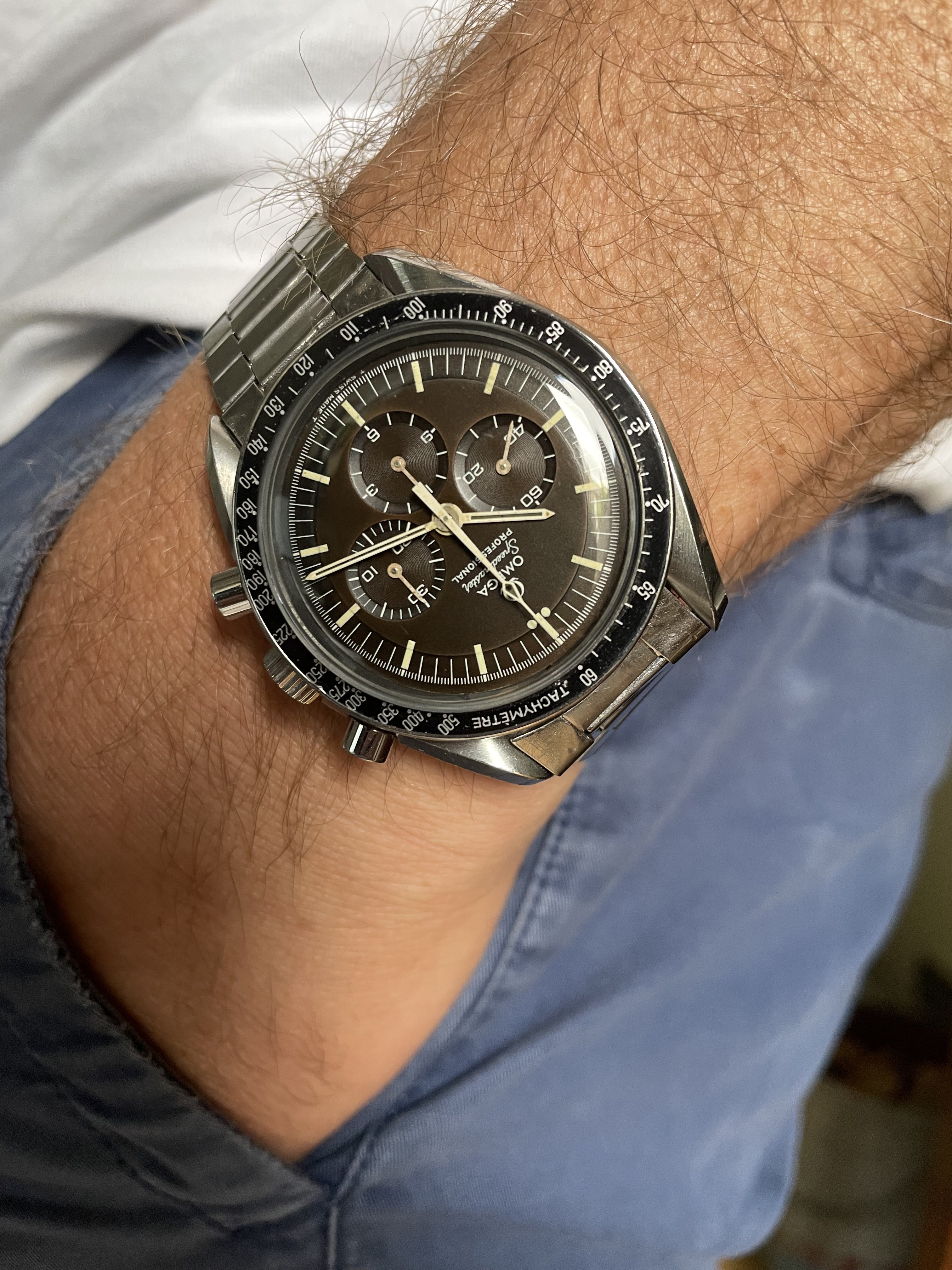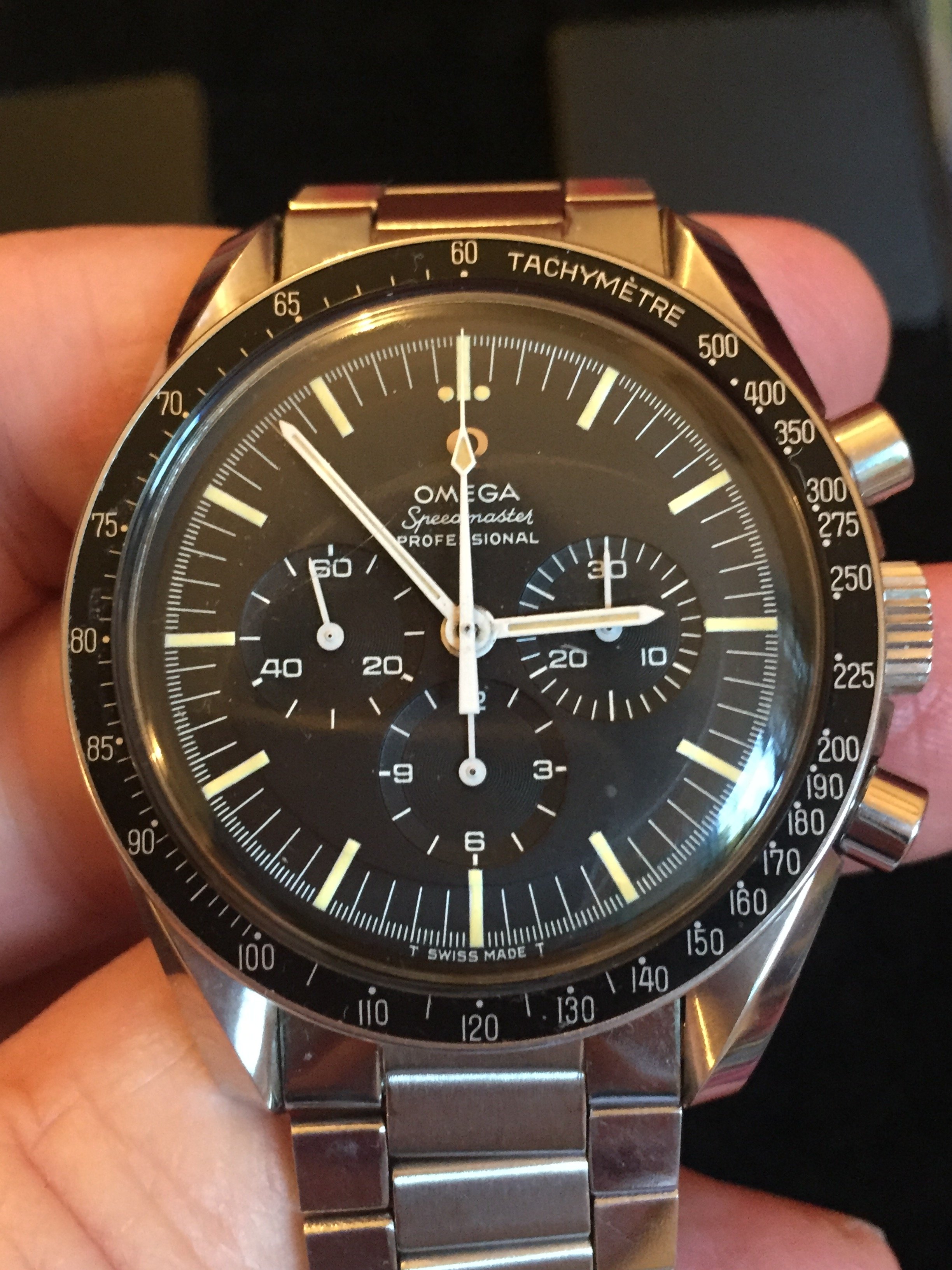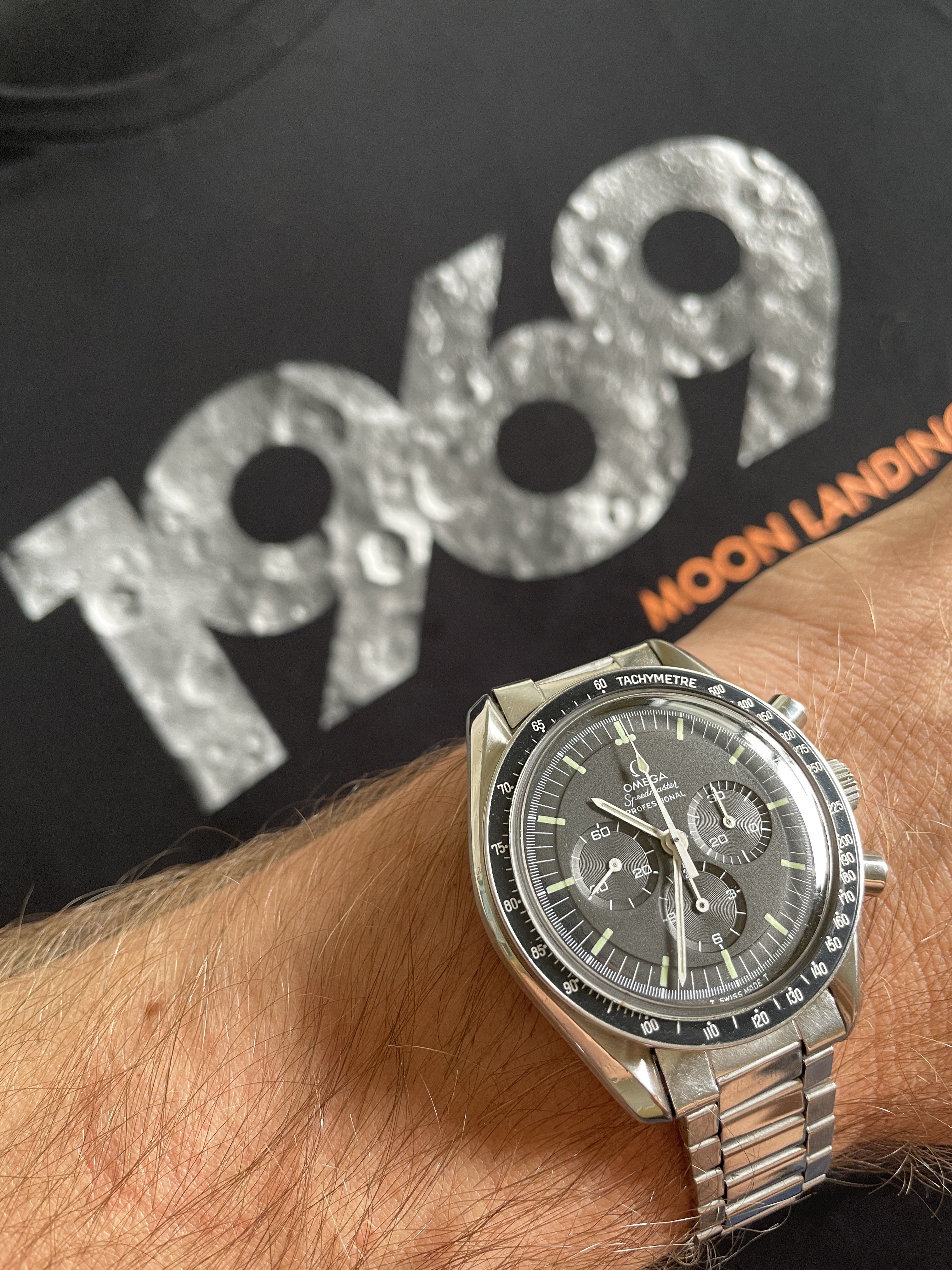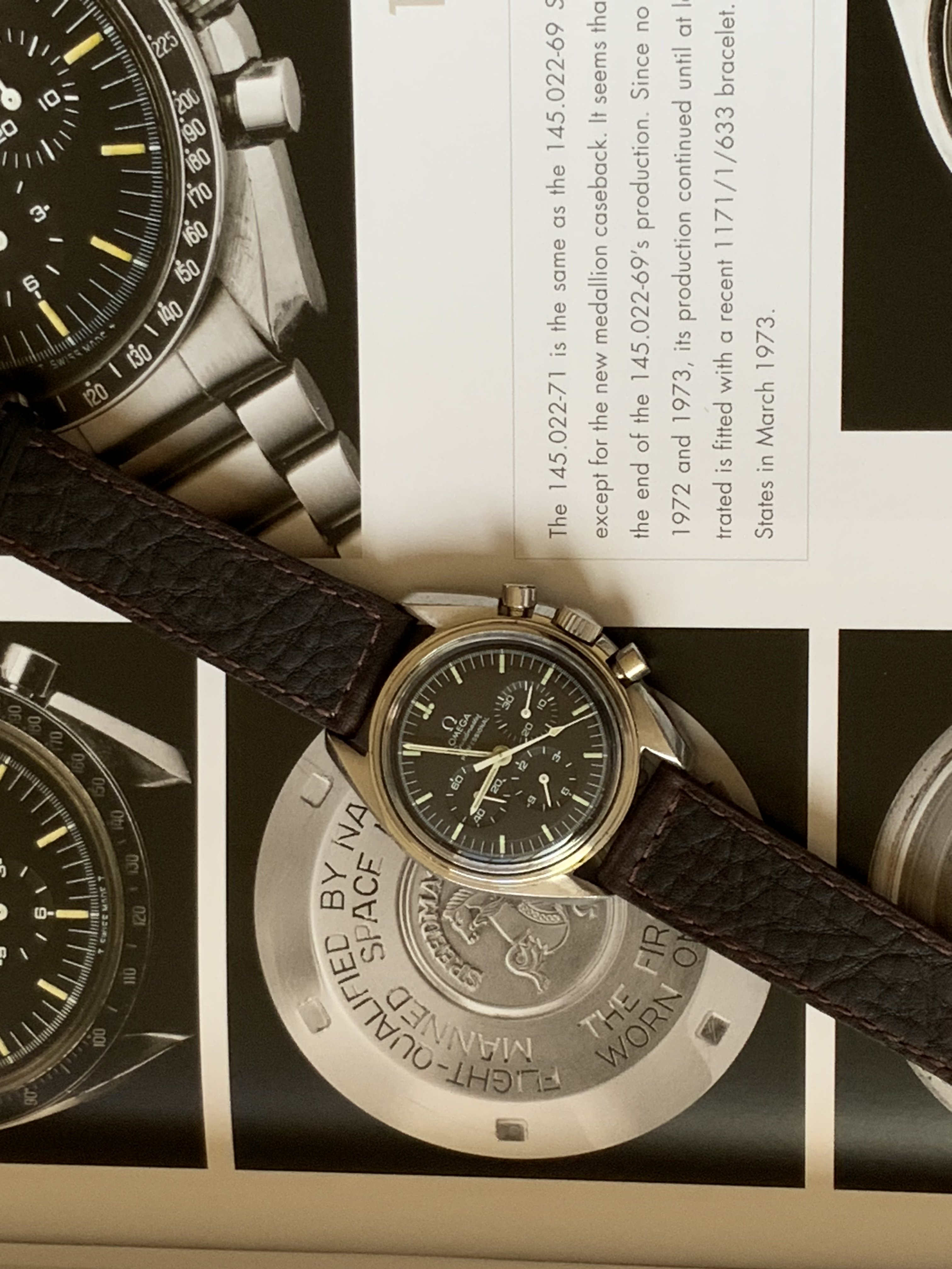 My contribution: 1971 145.022 on an 1175/640 bracelet. This is the last reference where we have the step dial (until 2021!) and the first reference with the “flight qualified by NASA ... the first watch worn on the moon” language AND the hippocampus medallion on the case back.