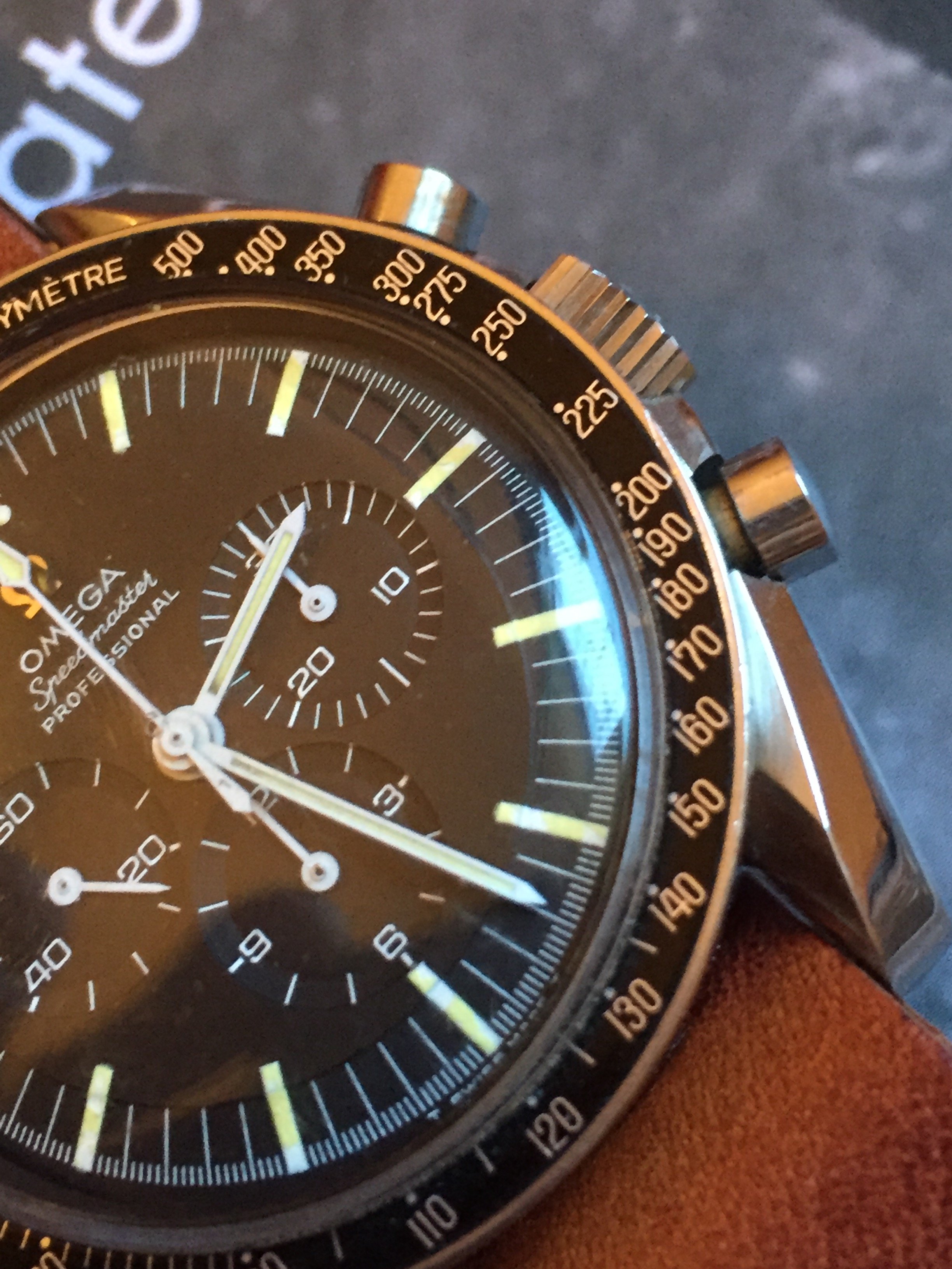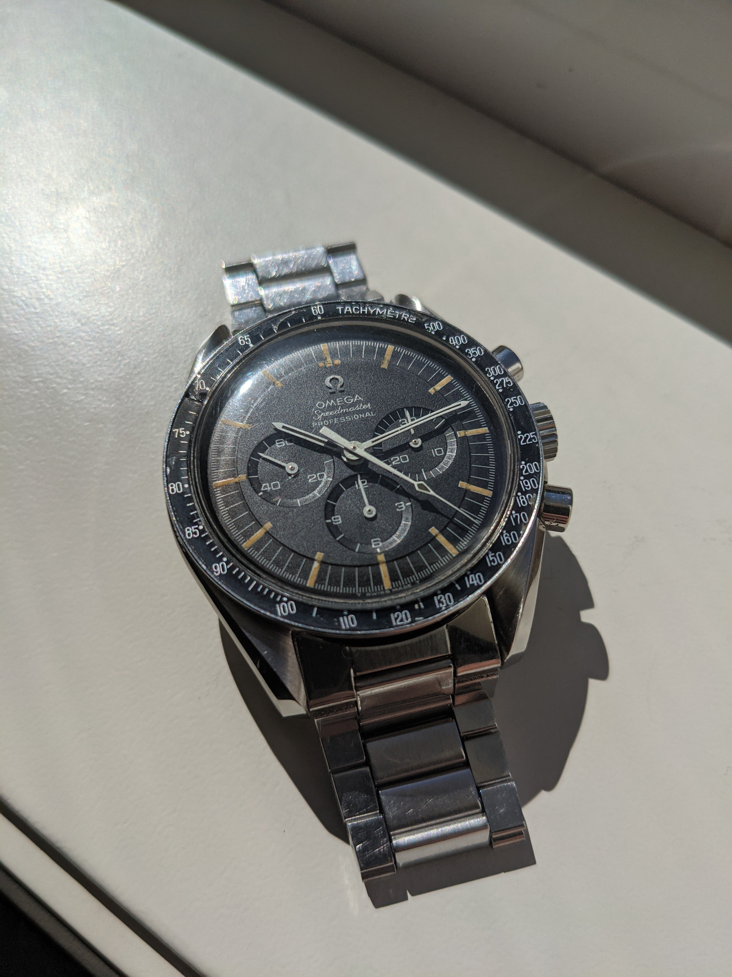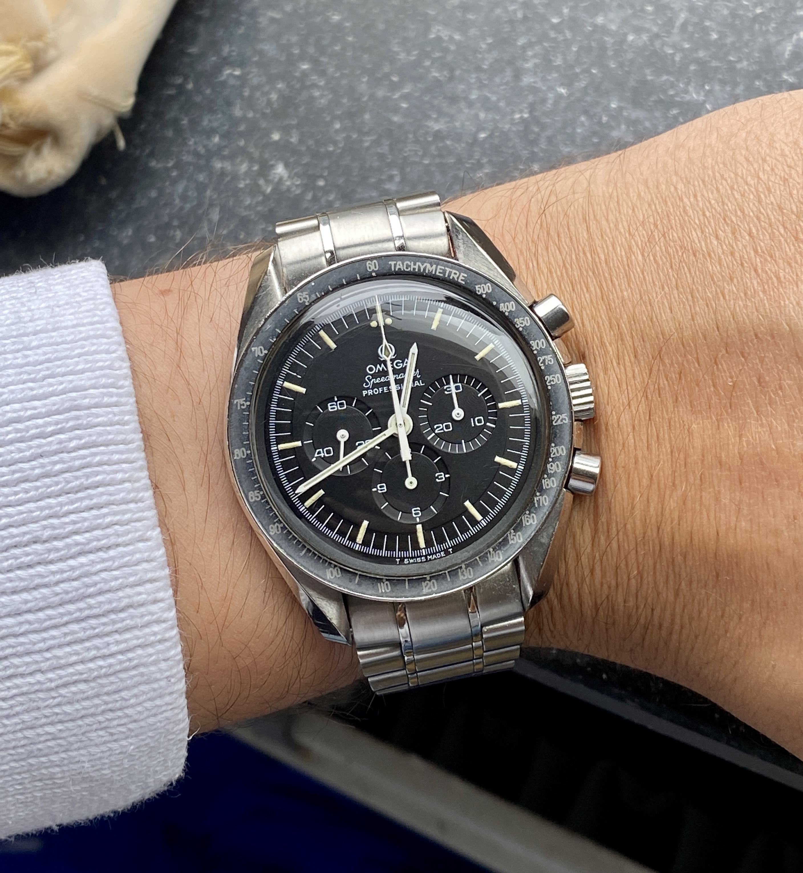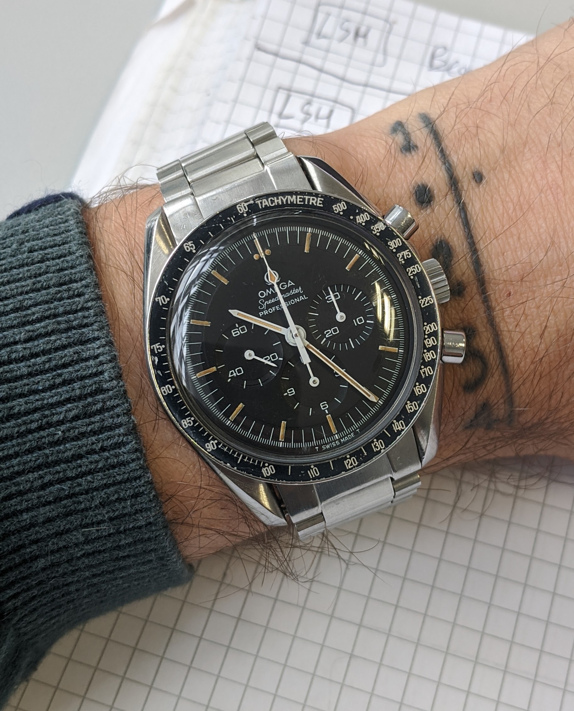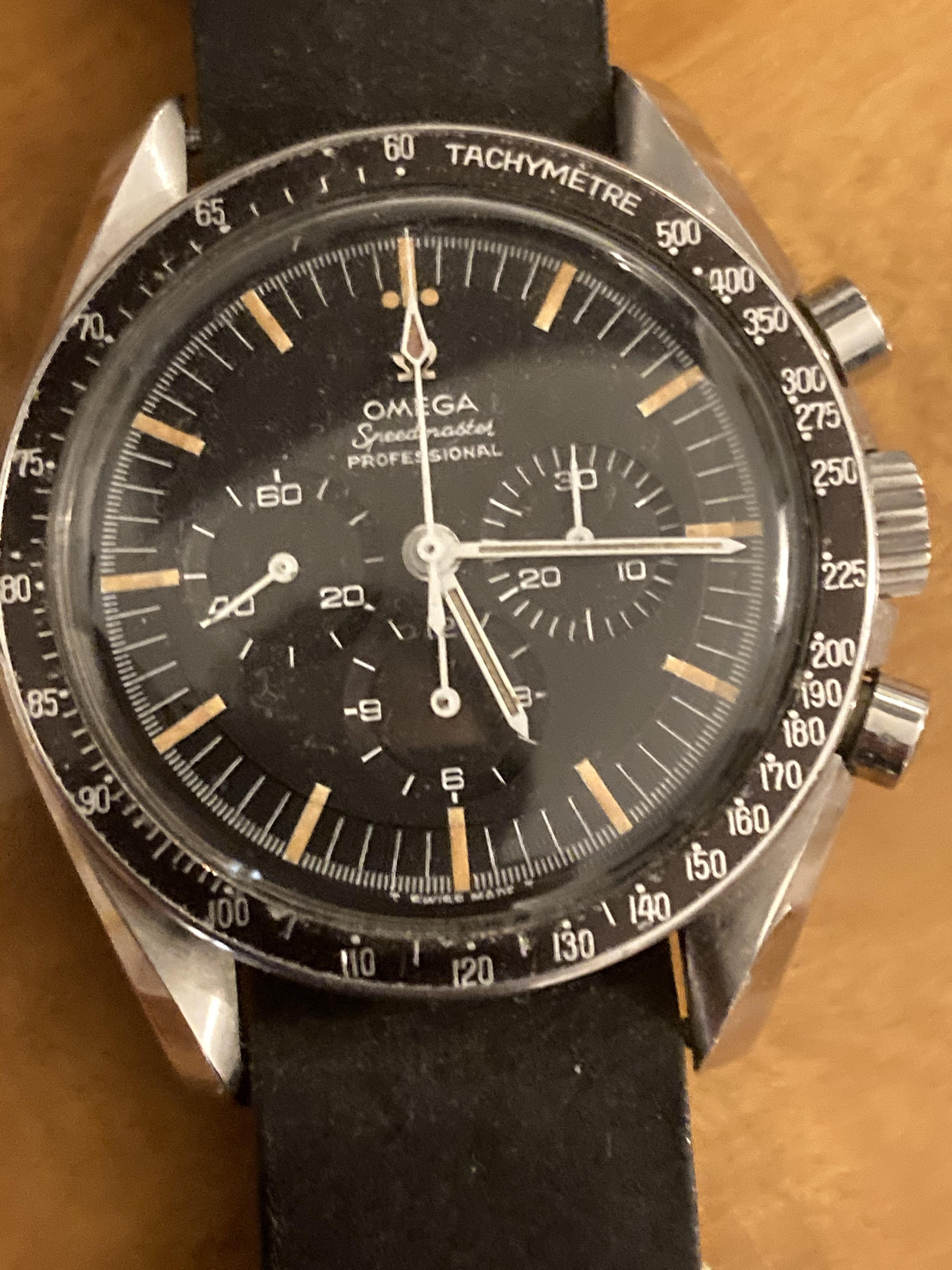 My contribution: 1971 145.022 on an 1175/640 bracelet. This is the last reference where we have the step dial (until 2021!) and the first reference with the “flight qualified by NASA ... the first watch worn on the moon” language AND the hippocampus medallion on the case back.