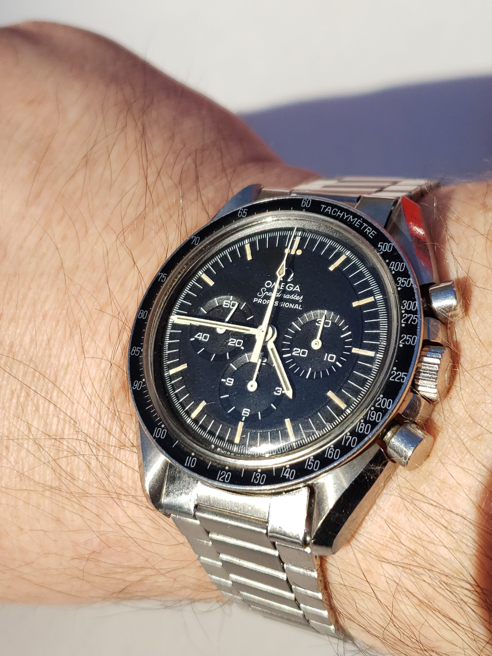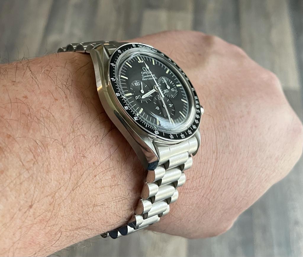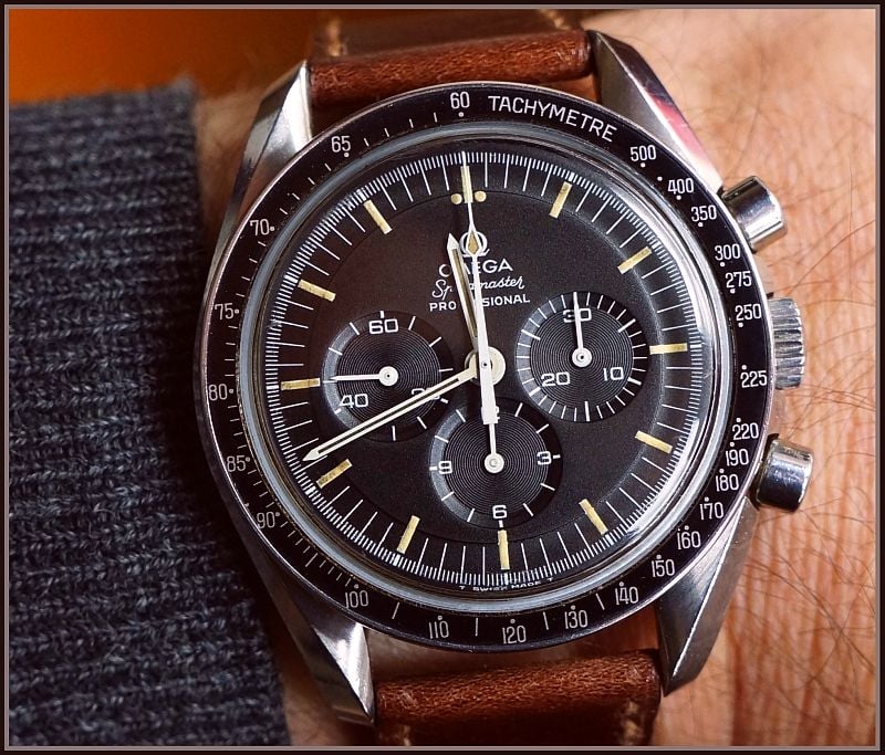My contribution: 1971 145.022 on an 1175/640 bracelet. This is the last reference where we have the step dial (until 2021!) and the first reference with the “flight qualified by NASA ... the first watch worn on the moon” language AND the hippocampus medallion on the case back.