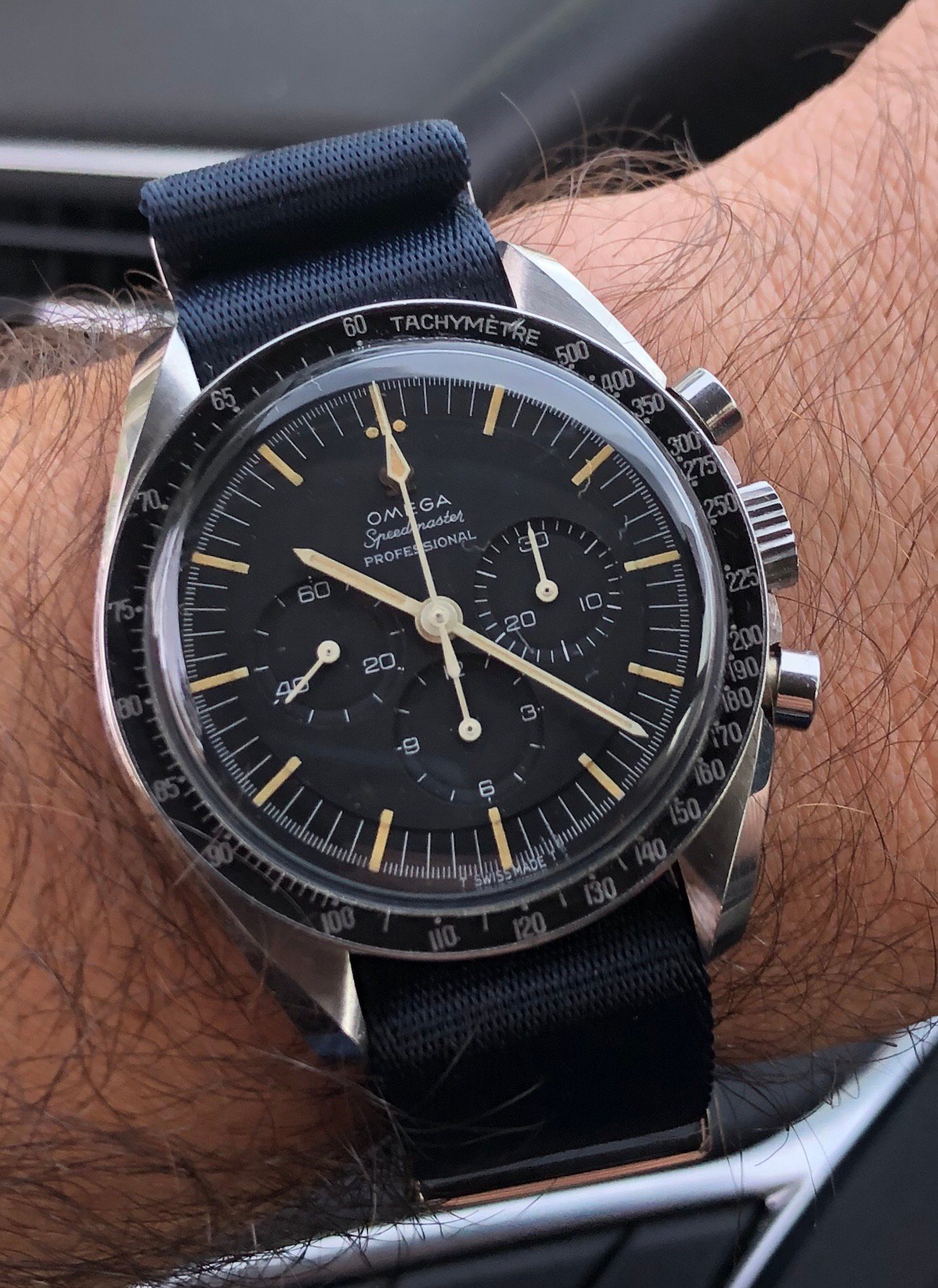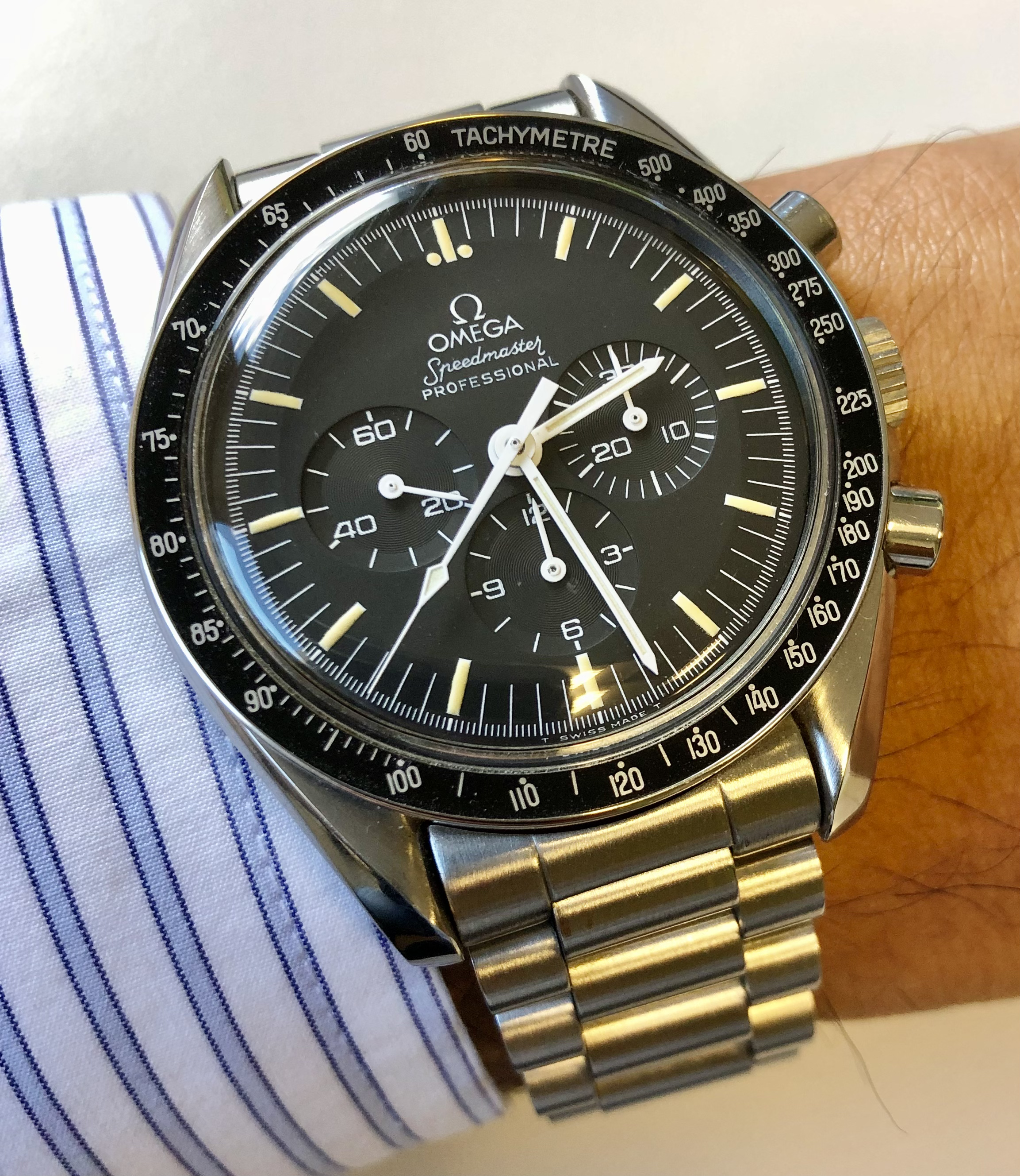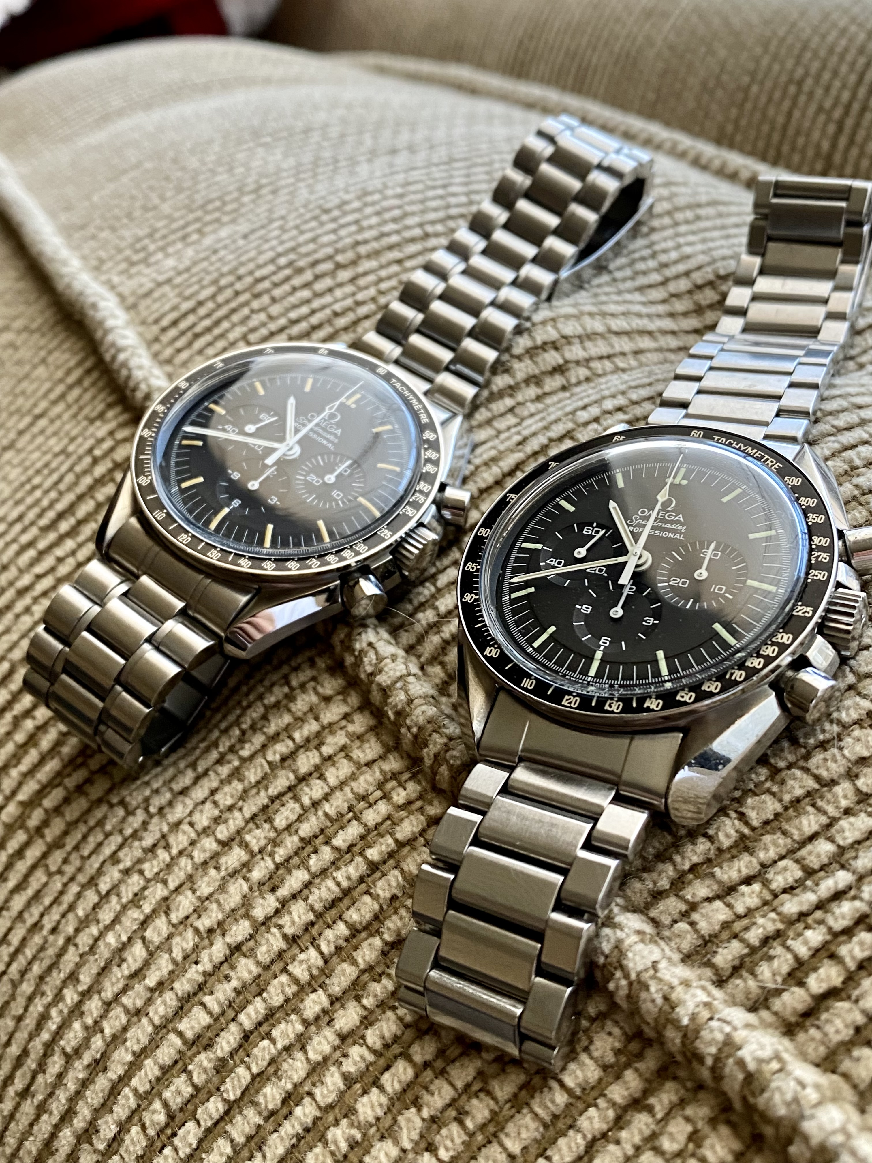 My contribution: 1971 145.022 on an 1175/640 bracelet. This is the last reference where we have the step dial (until 2021!) and the first reference with the “flight qualified by NASA ... the first watch worn on the moon” language AND the hippocampus medallion on the case back.