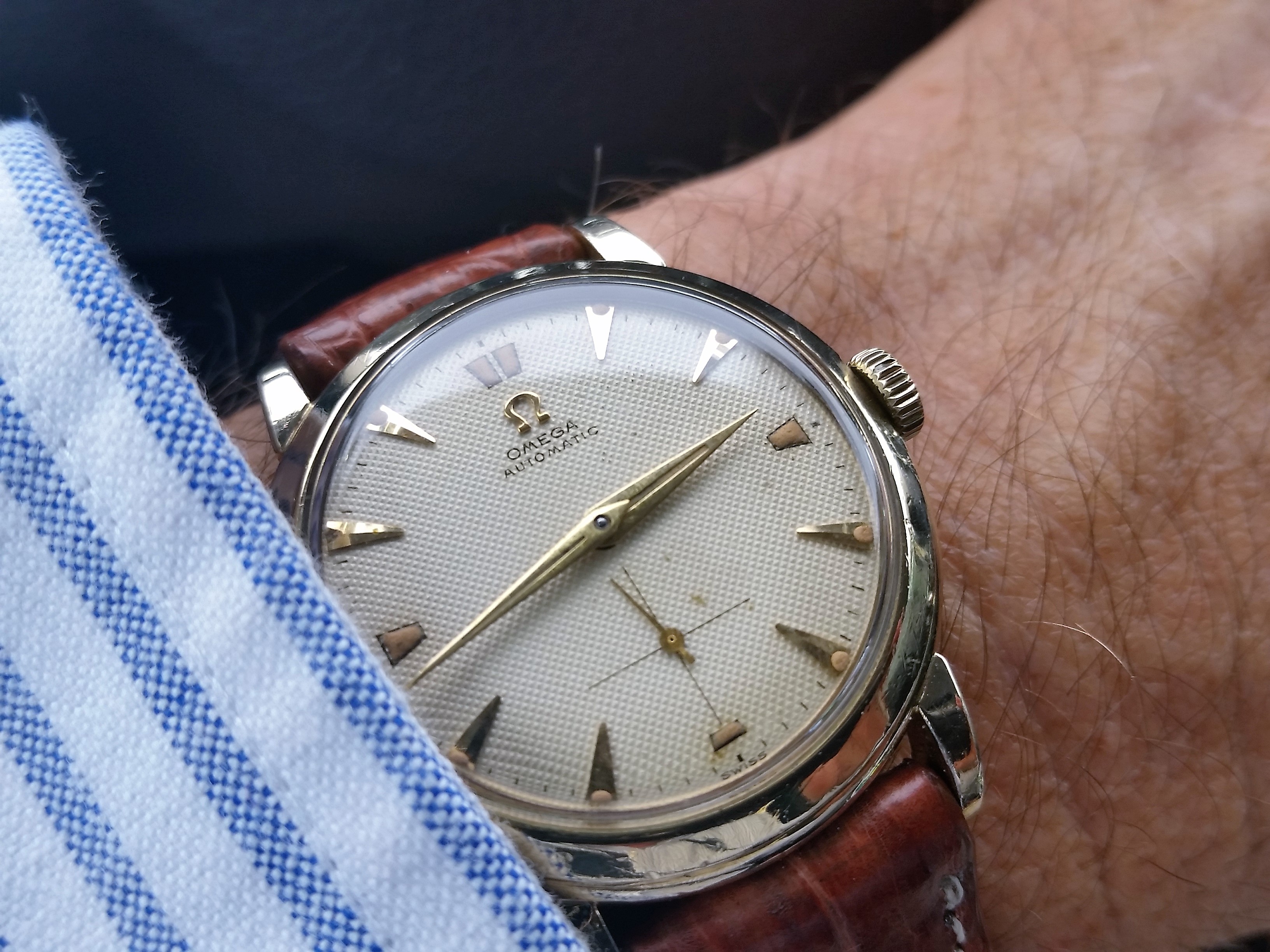 Posts 32 Likes 15 lilwine ·Jan 24, 2021 cristos71 I suggest you start a new enquiry thread. This one is for show and tell, not valuations. Posting does two things at once. First of all, show a textured Omega dial, and secondly, ask a decent question.