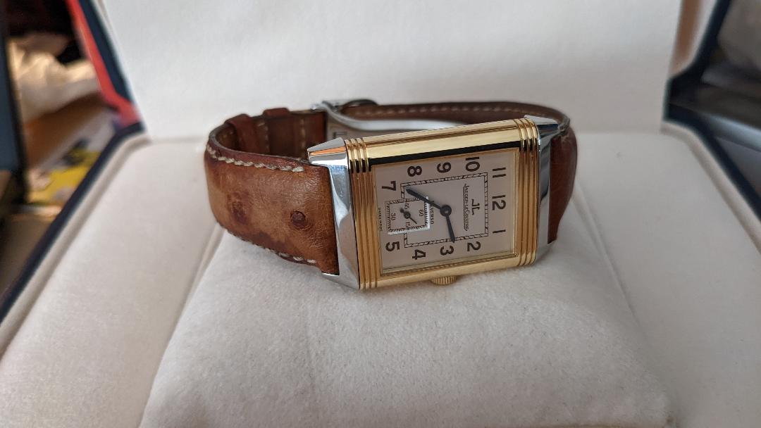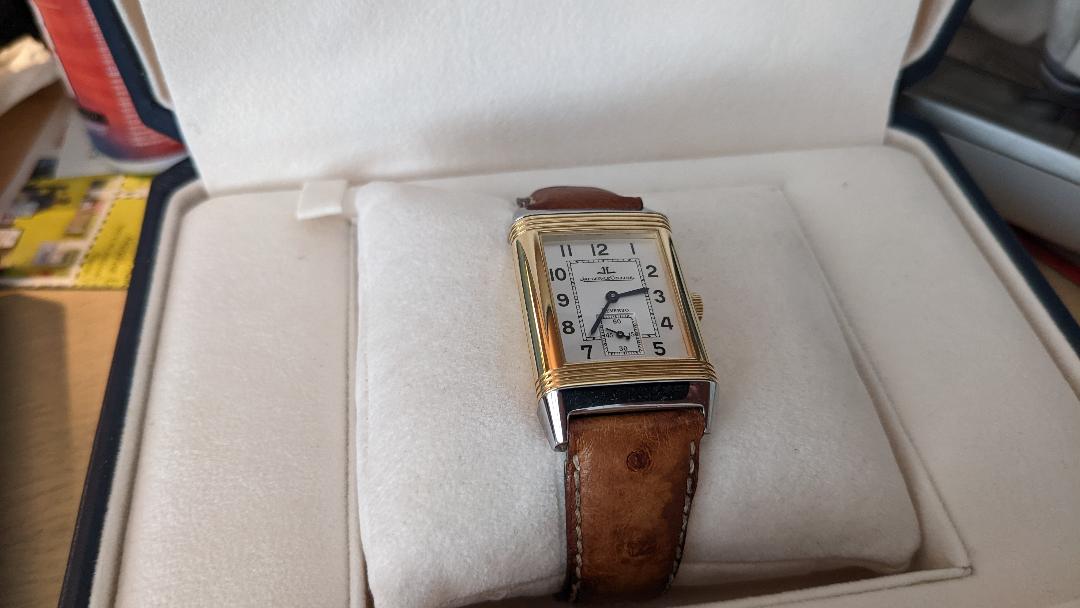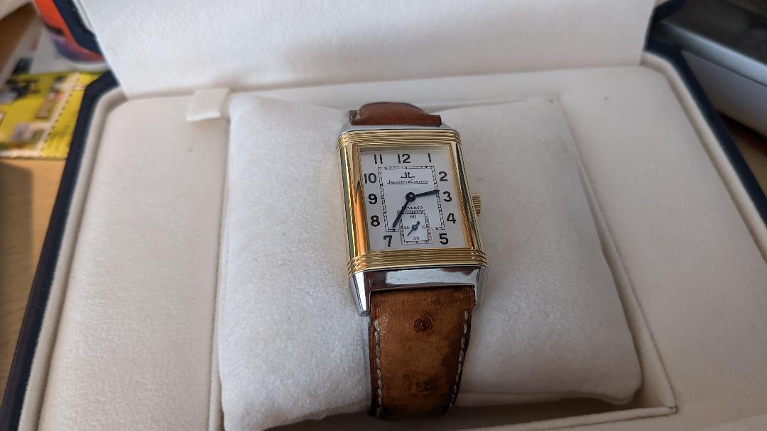 The Reverso has landed. I can only say that if you find yourself dealing with Burdeen's in Buffalo Grove, Il., you should expect to be very happy. First I opened the two outer cardboard boxes...and then I found this. I'll take it to JLC this week to try and pinpoint when it was first sold. Hope you enjoy the pictures.