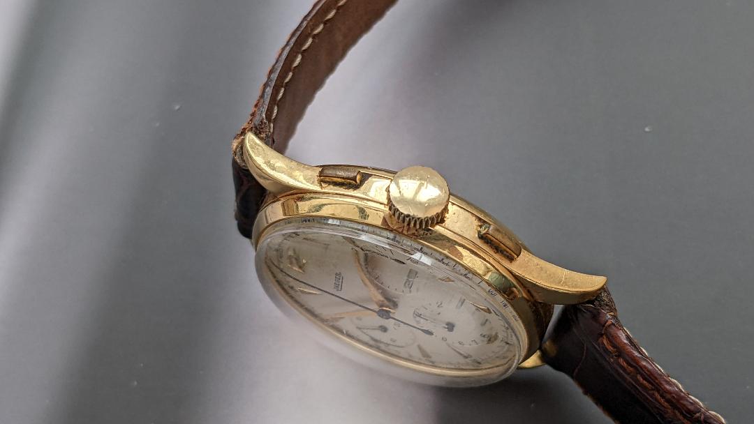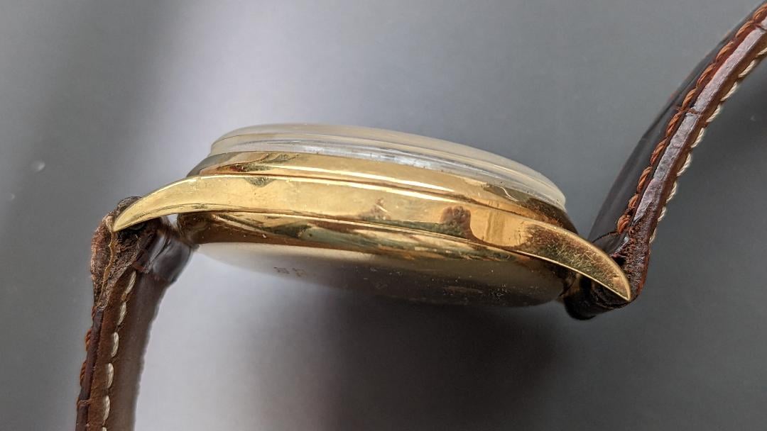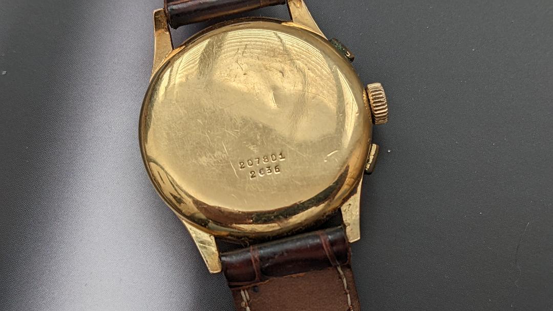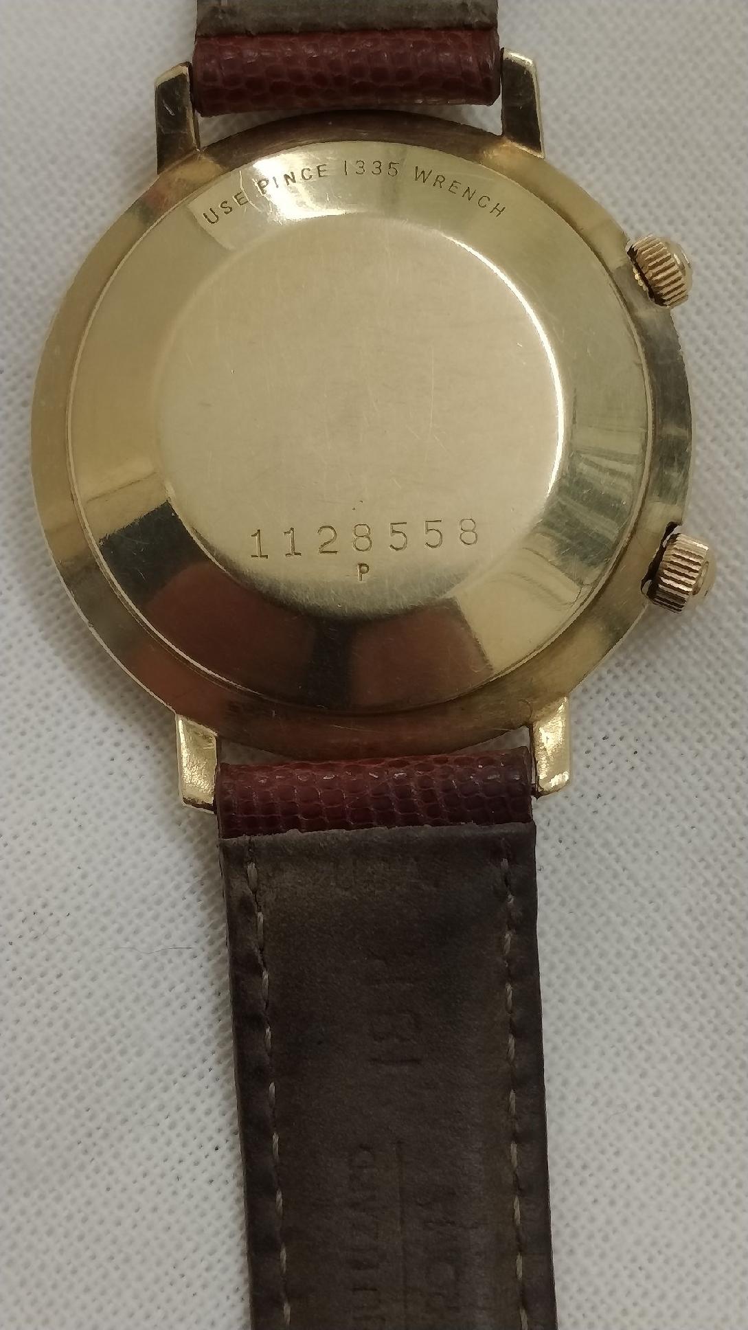 I have been offered this one. It appears to be an E 860 which has a big 38mm case. This is an uncommon model. The dial does not look mint but appears original. The case appears to be unpolished and is 10k GF. Difficult to get a movement shot as this is a front loader. Anyway, sorry for the poor pix. It is offered at $1K, should I snap it up?