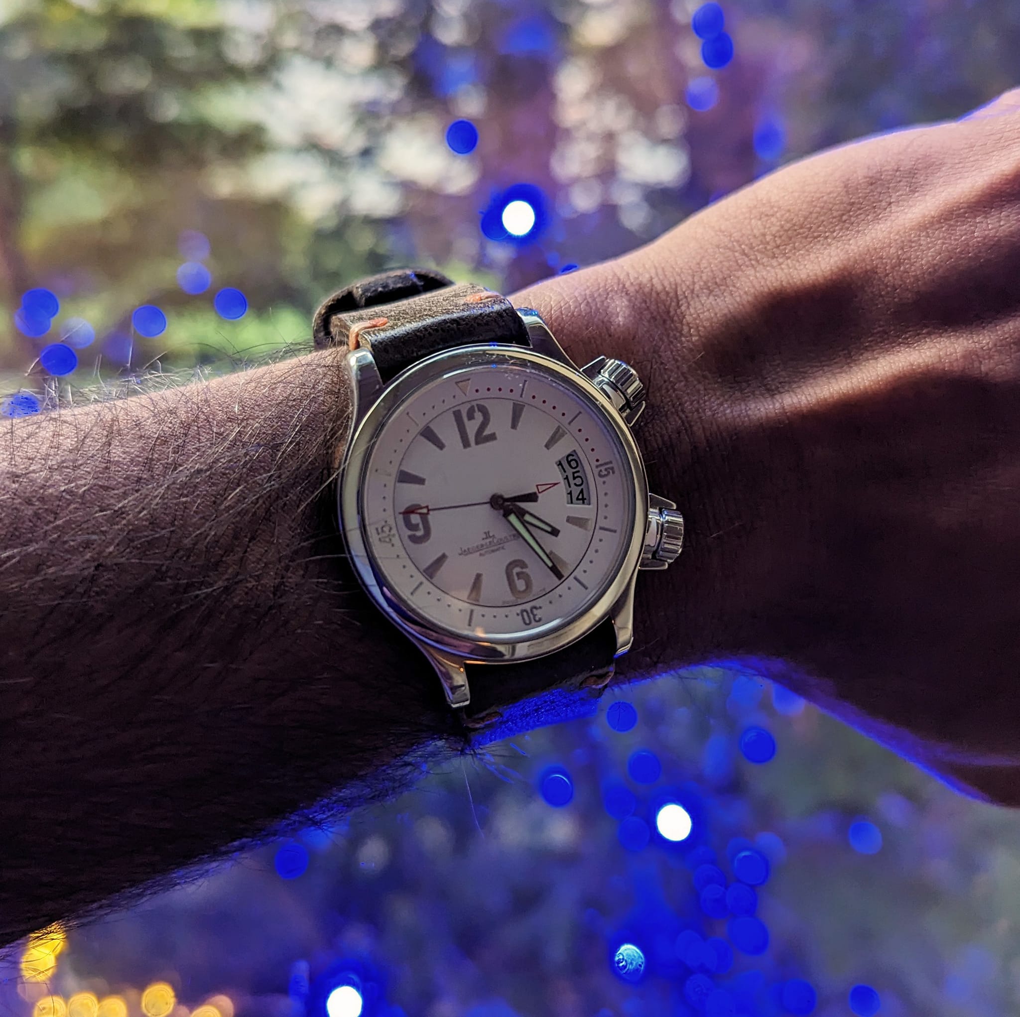 That one has quite the interesting crown? Does it say "LeC"? It certainly doesn't look like it starts with a "J". Regardless, the watch looks fantastic!