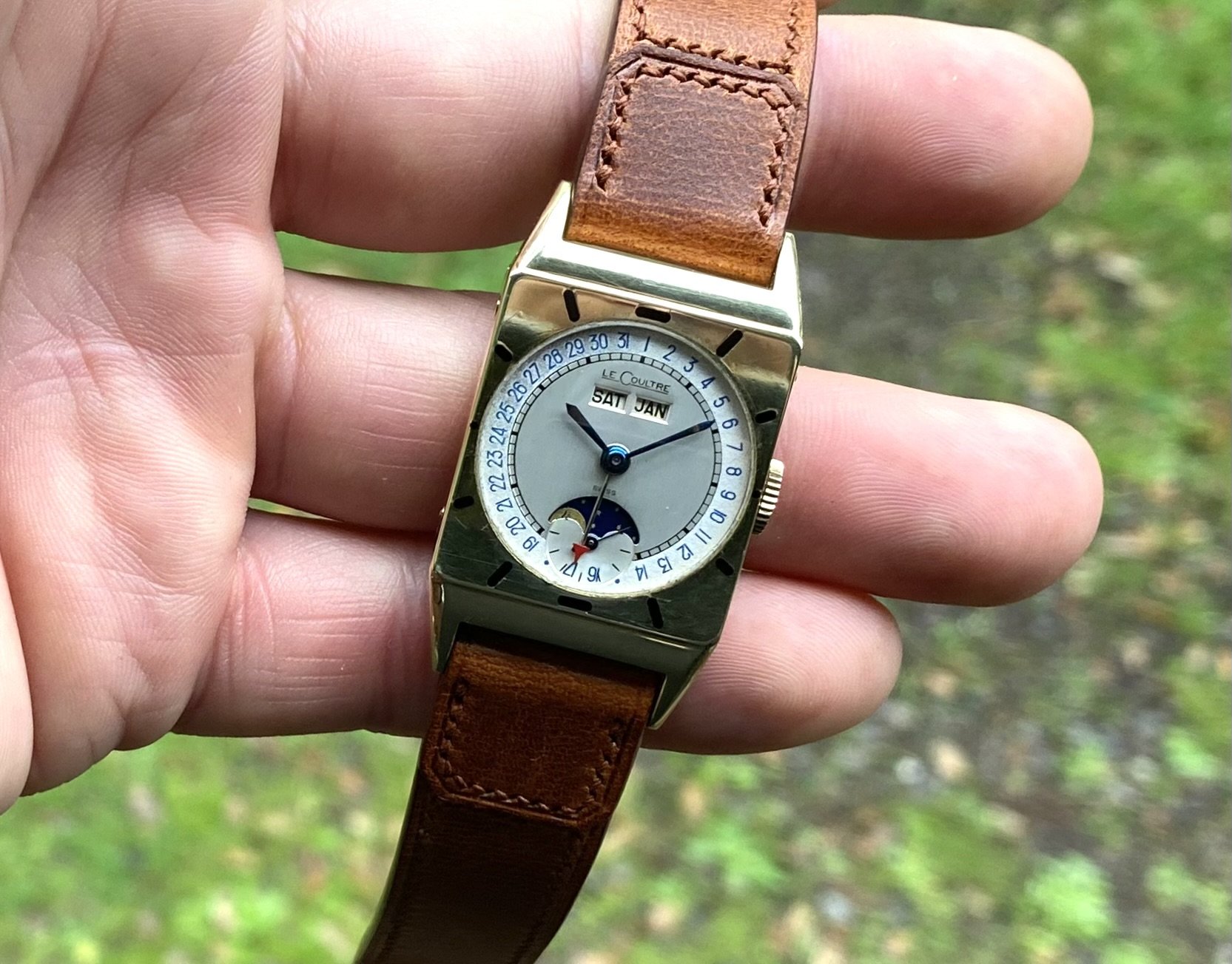 My brother's actually...a gift to him from our father in 1963. It has the Valjoux 72 movement, the case is 18k. Everything is original. The lug/spring bar arrangement is the strangest I've ever seen.