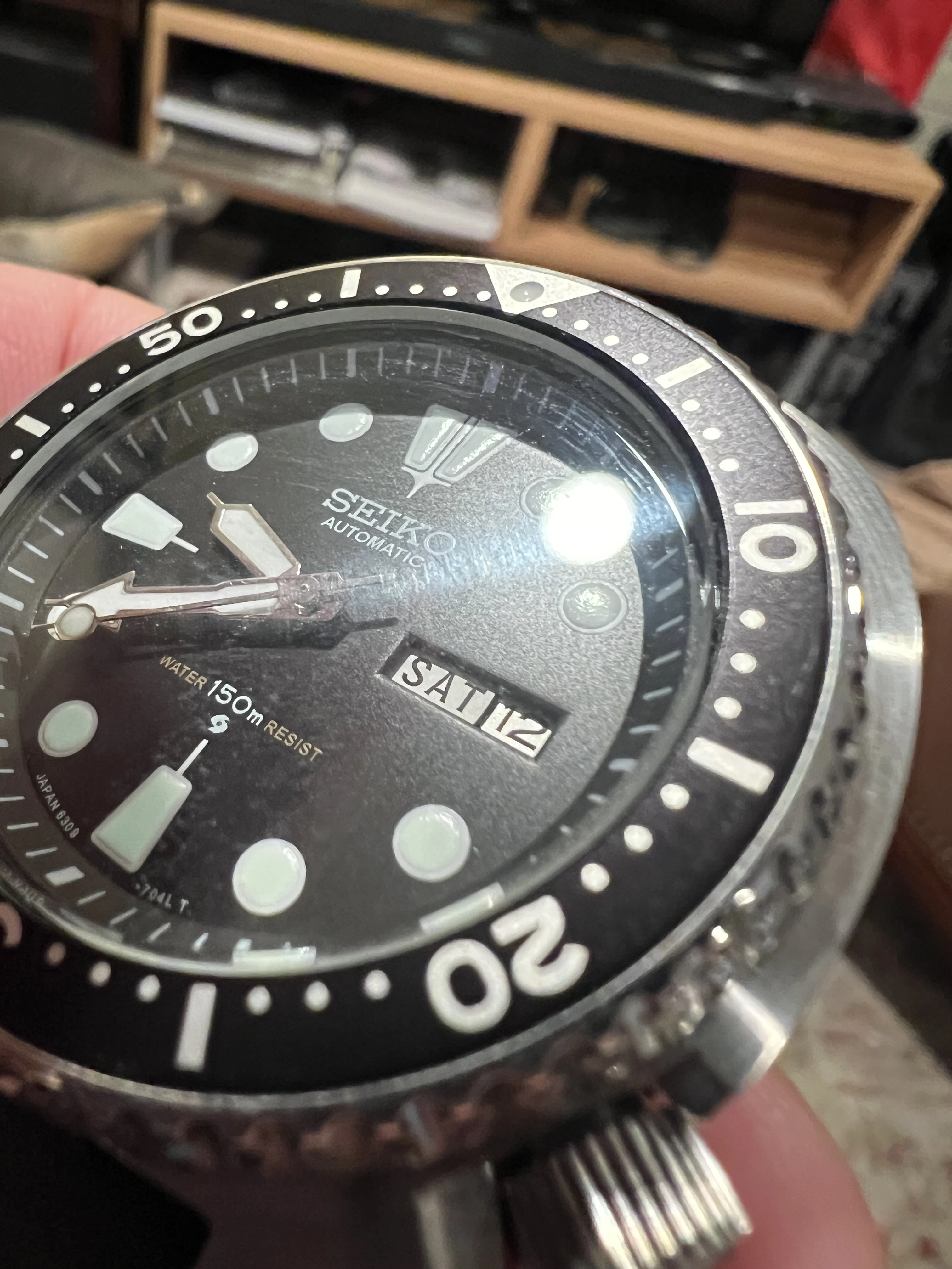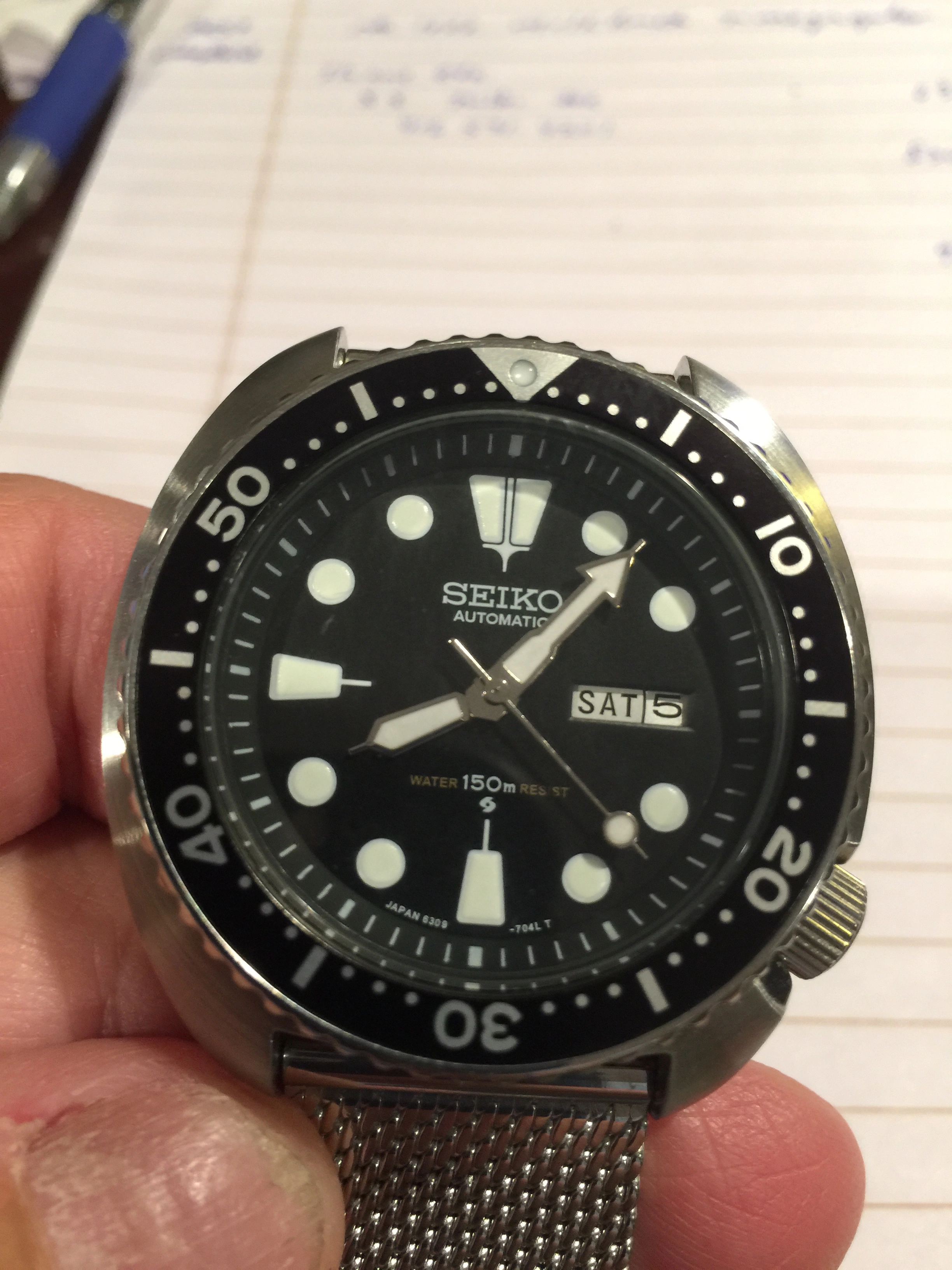 My son got a nice original Seiko Turtle 6039 from his grandfather who used it diving for years. I wanted one and found a "bargain" (400 euro) from a seller in Austria. I researched it up and down, dial markings, lume, date window, hands, caseback text, movement etc, and bought this: