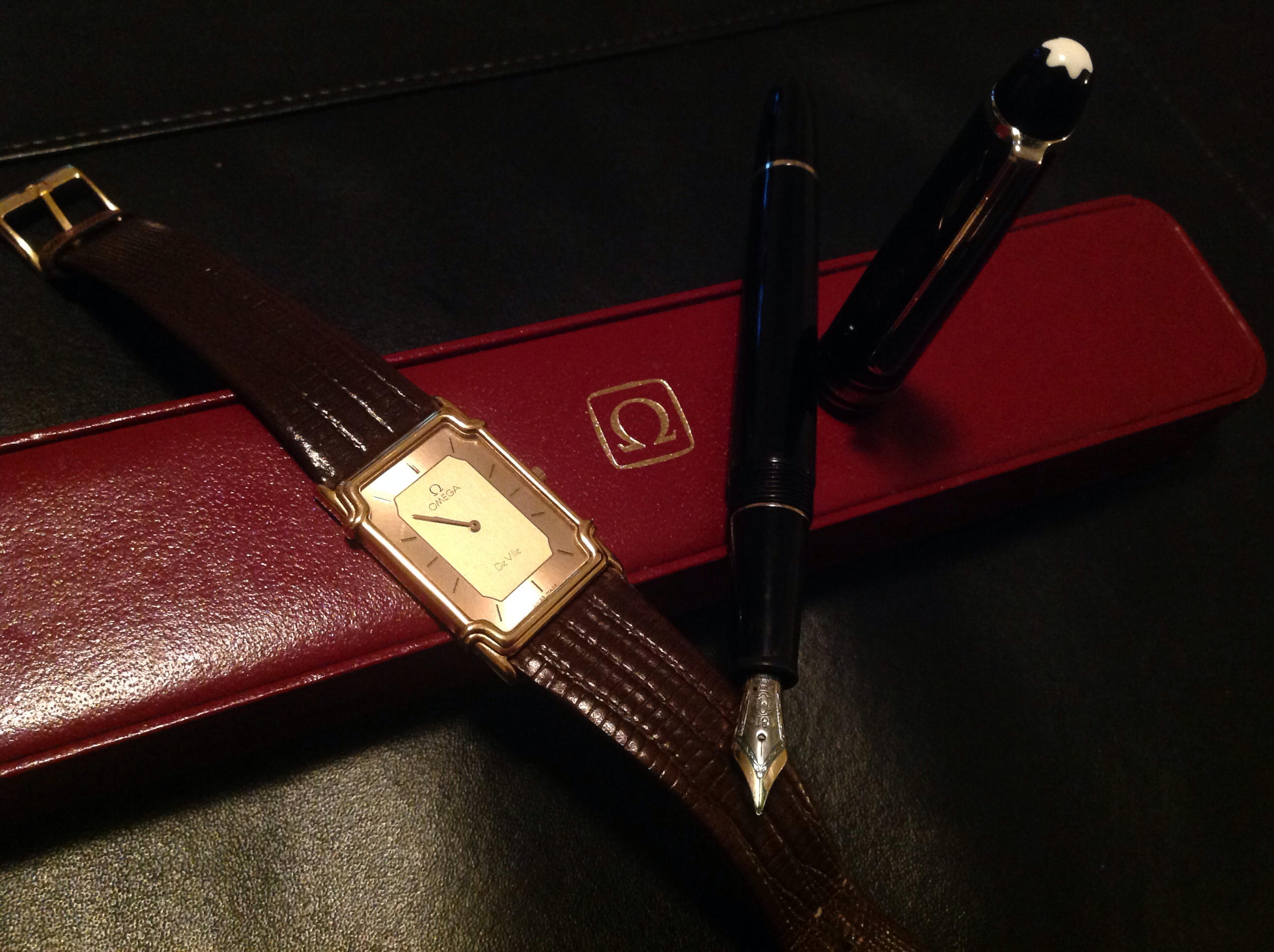 And here's one for the fountain pen lovers... Mont Blanc Hommage to Chopin in platinum, paired with one of my DeVilles from the 80's. Not overly impressed with the pen. I expected it to write better than it does, although it's still fun to use. Happy it was a gift... actually, both the watch & pen in this pic were 😀 I've been fortunate.