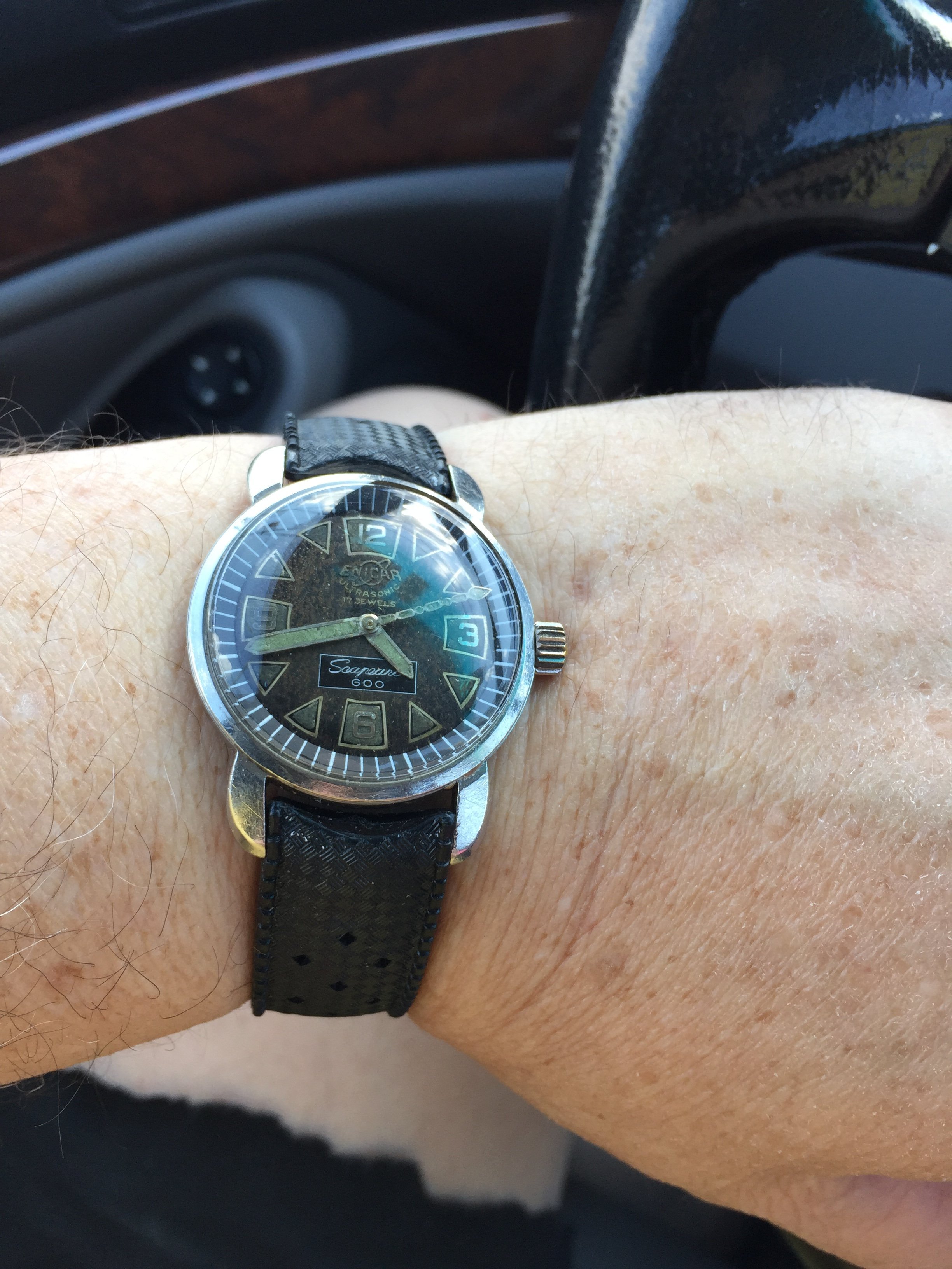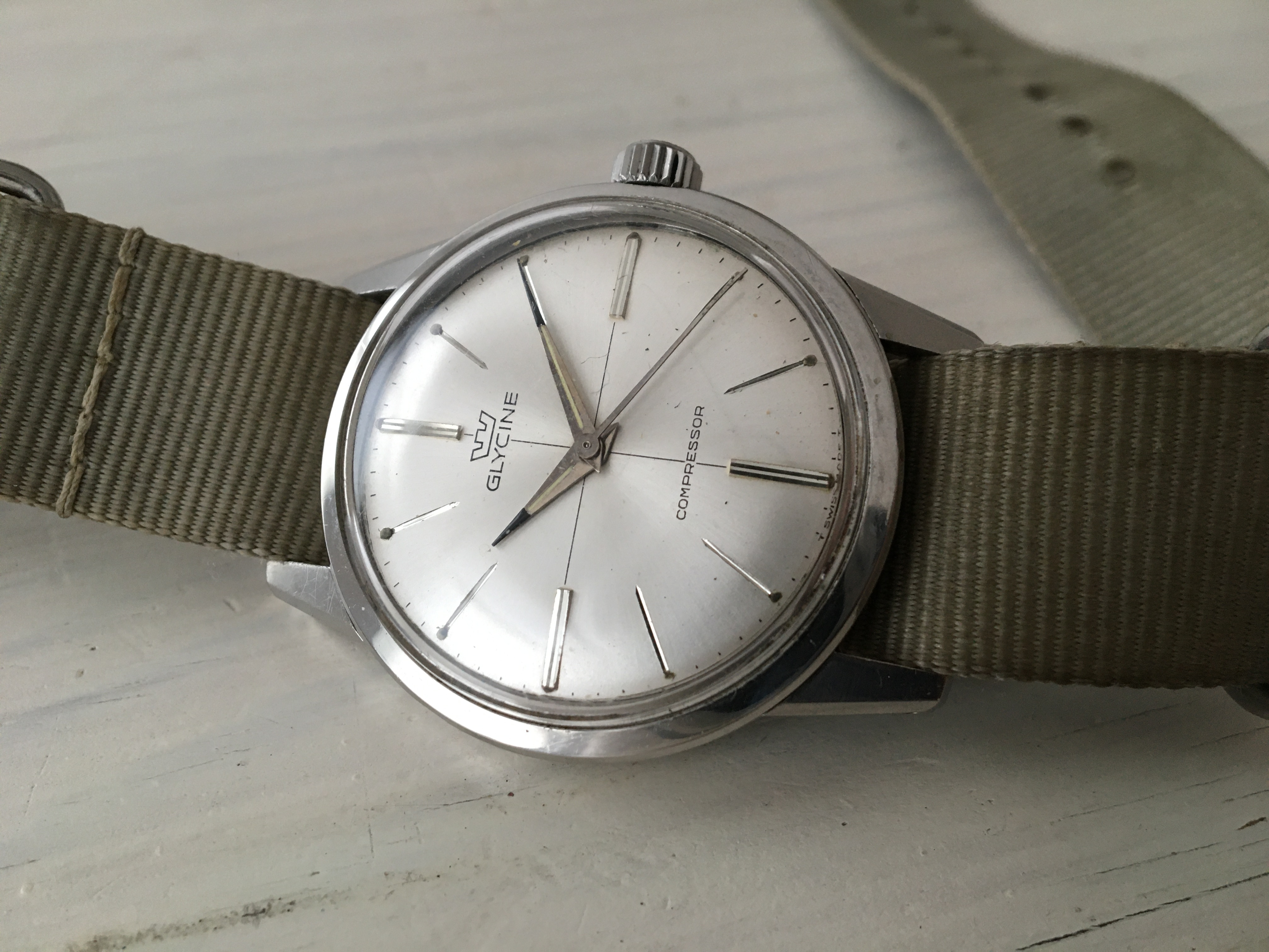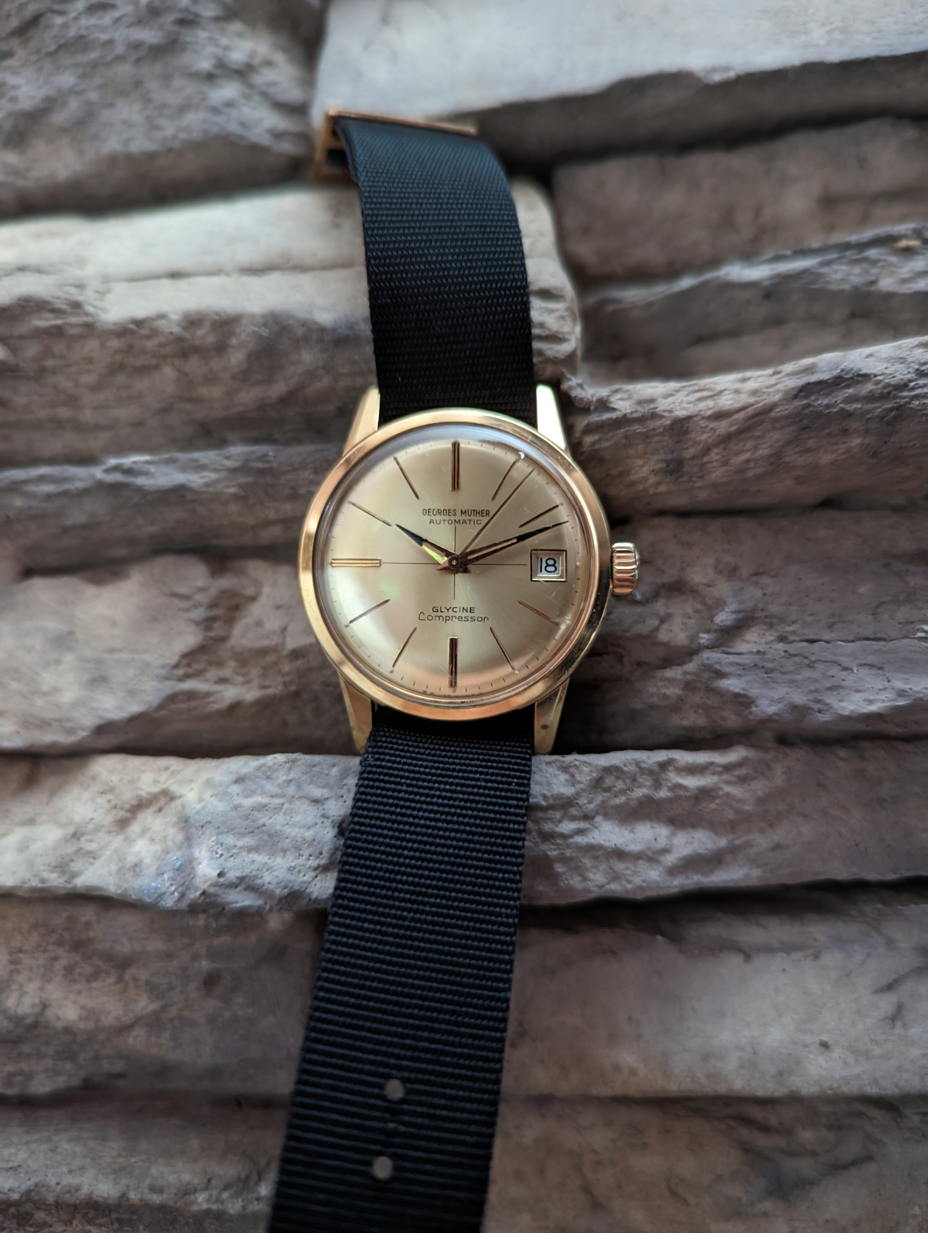 The white date model 1965 was next, it came with the original Gay Freres bracelet, it needs repair so I wear it on various bands.