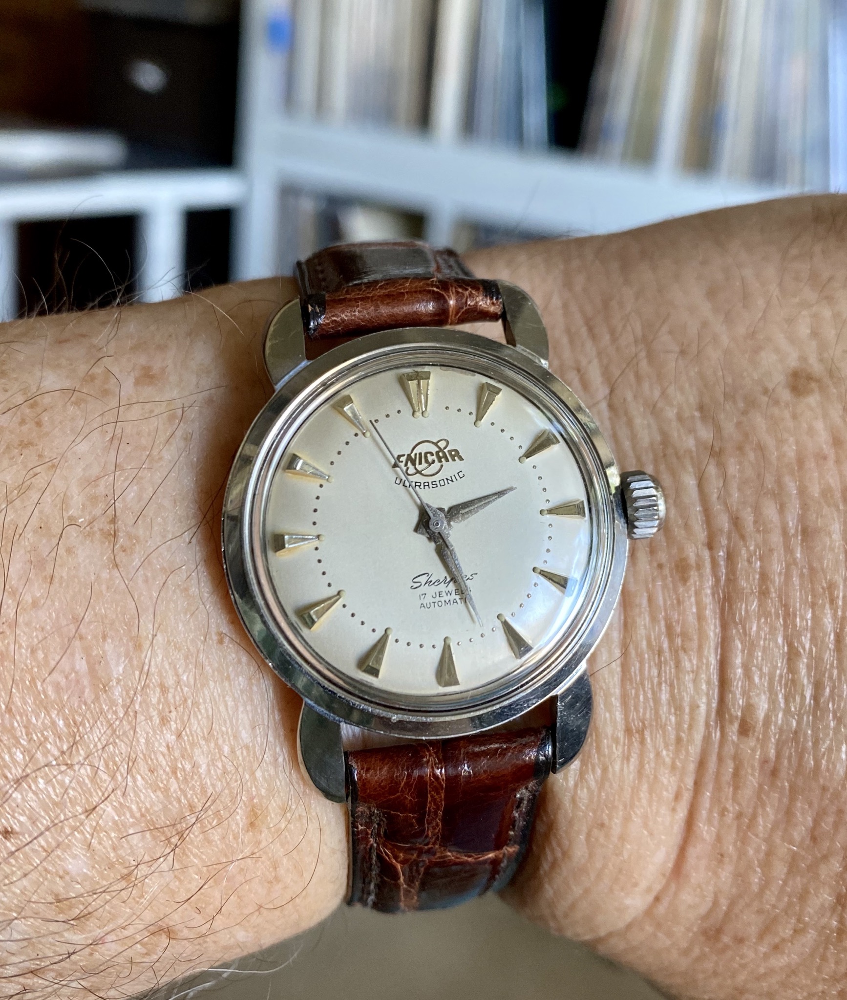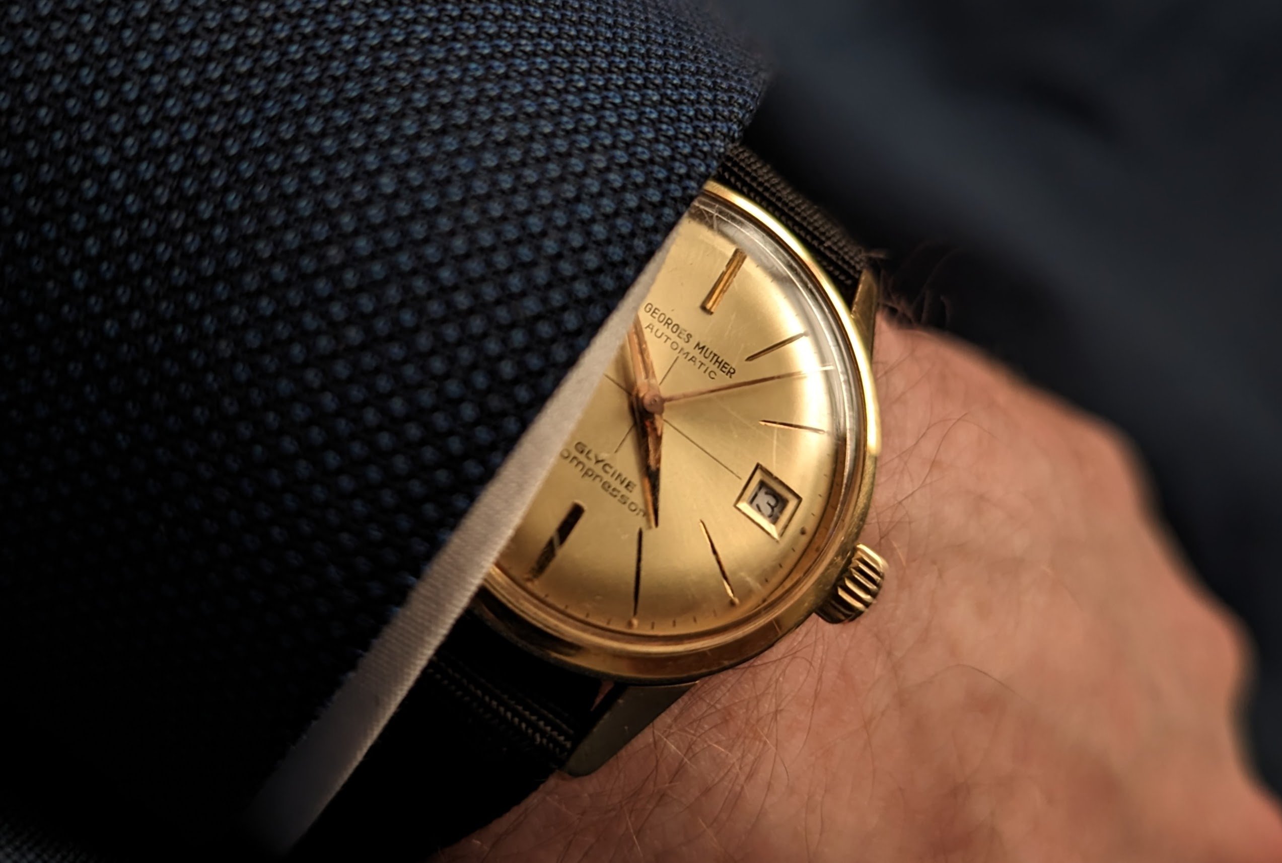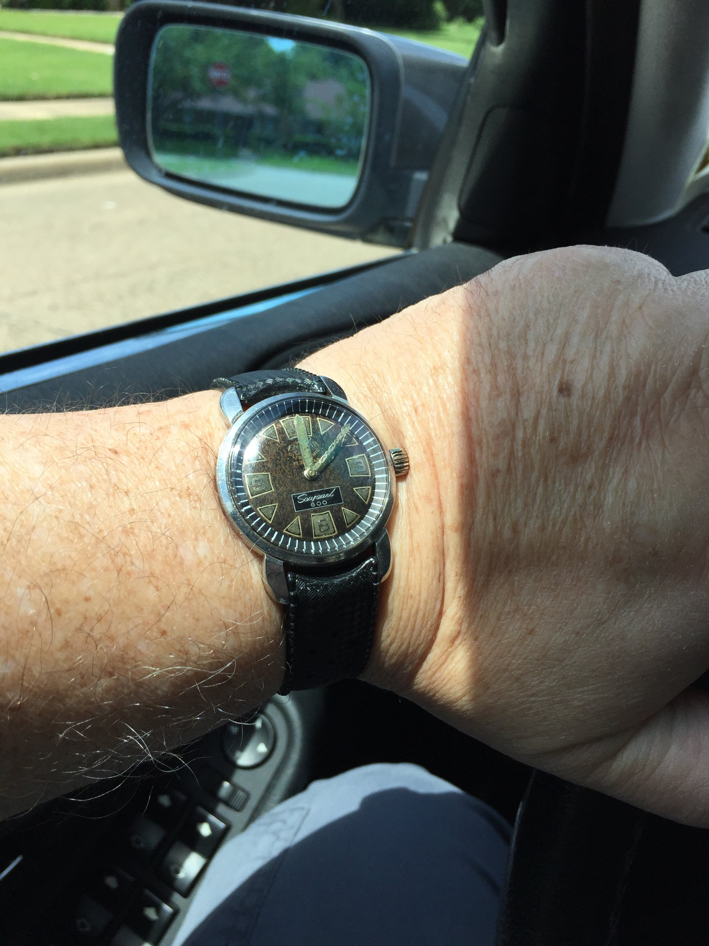 The white date model 1965 was next, it came with the original Gay Freres bracelet, it needs repair so I wear it on various bands.