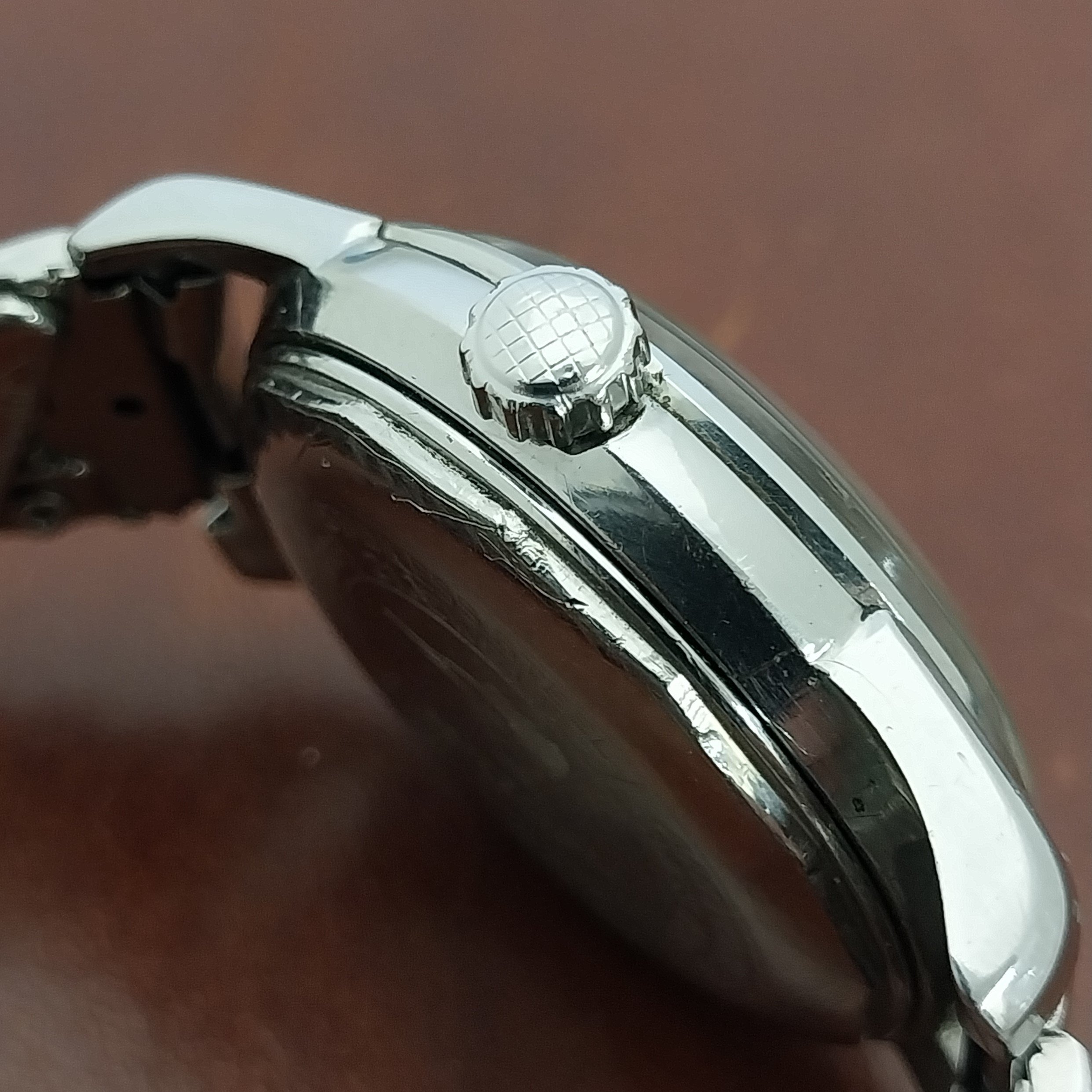 The no date 1959 white dial just arrived. The design of the "super compressor" mechanism in the case is different than the later ones, and have a look at that crown