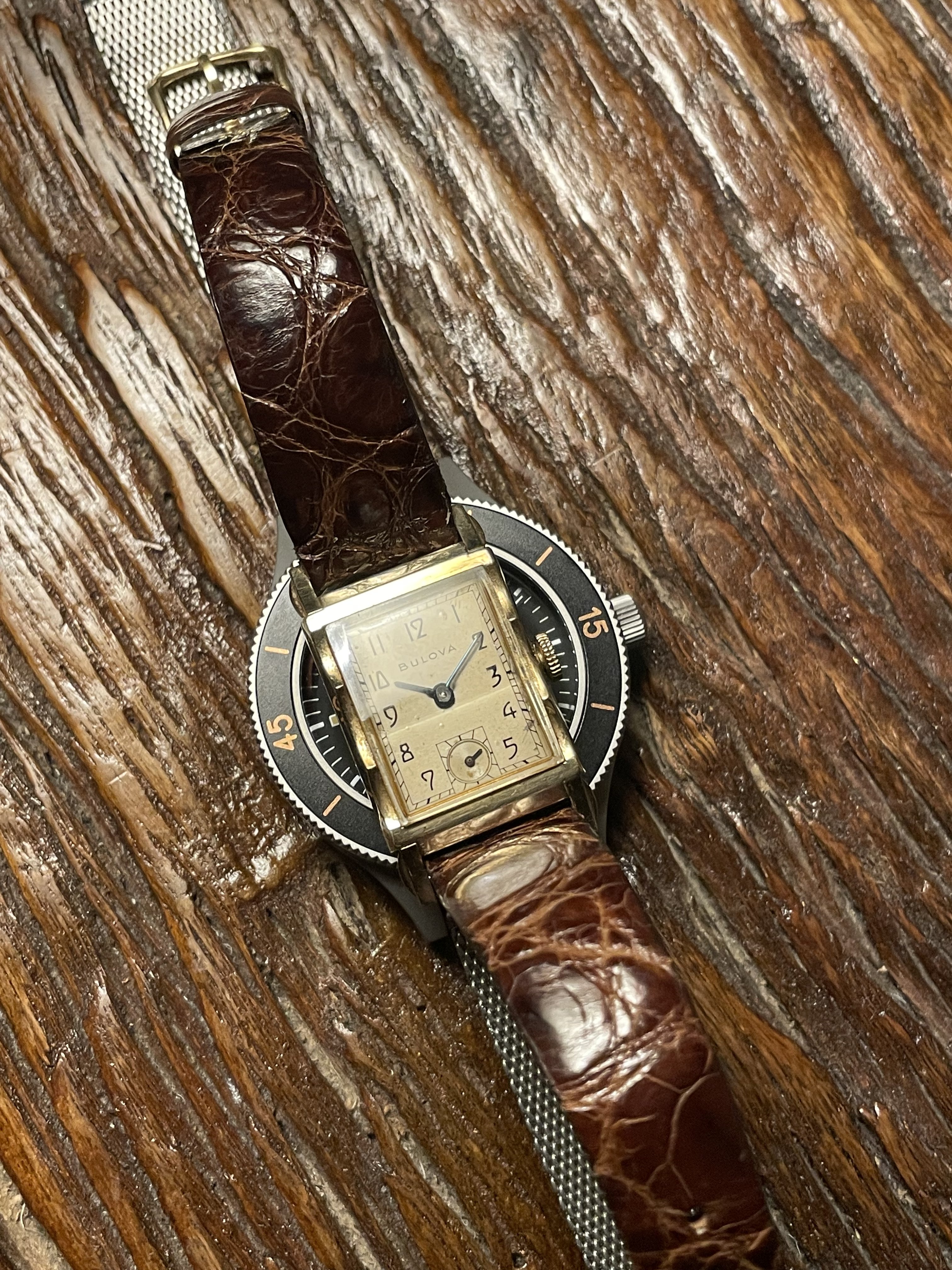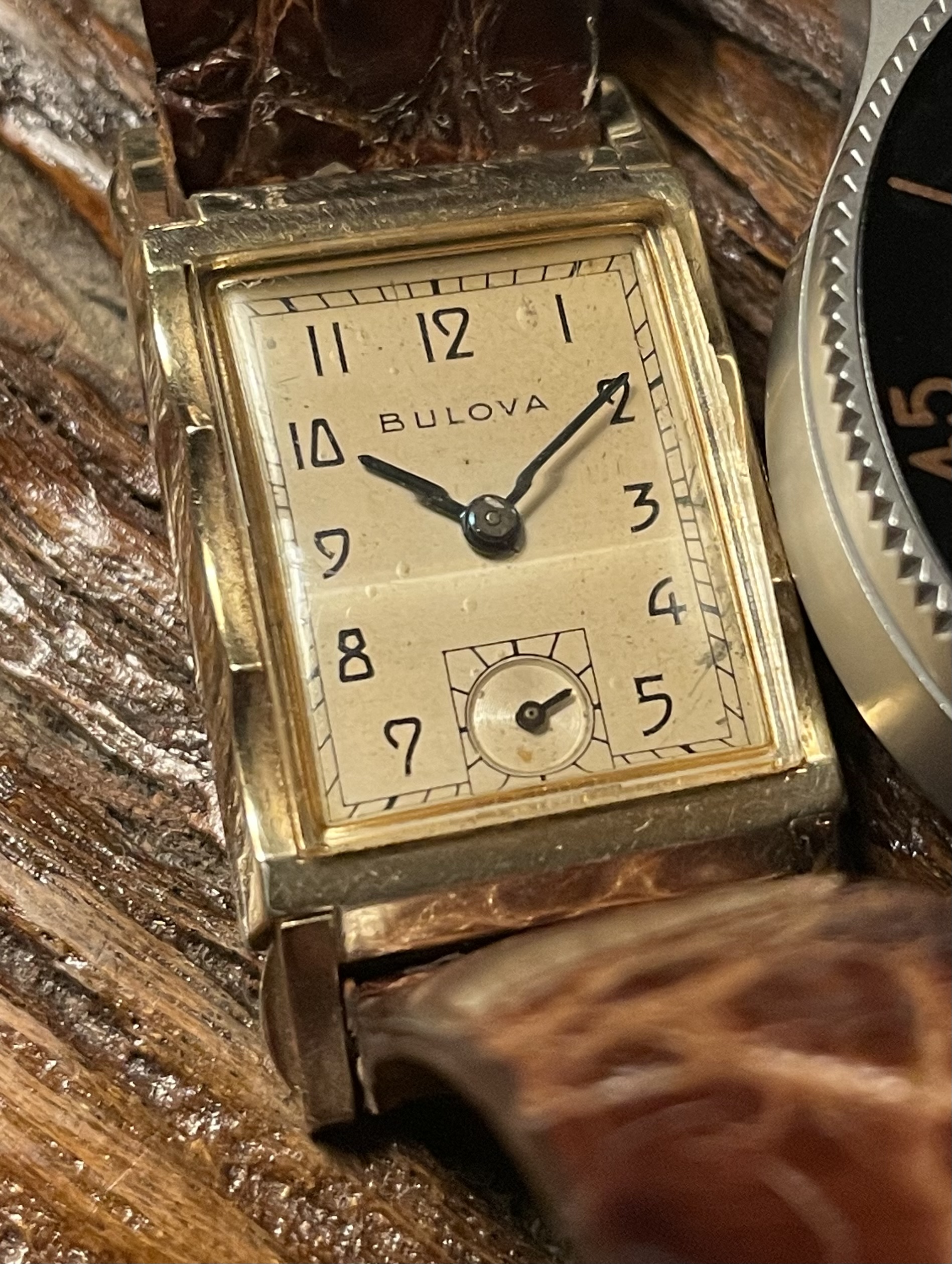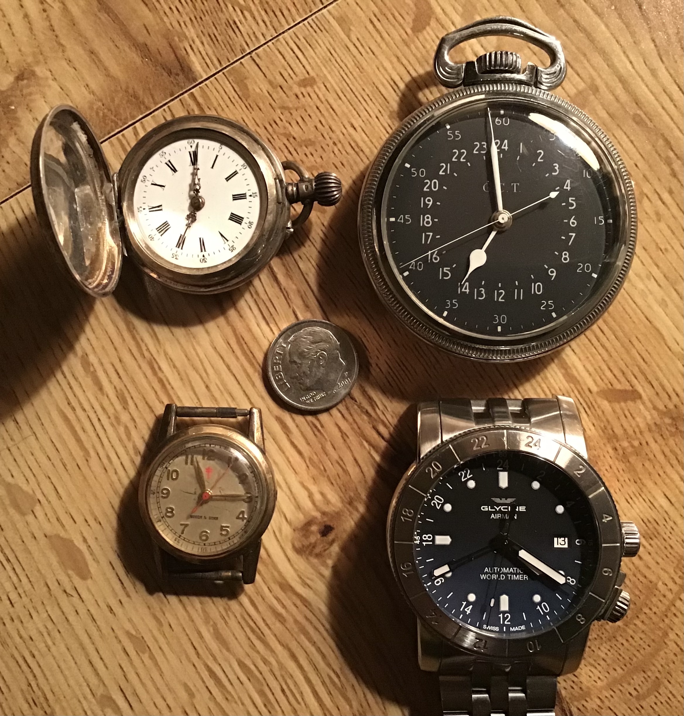 路Inspired by my recent post in the Longines forum regarding my Wittnauer Weems "pat. 2008734" with original box and instruction booklet (which I actually expected more responses to, oh well), I created this "family portrait" from smallest to largest, to try to express the interesting size issue with the Weems: it is tiny, at 27.1 mm, but my wife, who has a keen fashion sense, still approves of it for me to wear. To her it still looks masculine. Not so for the Rolex Speedking with California dial next to it, which comes in at 30 mm. Why not? She doesn't know; just a feeling. Call it female intuition (not something to be messed with!)