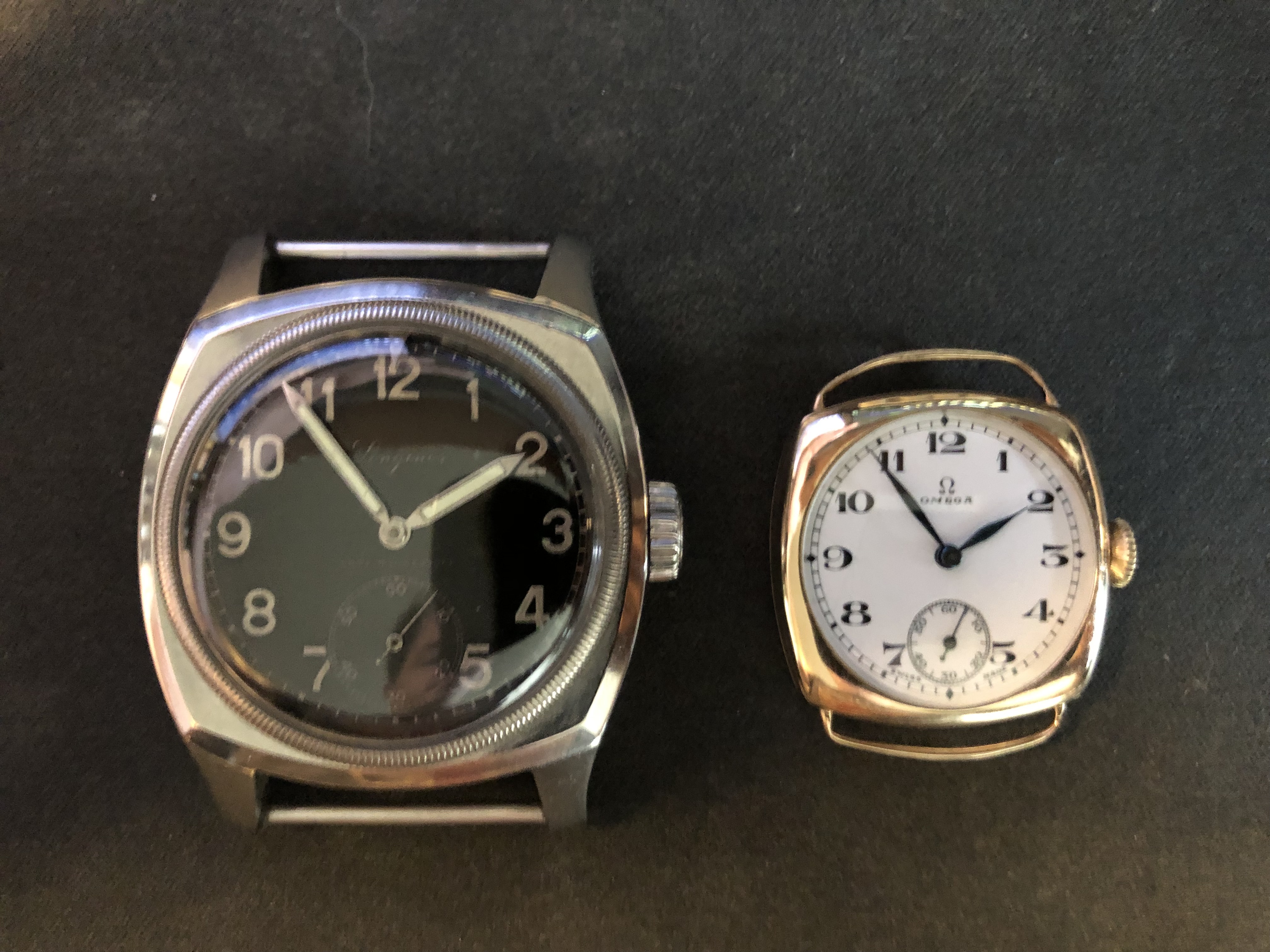 Next is the Longines "sei tacche" (31.5 mm), Rolex Bubbleback 3130 (32 mm), Rolex Bubbleback 5018 (32.5 mm), Wittnauer starburst dial (33 mm), Rolex Oyster Perpetual 1002 (34 mm), Longines All Guard (34.5 mm), UG Polerouter Broad Arrow, grail no more (35 mm), Tudor Black Bay 36 (36 mm, duh), and Nomos Tangente Neomatik, birthday present from wife 馃榾 (38 mm). These are the tightest increments I could pull from my collection. For me the sweet spot is 36 mm--the Tudor gets the most wrist time--but I do wear all of these very happily. Amazing how some look larger and some smaller than their actual diameters (all measurements are not including crown).