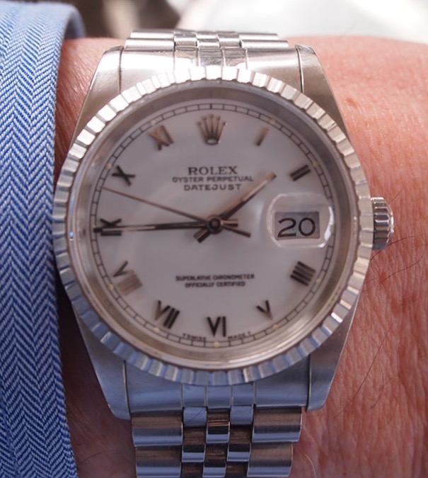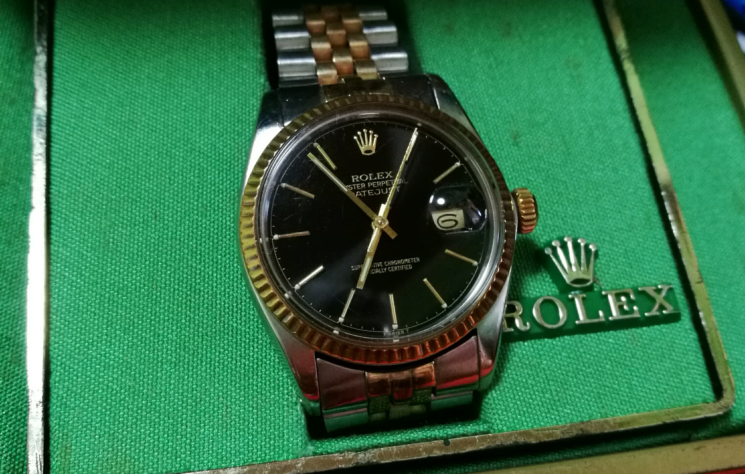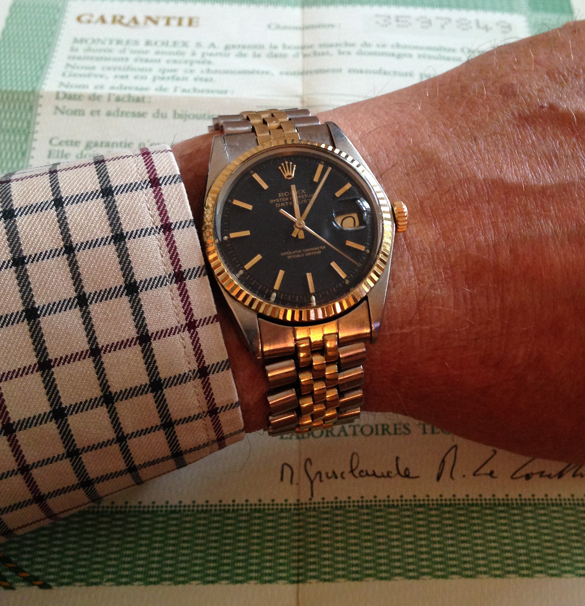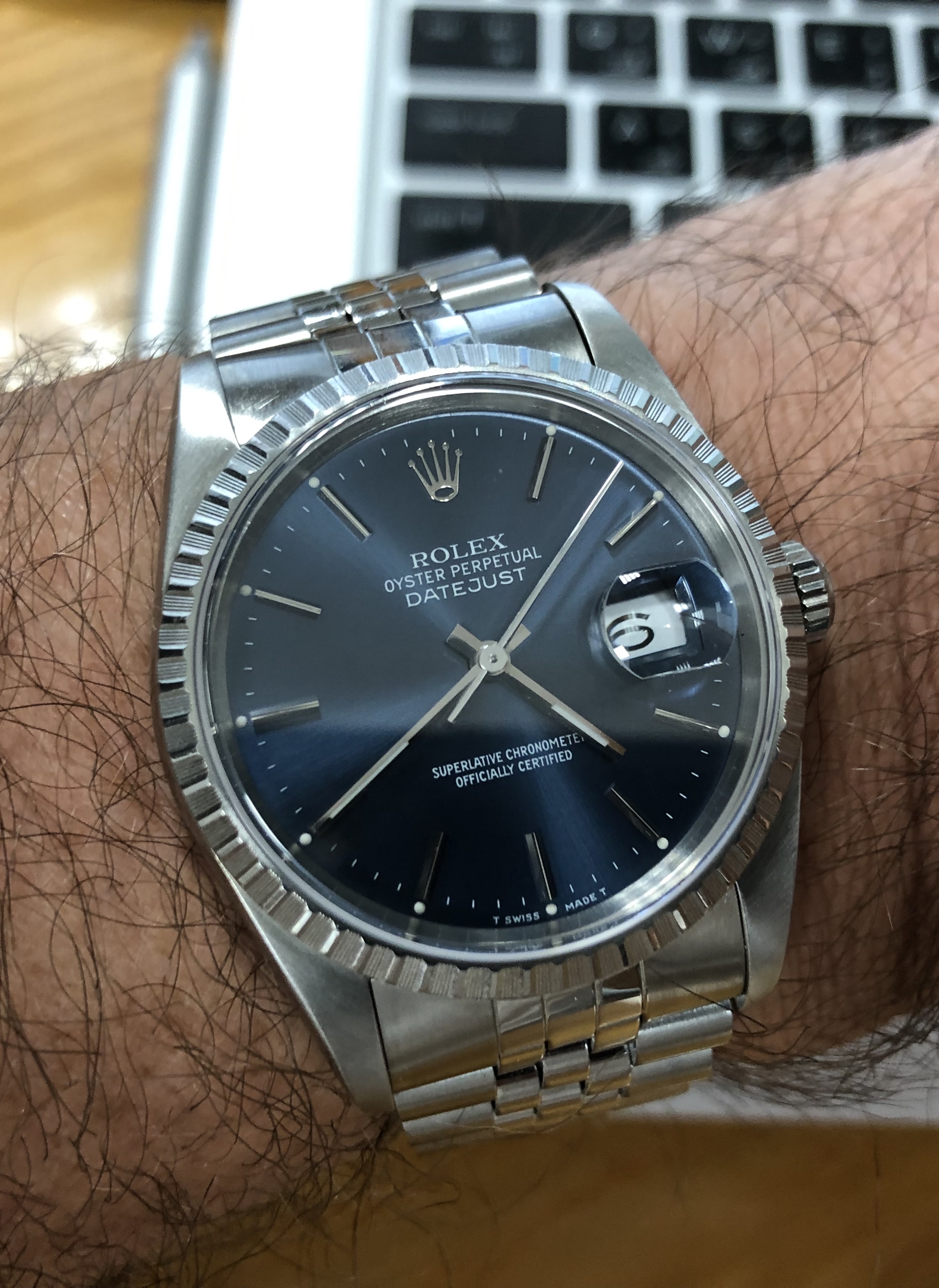 路Unlike many of the other Date-Justs shown in this thread, only because of the unique dial. This one came my way right after Rolex fitted the Date-Just with a sapphire crystal. The dial has applied Roman numerals, and is the only one like it that I have seen. My all time favourite dial on this model. Currently running just 19 seconds fast in the past six months! Who needs quartz?