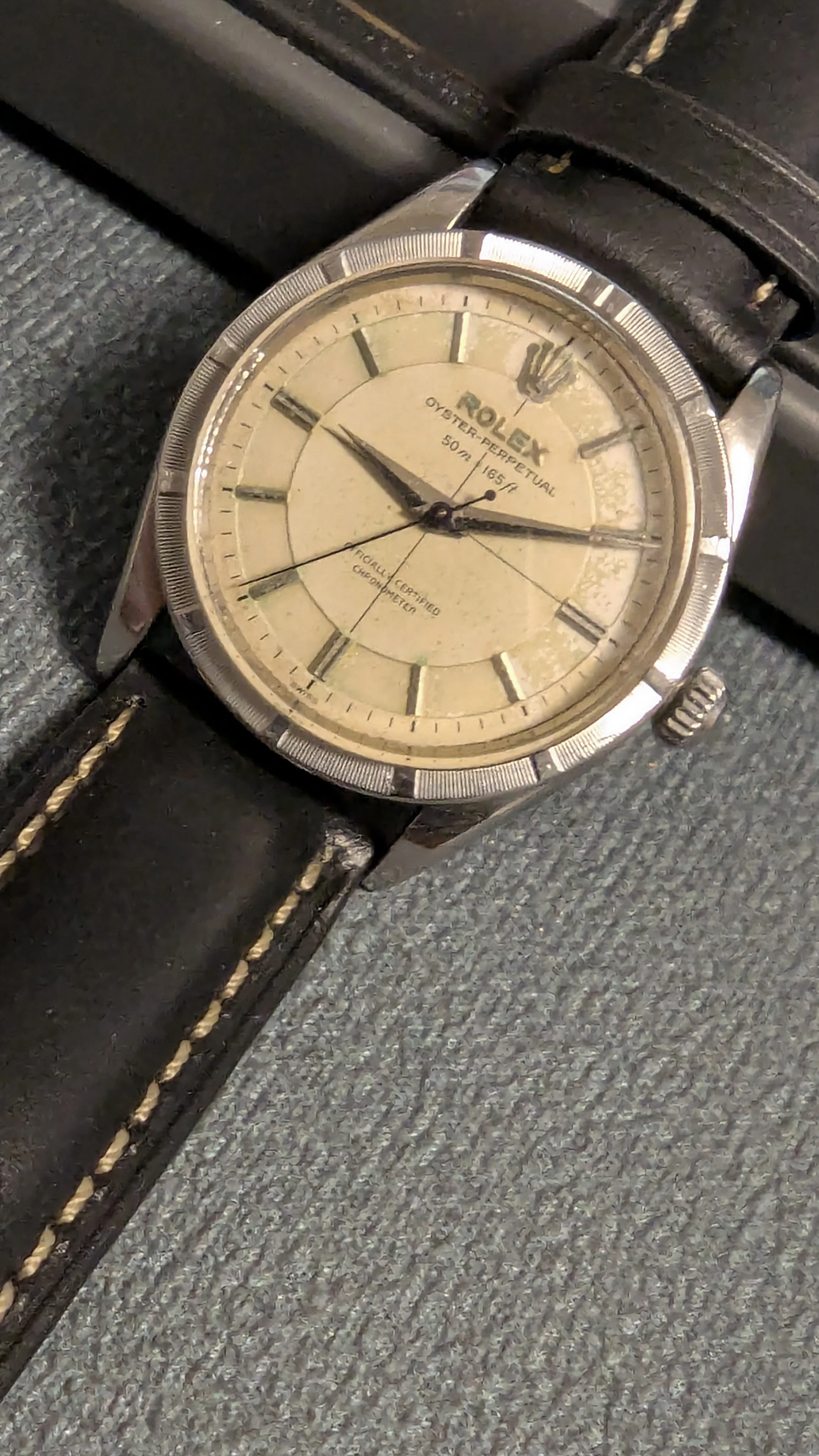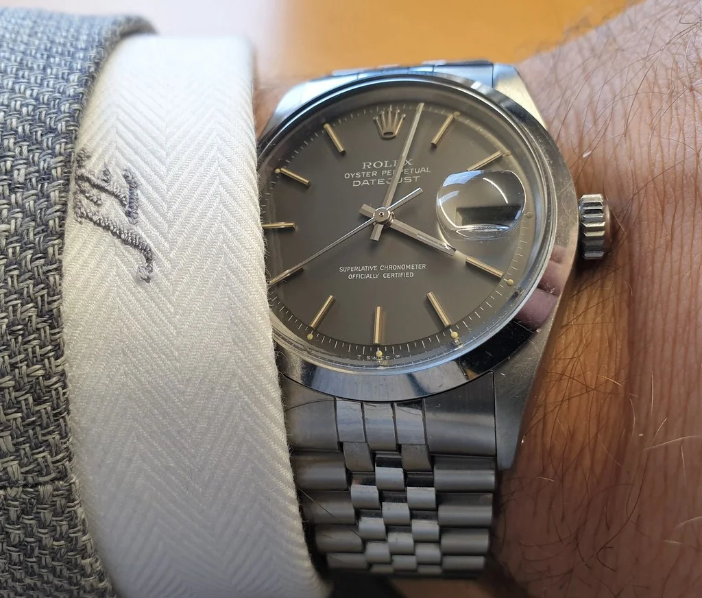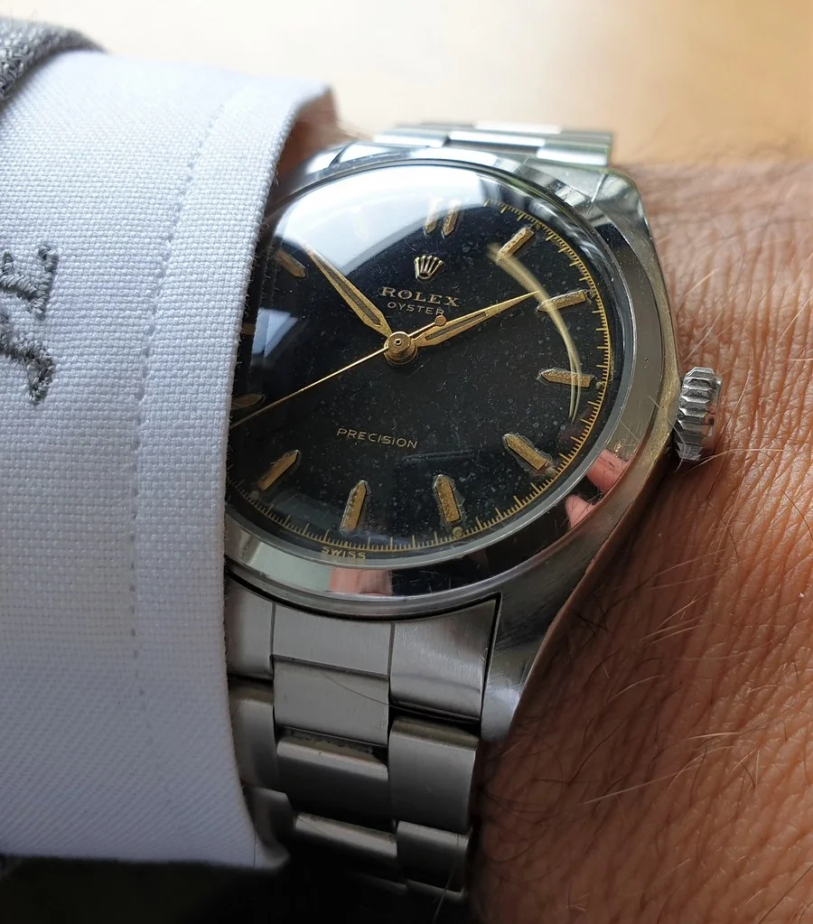 Mid 1970s, Rolex Oyster Daytona Cosmograph chronometer (it IS a chronometer), Valjoux 72, manual wind. I owned it for about 30 years. Sadly, long gone, enjoyed by someone else.