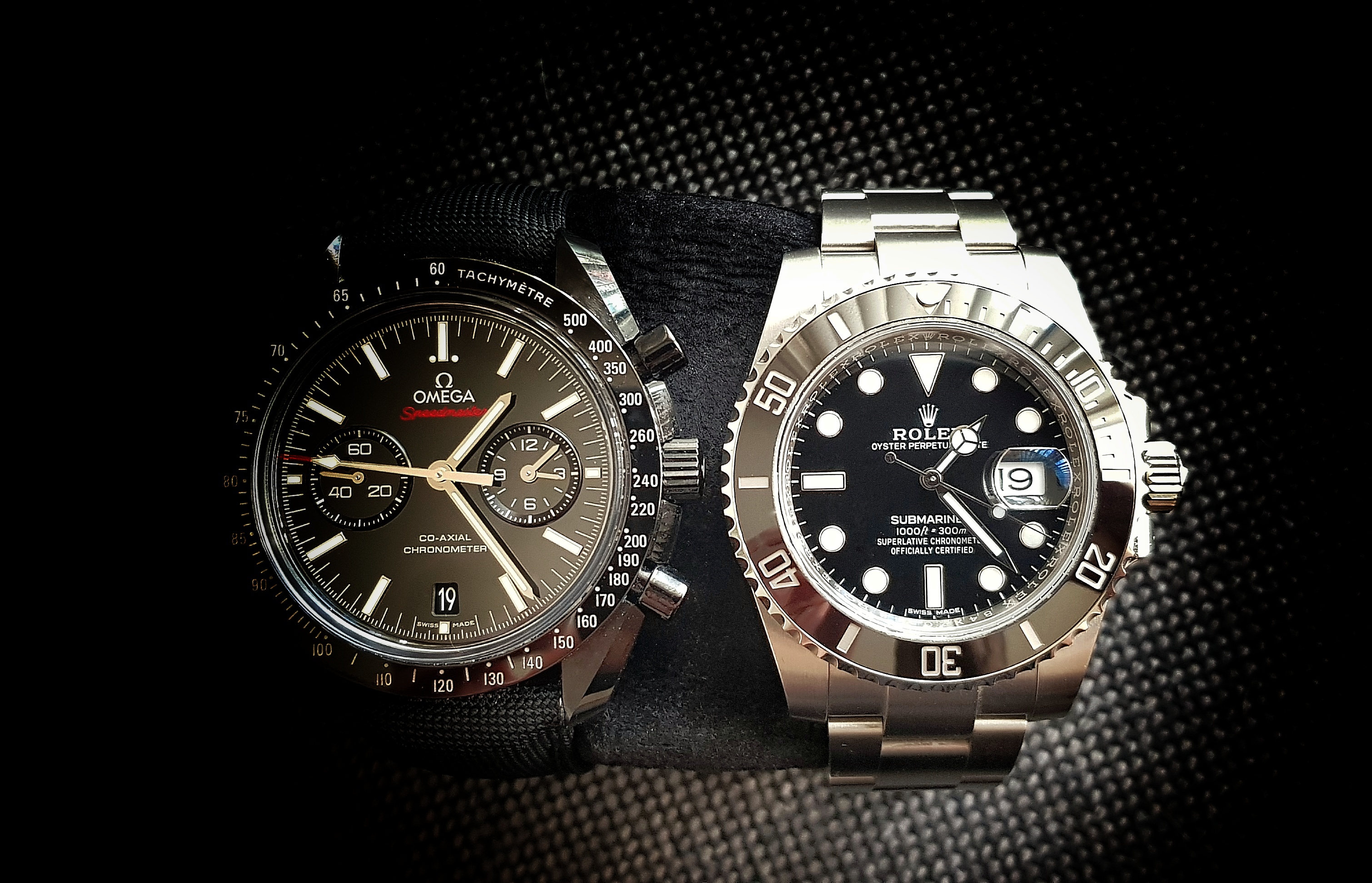 On paper, the Omega wins but for me, Rolex is the clear winner. The build quality/tolerances of a modern Rolex bracelet, the click of the bezel on the ball-bearing setup, the thinness of everything combined with that level of rigidity, the level of accuracy/regulation of their movements..... you'd have to hold a Rolex in one hand and an Omega in another to understand what I'm on about. It's inexplicable.