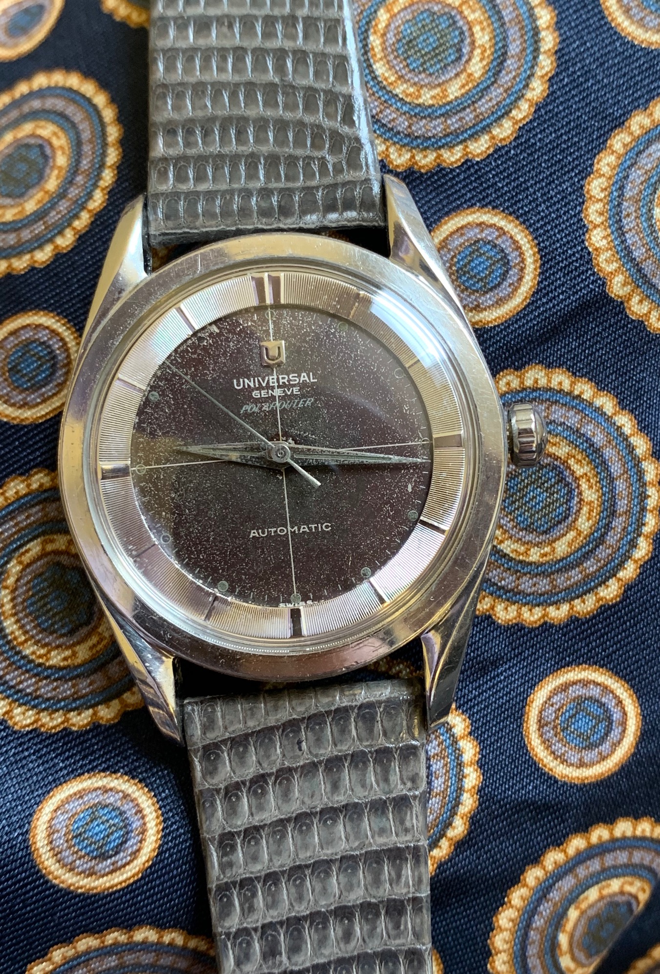 With vintage watches, there is always a compromise for a given budget; here the trade-off was condition, specifically the condition of the dial, for rarity.