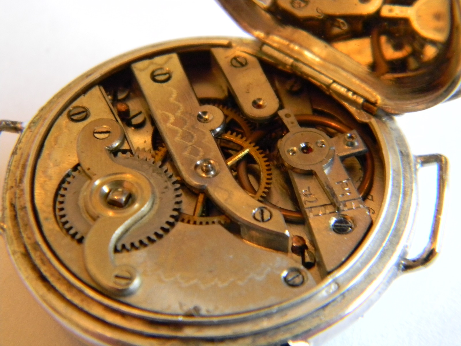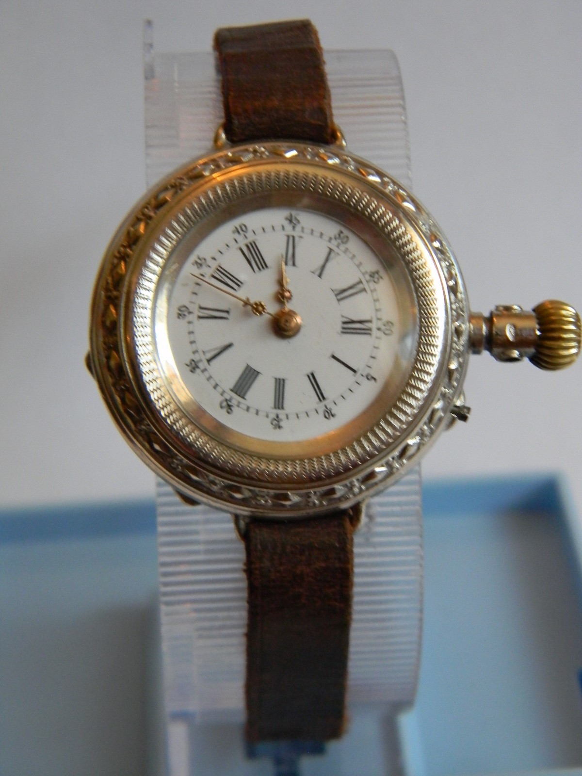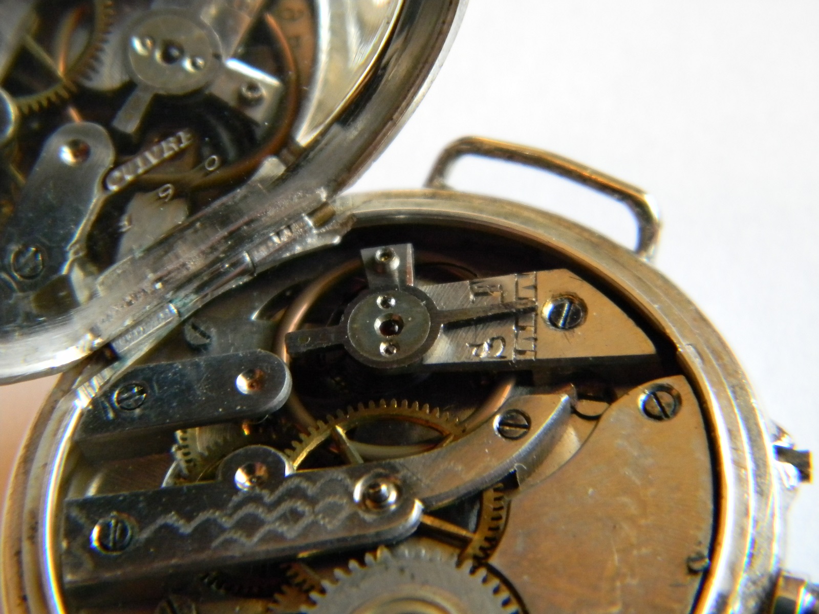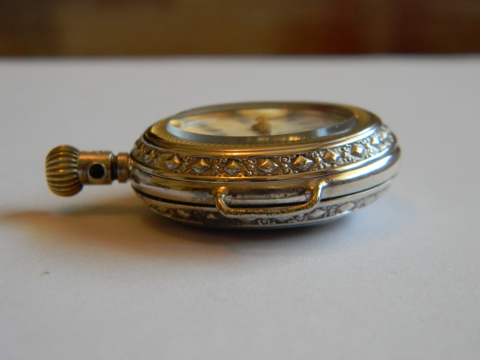 Modified from a pocket watch to a wristlet with added silver wire lugs