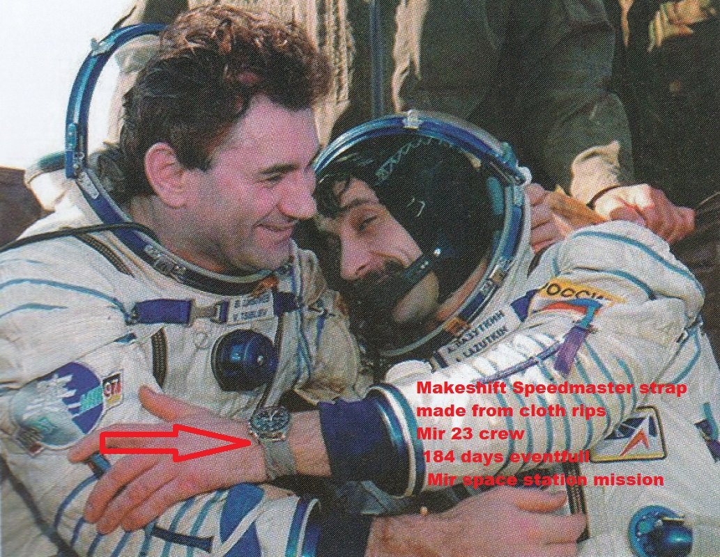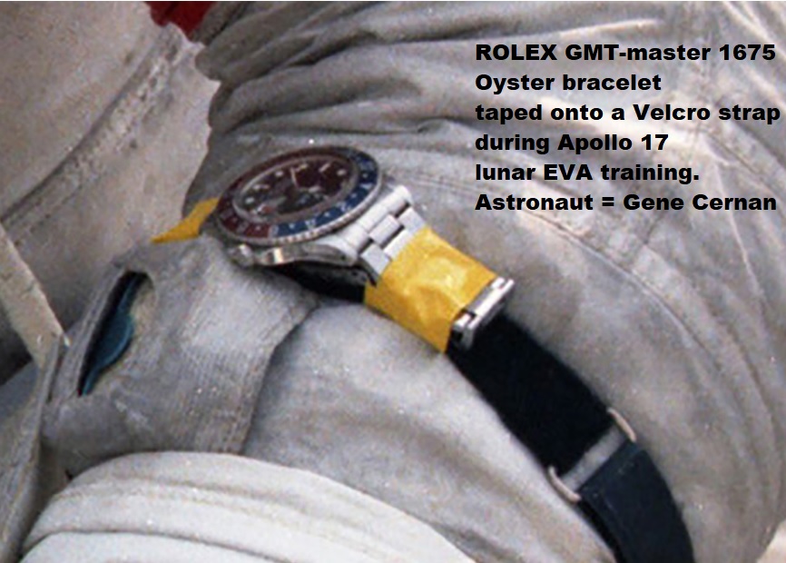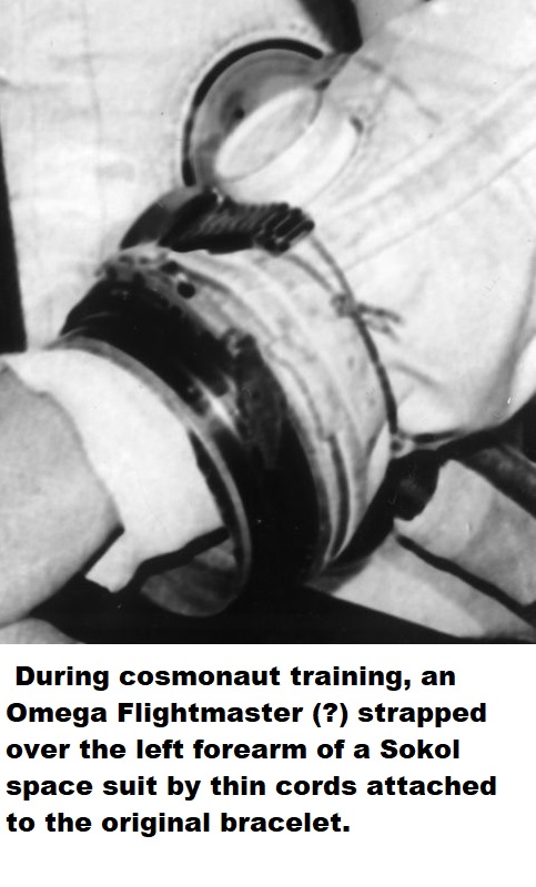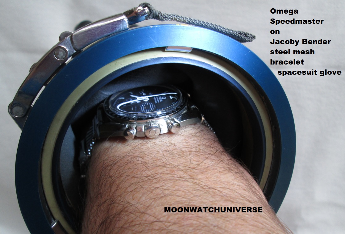 Later on wristwatches ware worn with their original off-the-shelf bracelet as this fits well underneath the spacesuit gloves.