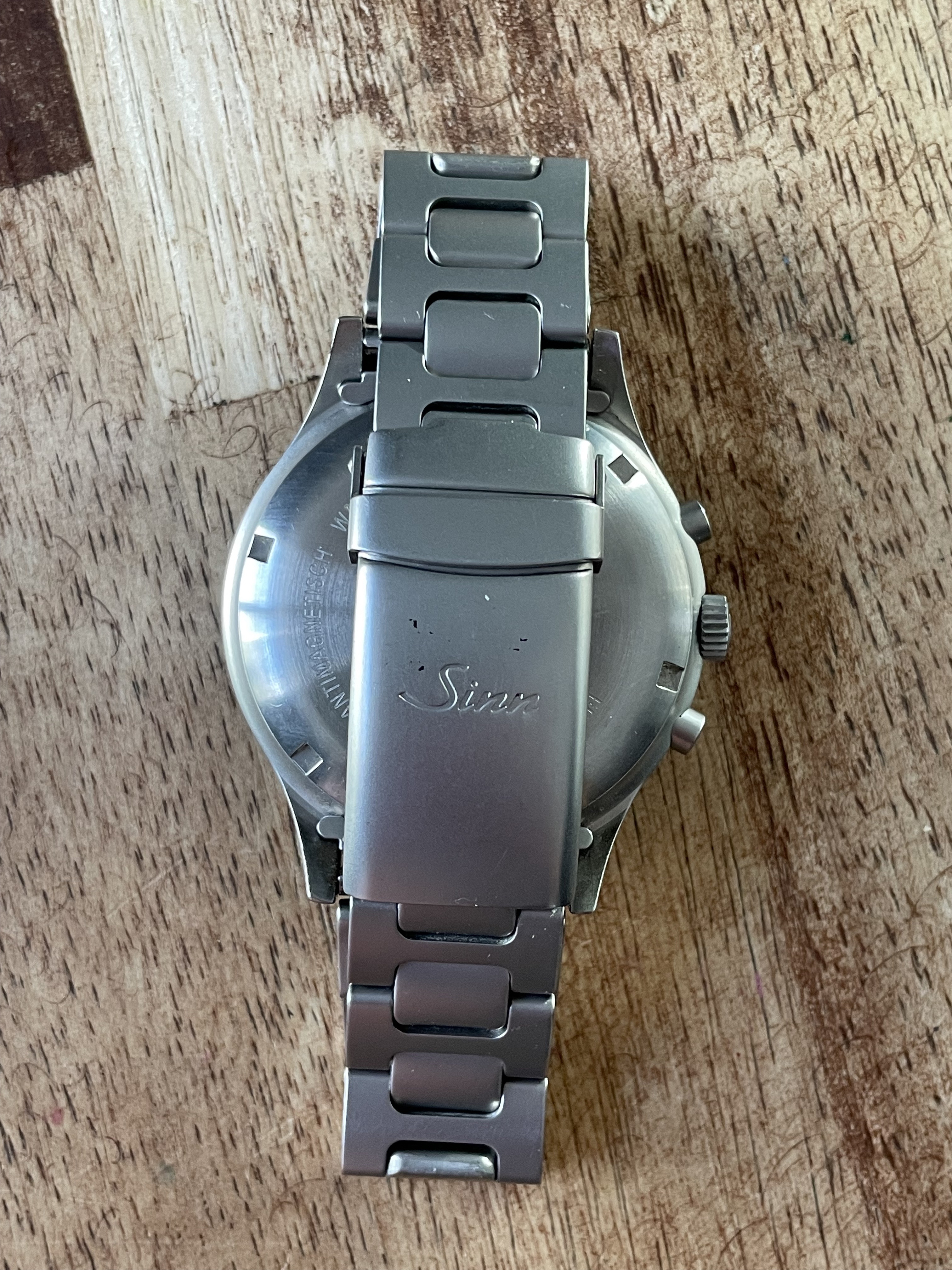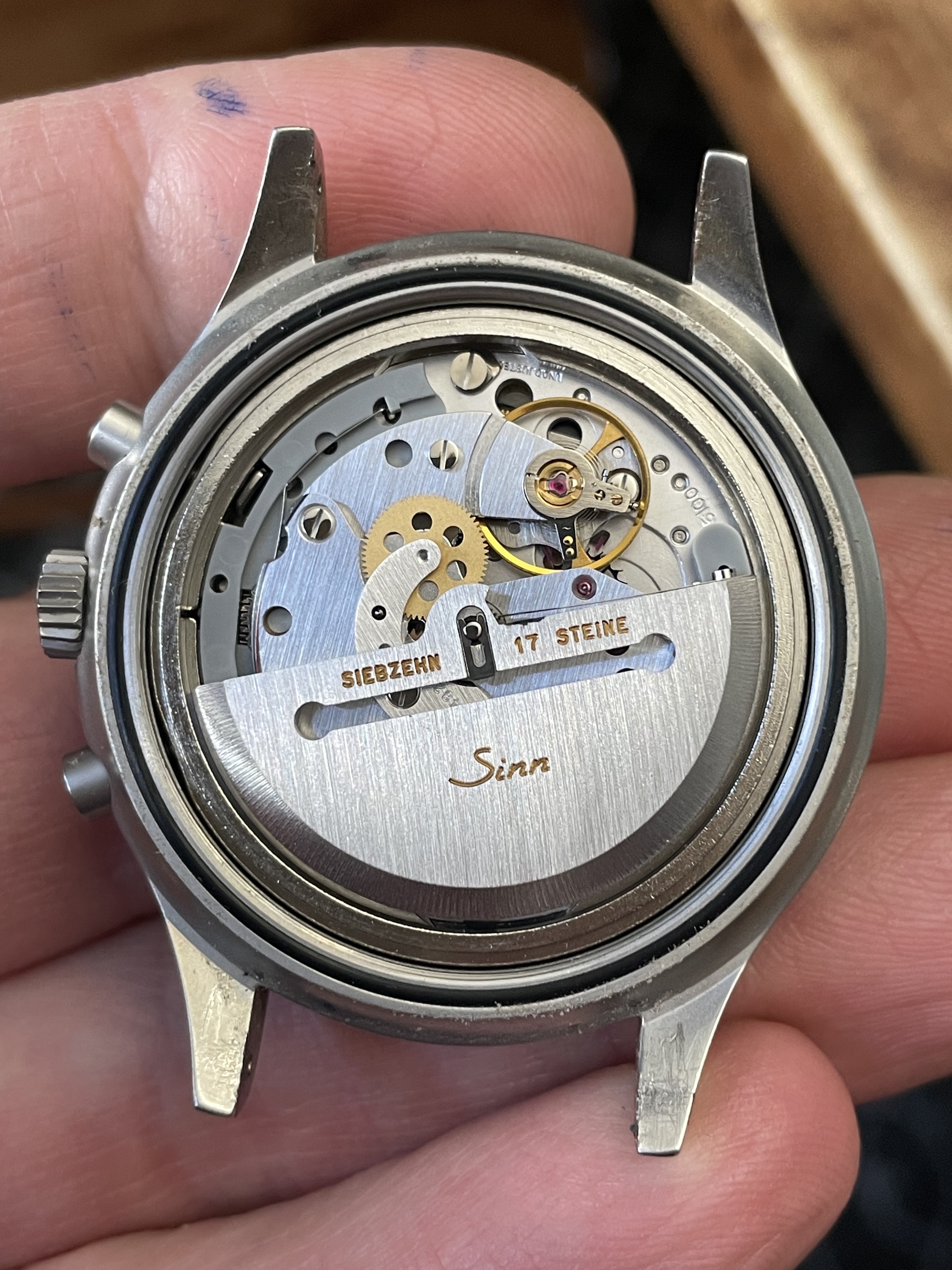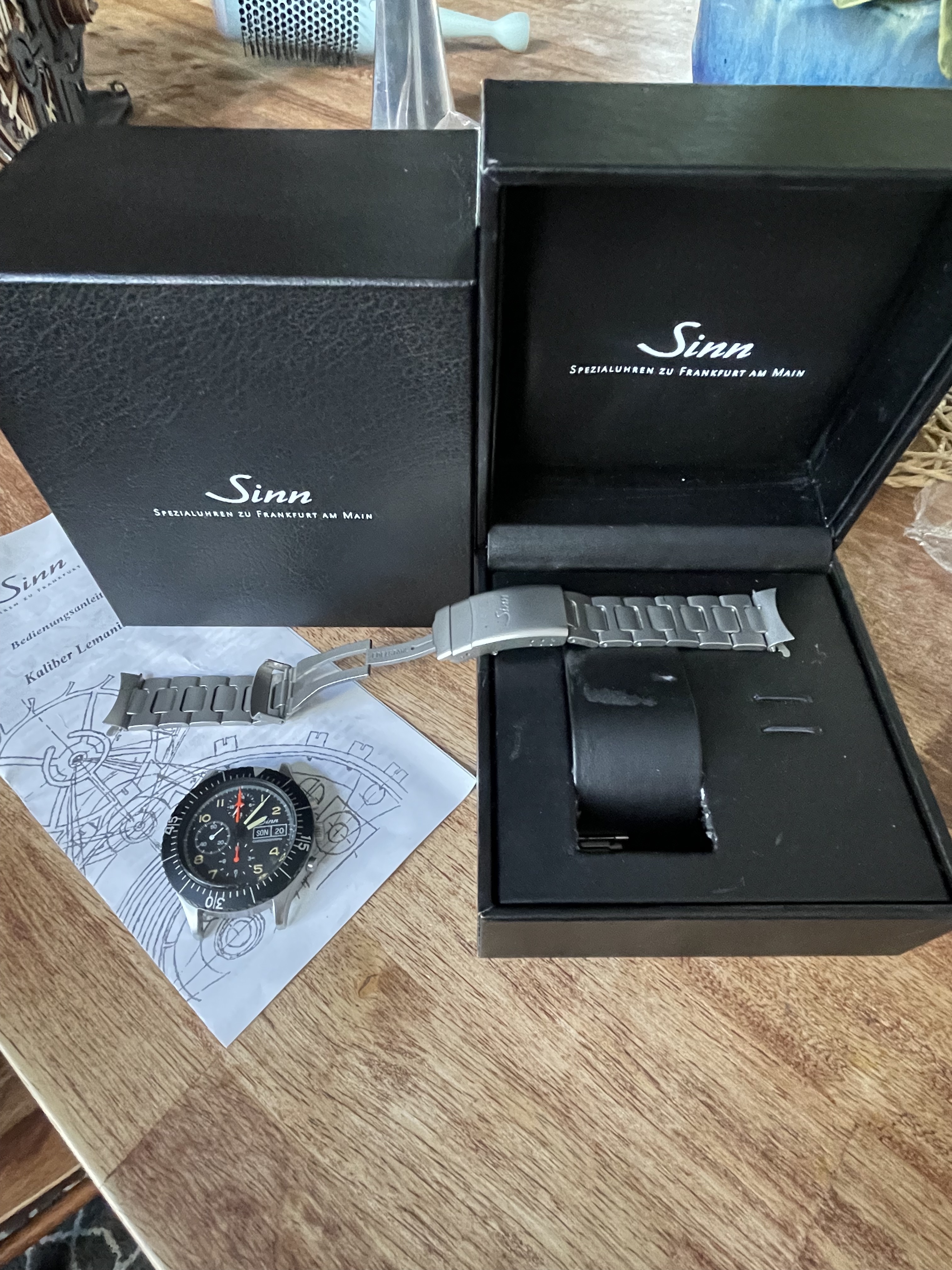 This watch comes with its original box, which includes what I presume is the original Sinn manual for the Lemania 5100.