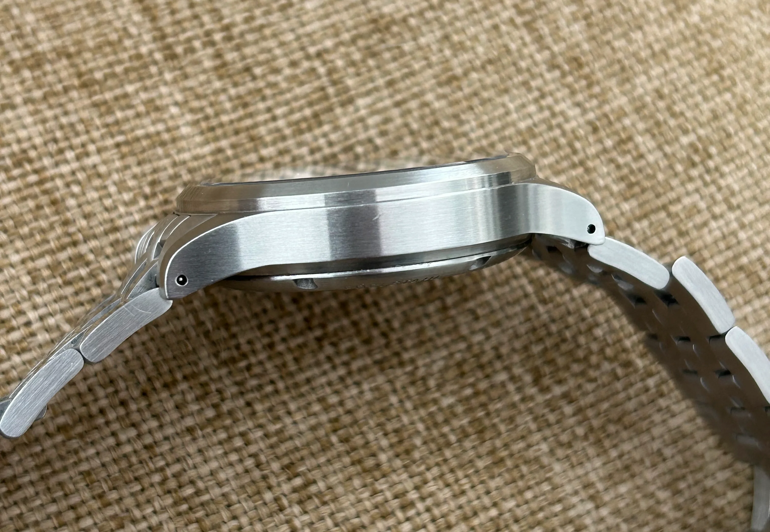 Overall in very good, clean condition. Winds and sets smoothly, no issues. A few tiny hairline scratches on bezel and left side of case, and a couple minor marks on bracelet, but no dings. Tried to capture in photos, and iPhone camera exaggerates the contrast of any imperfections. 45.2mm lug to lug and 11.2mm thick.