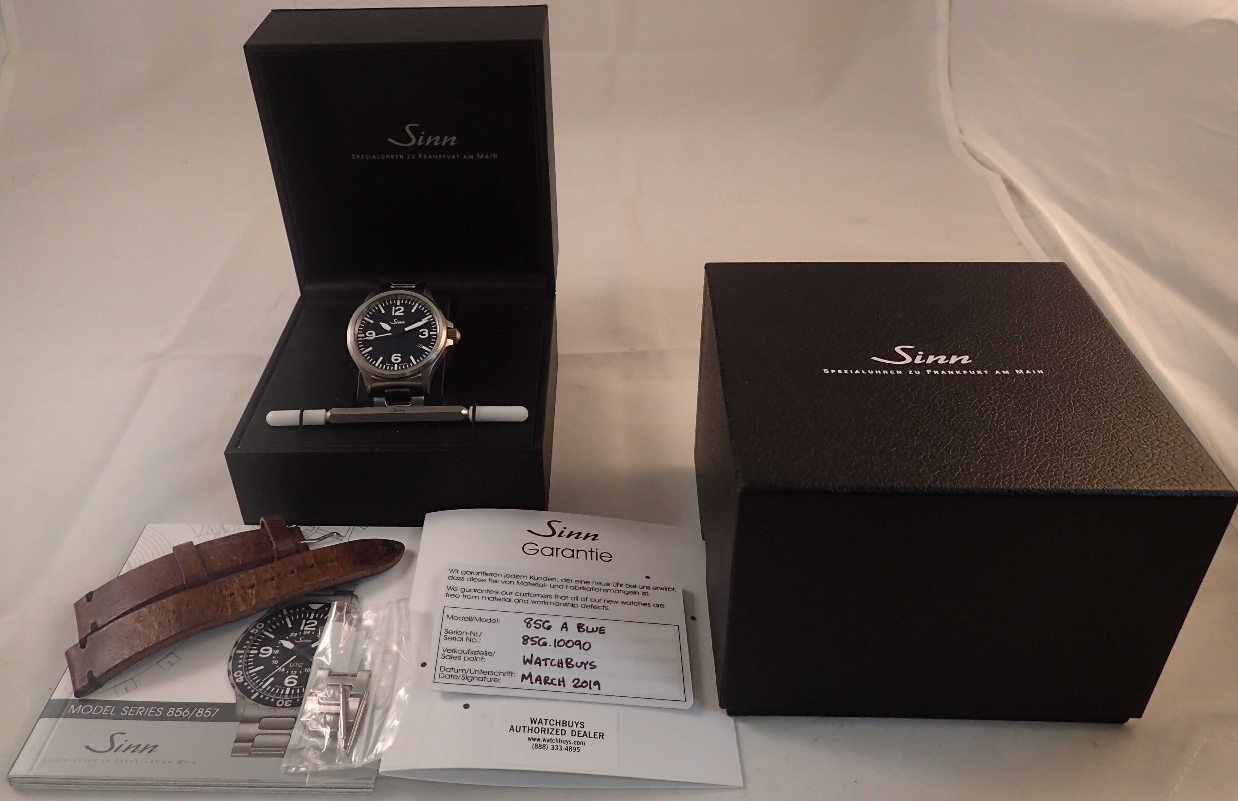 ·Up for sale is my Sinn 856 AB on bracelet and with additional Sinn OEM strap. This is a special limited production version of the Sinn 856 with a blue dial, Arabic numerals at 3,6,9 &12 and polished case and bracelet. The 856 AB has been available from Watchbuys in the US sporadically over the last three years but is no longer available.