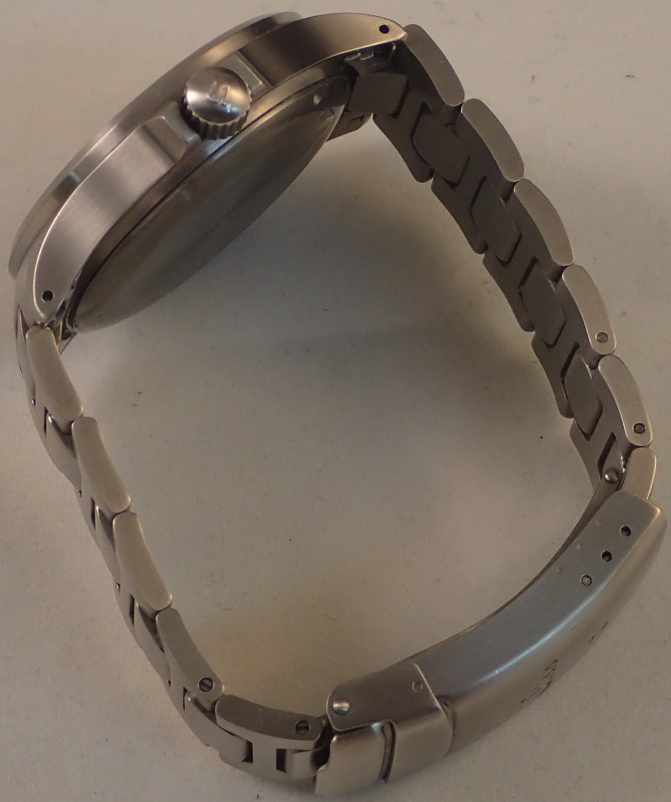 The cosmetic condition of the watch is generally very good. The tegimented case resists scratches very well. There are some small marks on the bezel between 10 and 12 that can be seen in the macro photos. Otherwise the case and bracelet are scratch free. The protective sticker is still affixed to the case back.