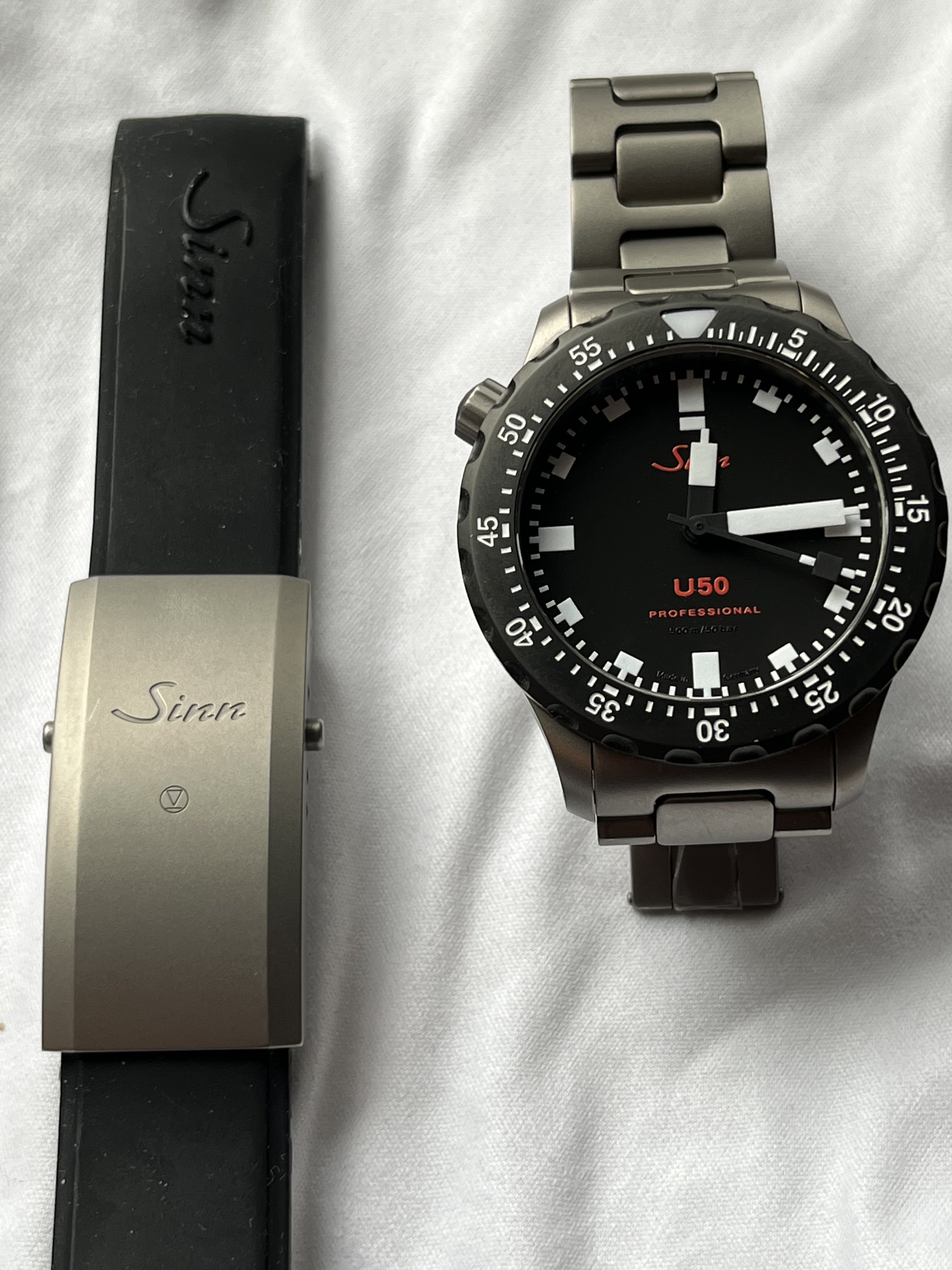 ·Up for sake or trade this Sinn U50 Pro, perhaps the finest and purest expression of the U50 diver platform, in a limited edition of150 pieces. Case and bracelet are fully tegimented and the domed sapphire and monochrome hands make this one of the most legible divers on the market, in or out of the water, in a perfectly proportioned case.