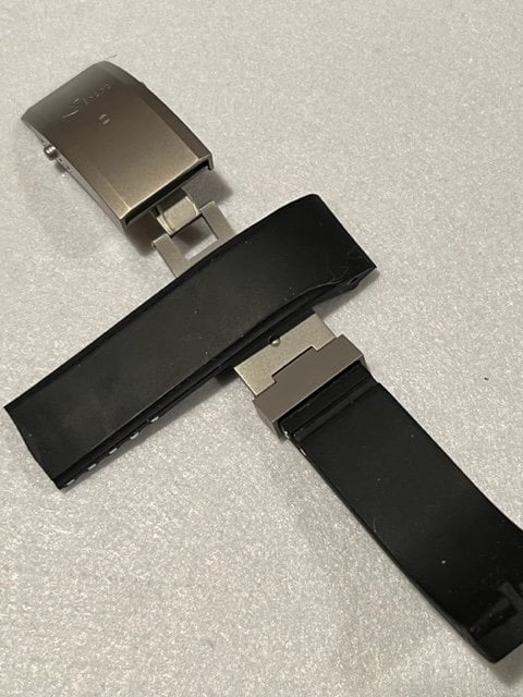 ·For sale, a pair of Sinn OEM silicone straps in red and black with the newer adjustable tegimented buckle. Buckle is in as-new condition and both straps are very lightly used. The black strap has been cut to fit a wrist from 6 - 7.5 or so inches, while the red will fit 6 - 7.25. Please see link below for further info.
